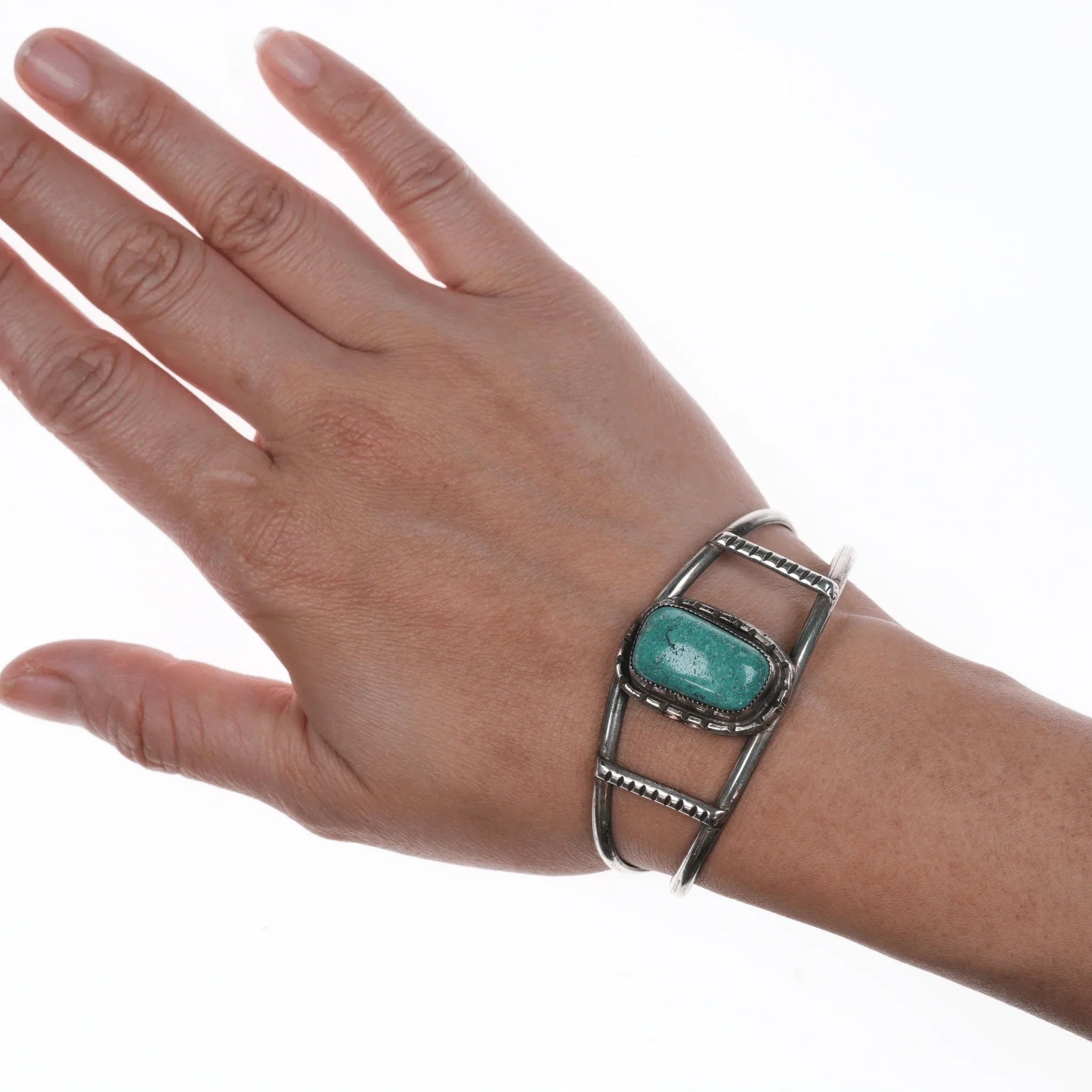 Gelang manset asli Amerika perak antik 6 1/8" dengan warna pirus