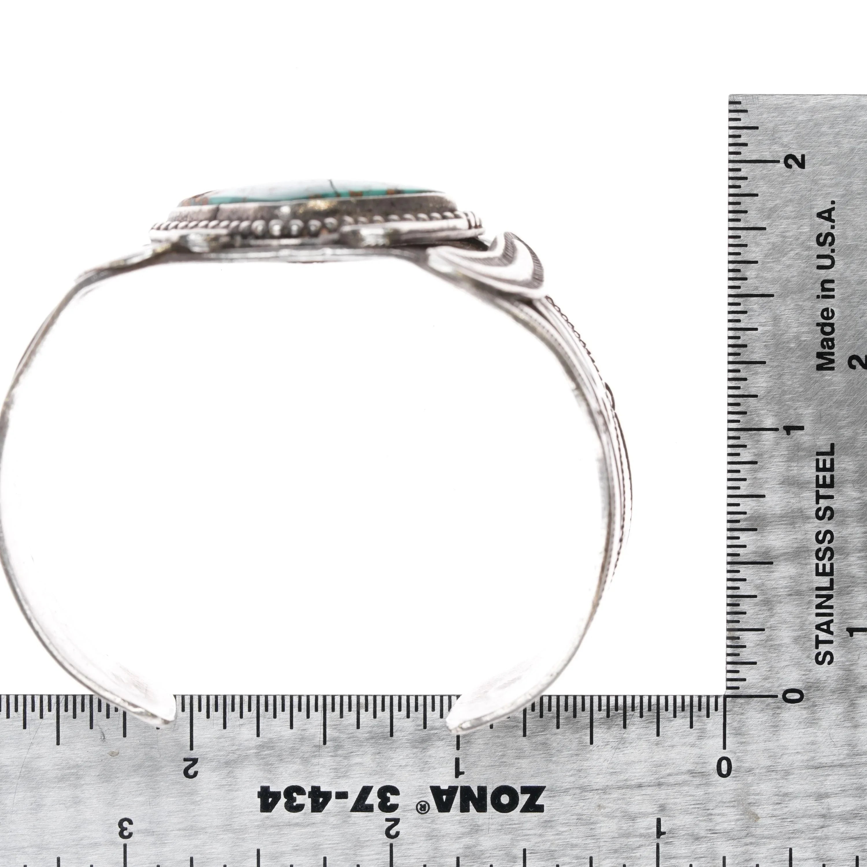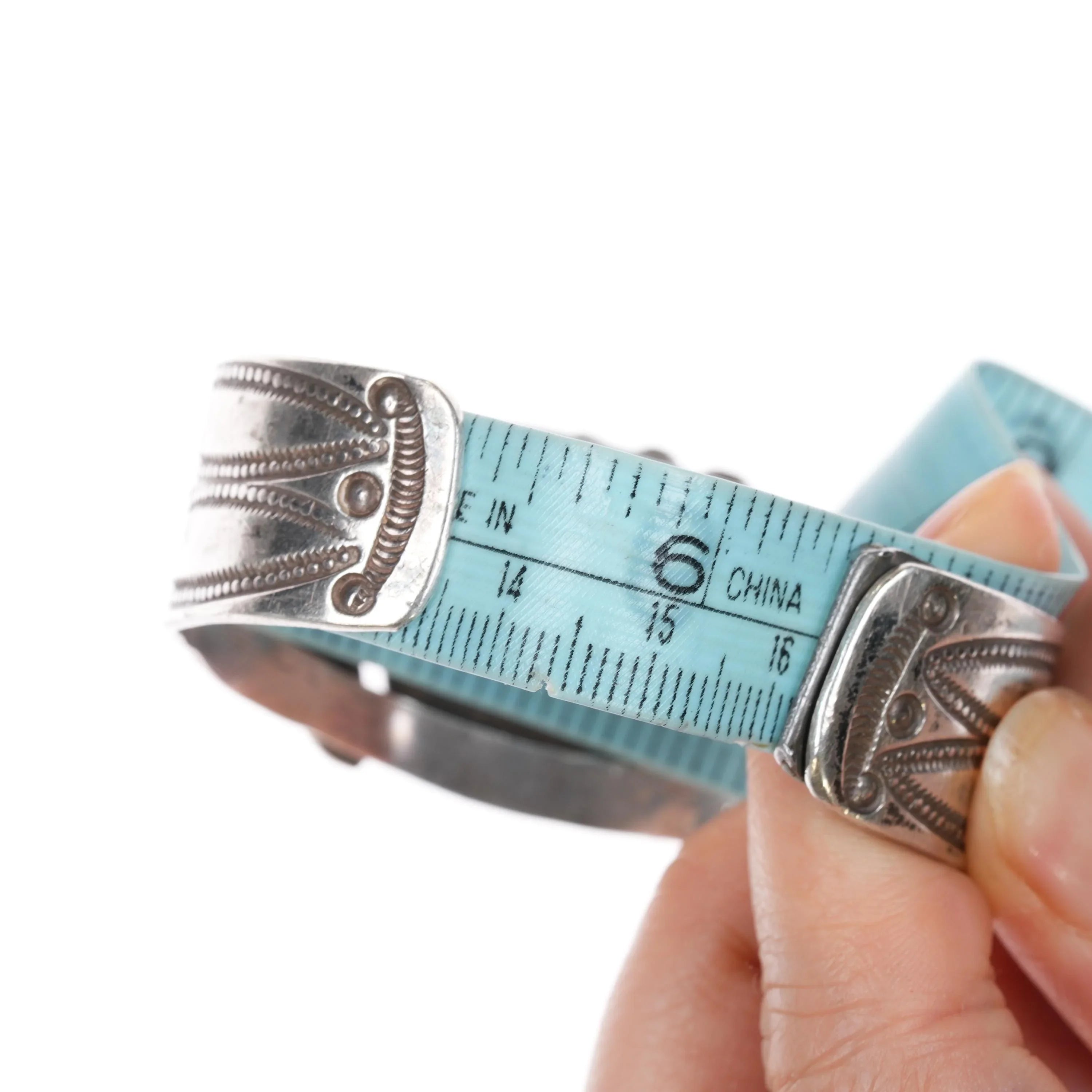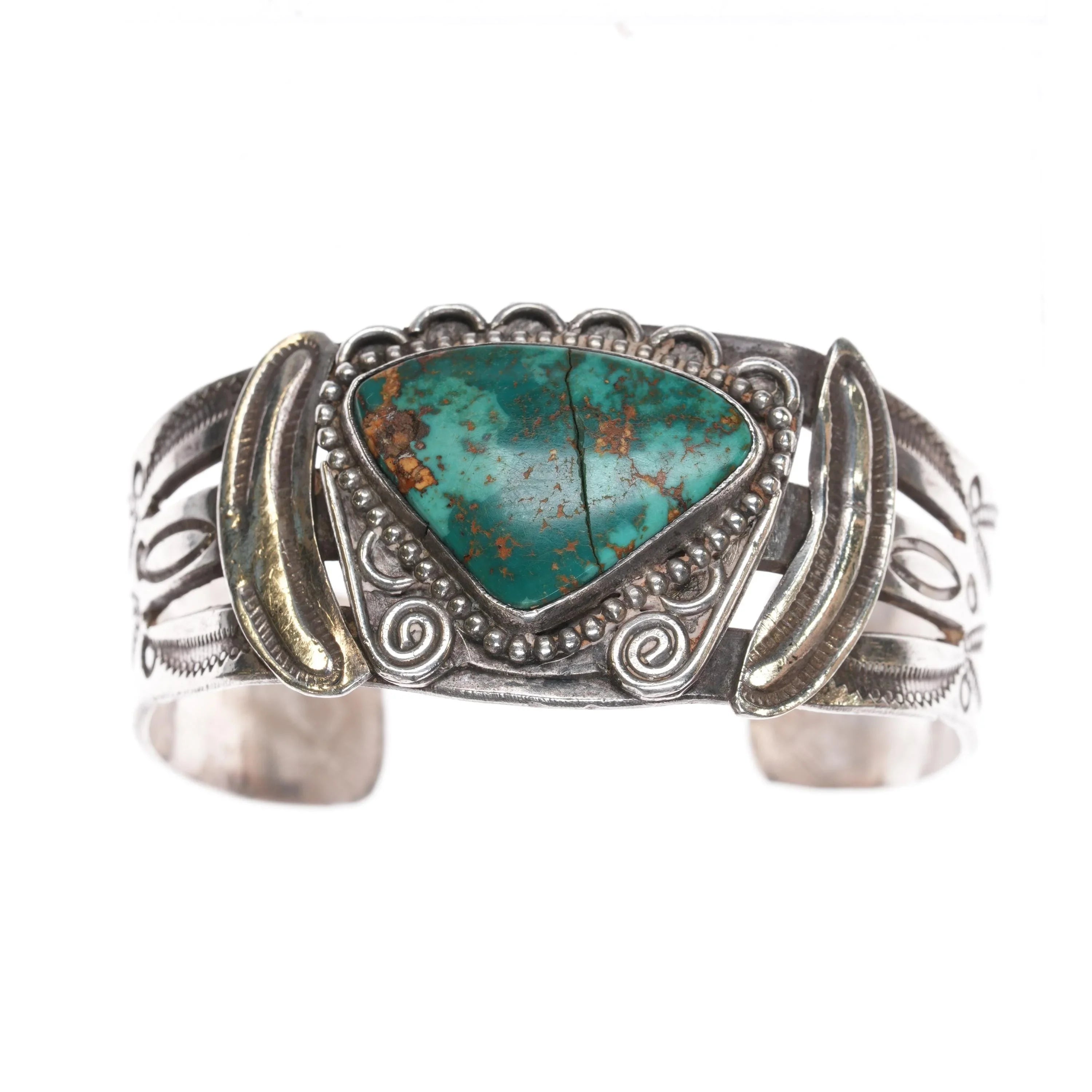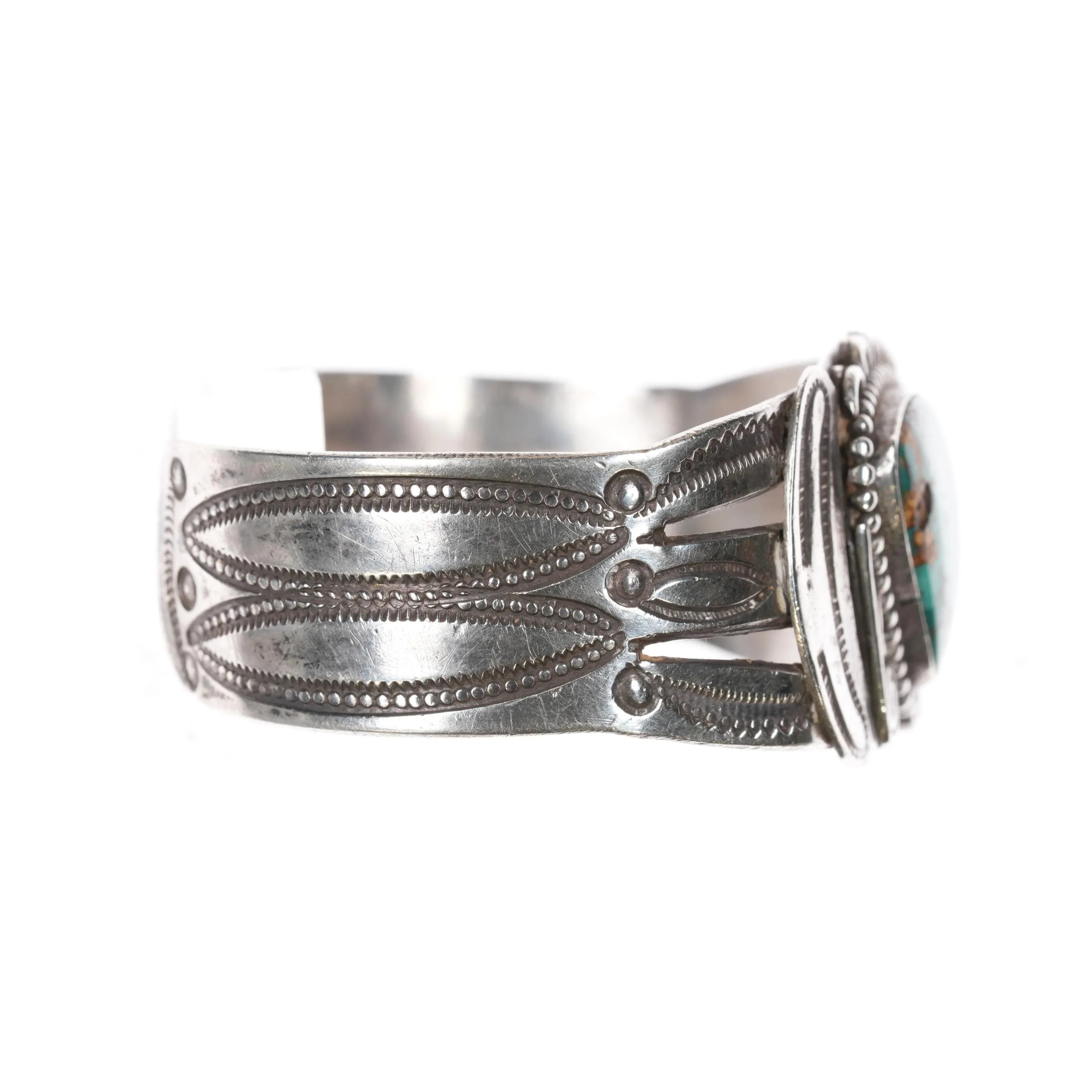 6.25" Large 30's-40's Navajo heavily stamped silver cuff bracelet w/turquoise