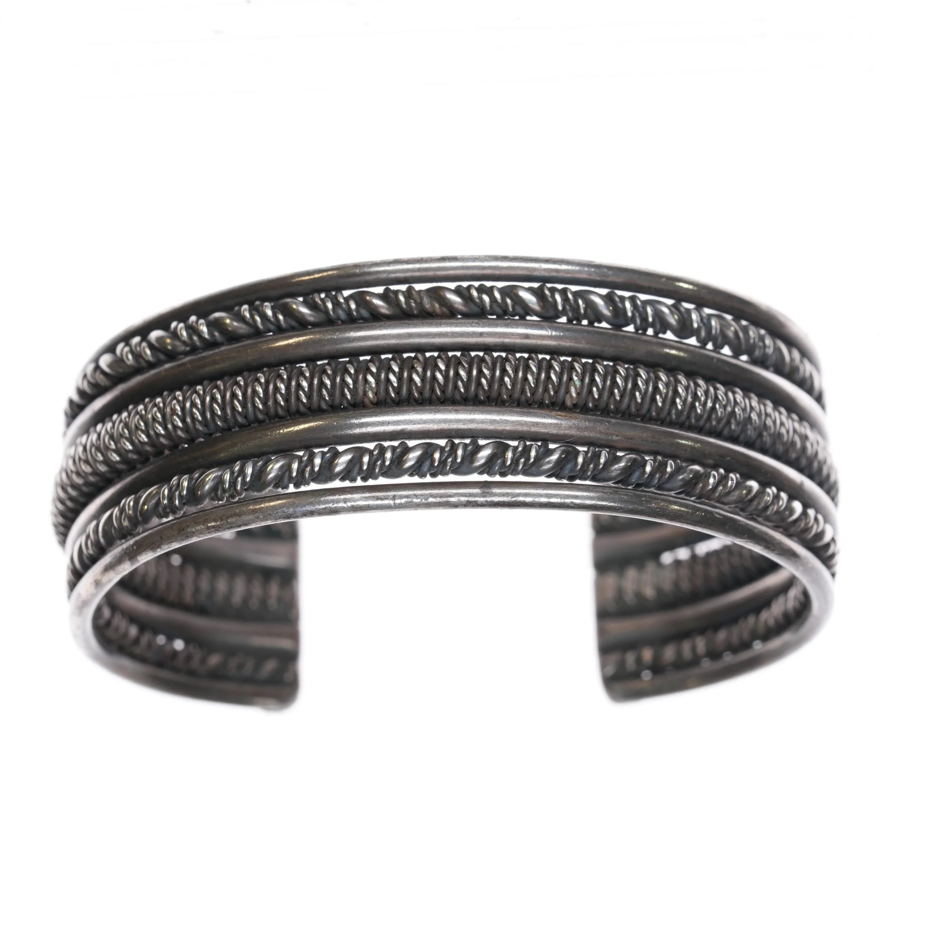 6.3" Heavy vintage Navajo twisted sterling silver wire cuff bracelet