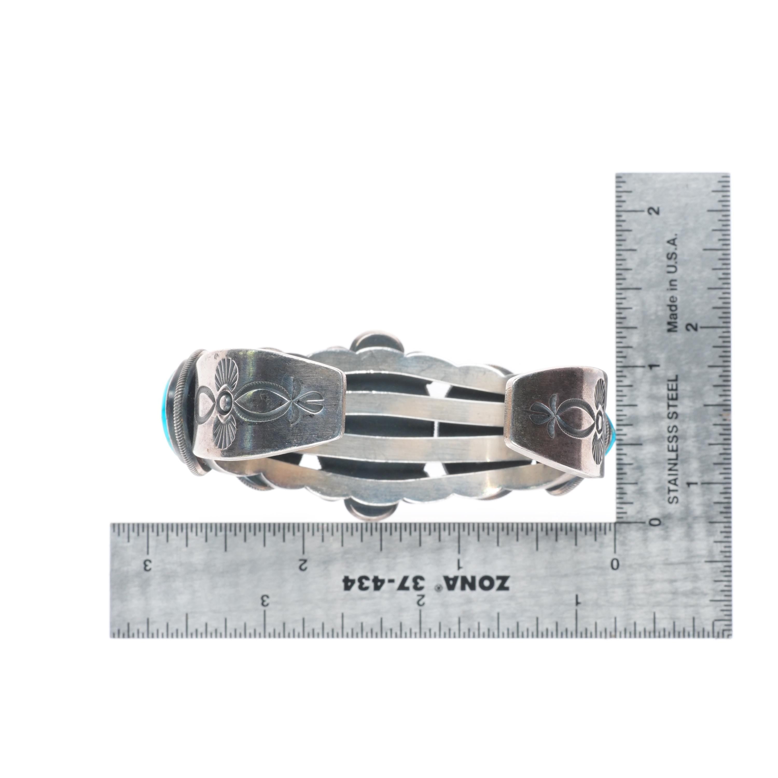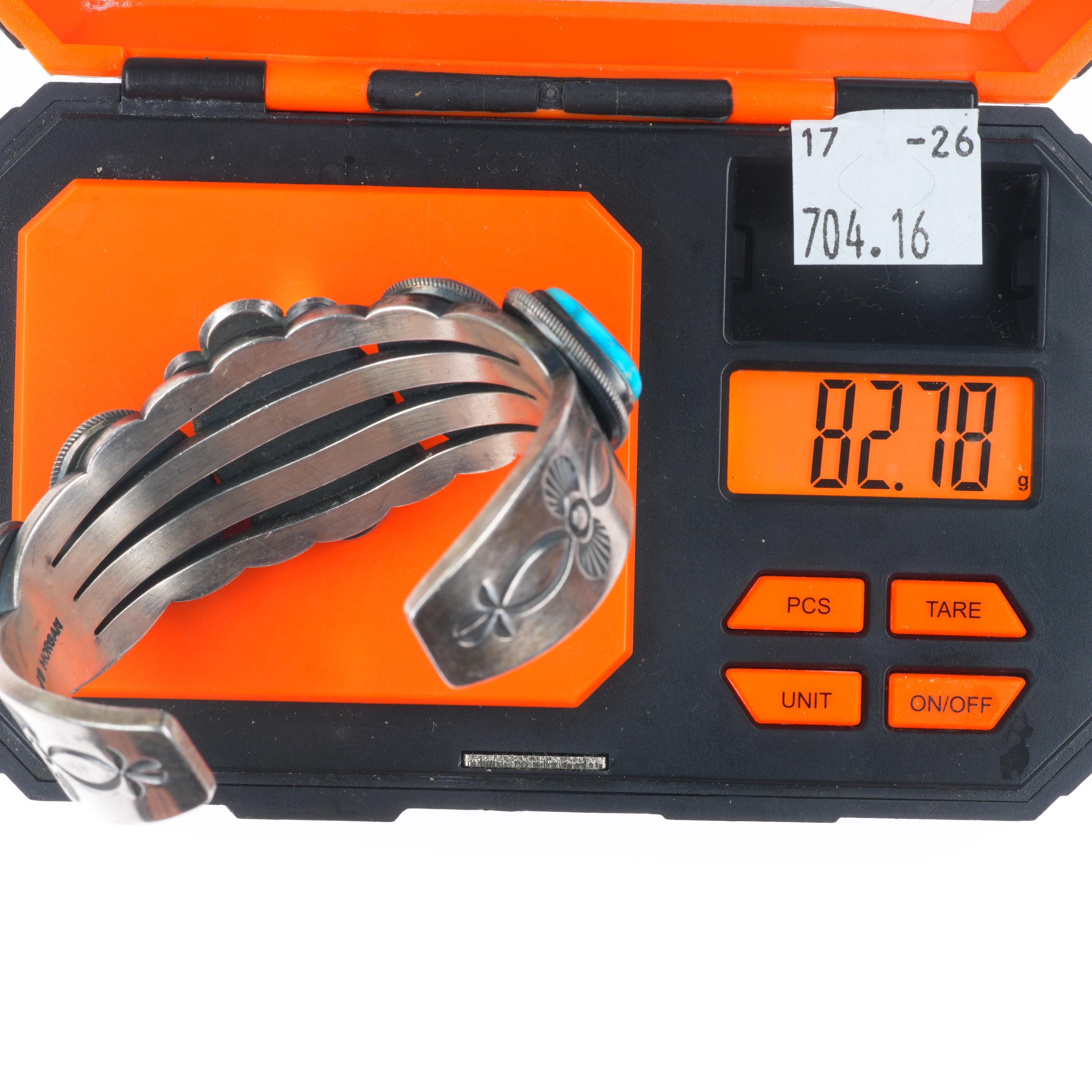 6.3" Jacob Morgan Navajo sterling silver high grade turquoise cuff bracelet. Tested and guaranteed solid sterling silver, with weight and measurements in pictures, circa early 21st century. While I'm happy to answer any questions or concerns, I beg you to take the time to look through all of the photos as they should answer them. There should be around 10 photos. If no marking is mentioned or photographed please assume that it's unmarked as is common with Native American jewelry of this era.