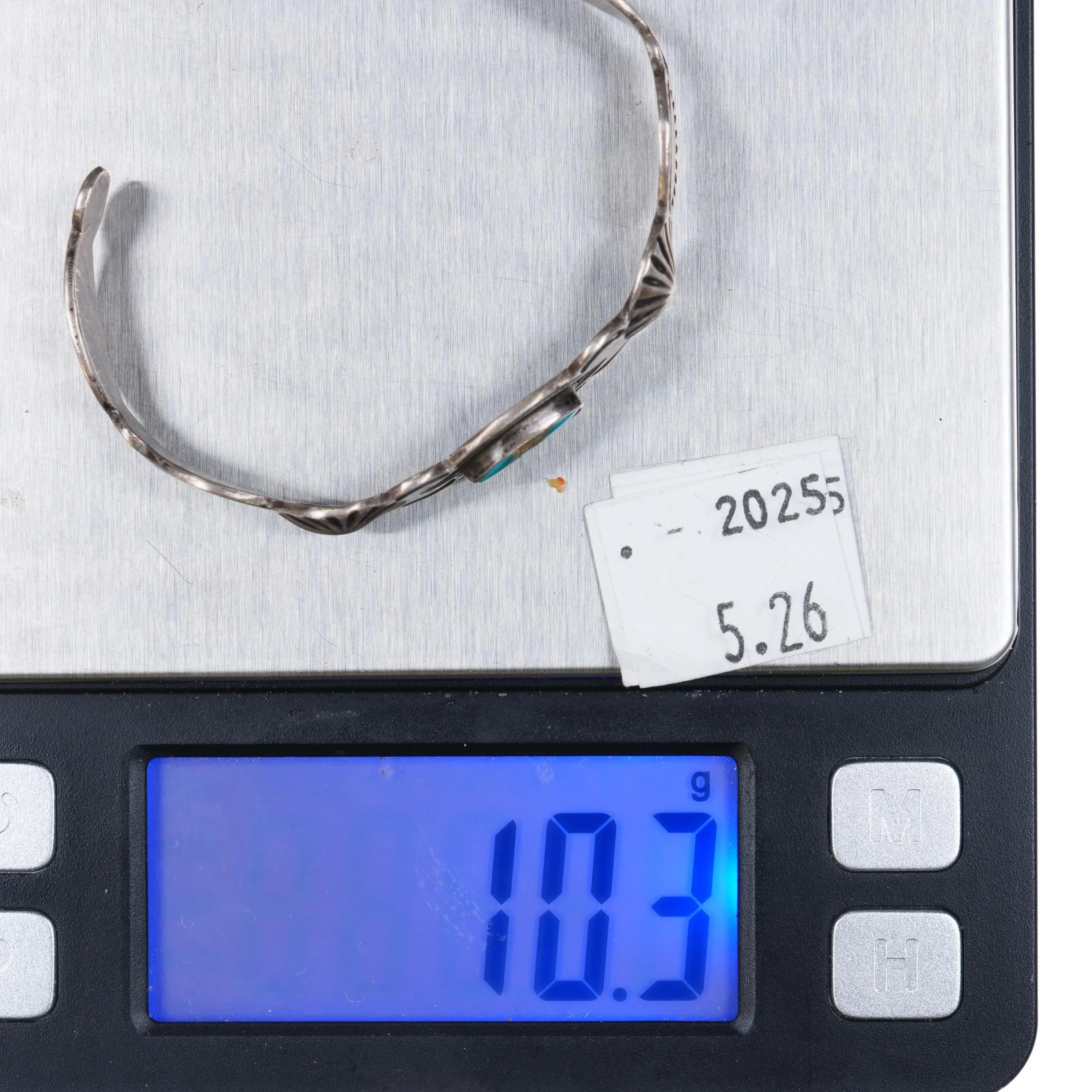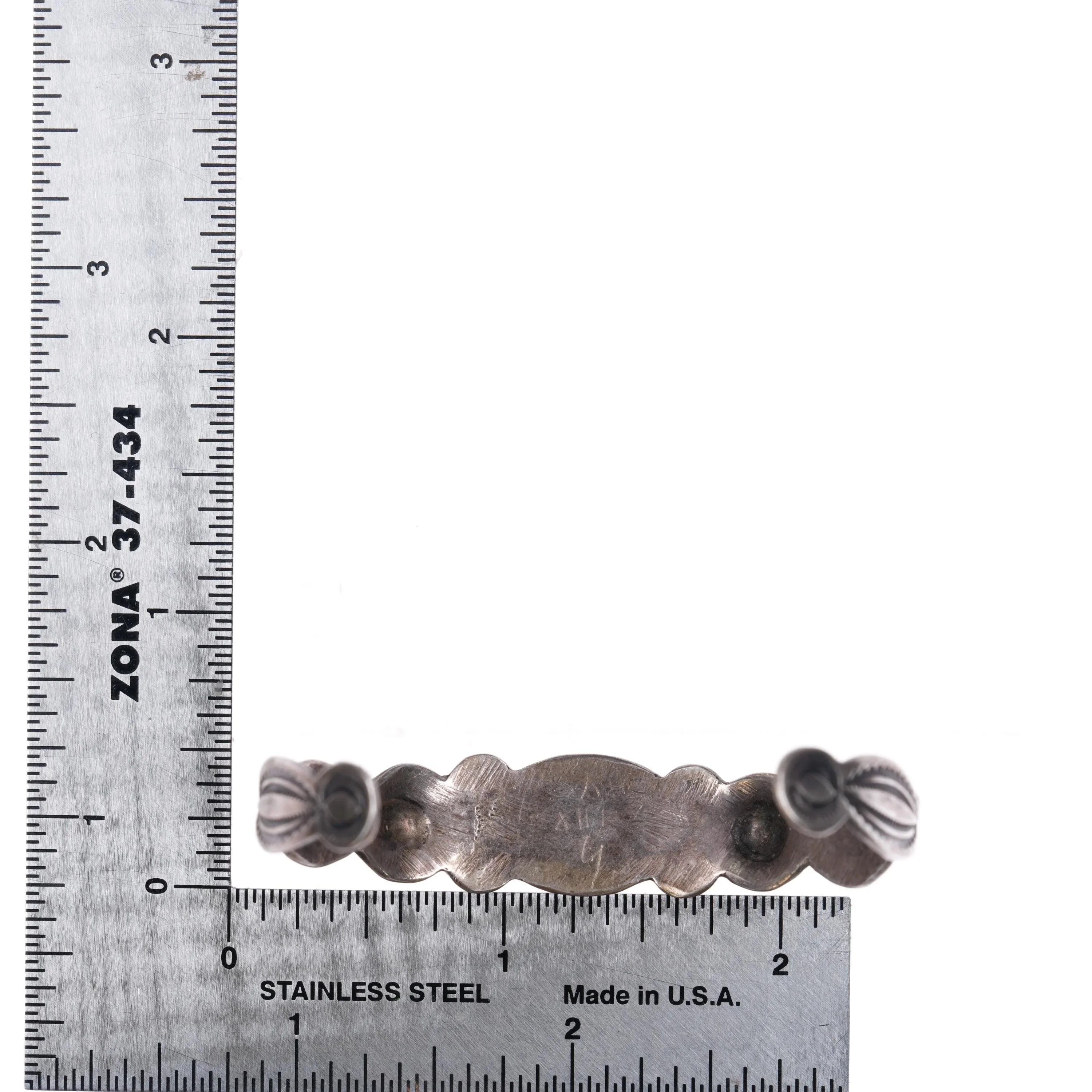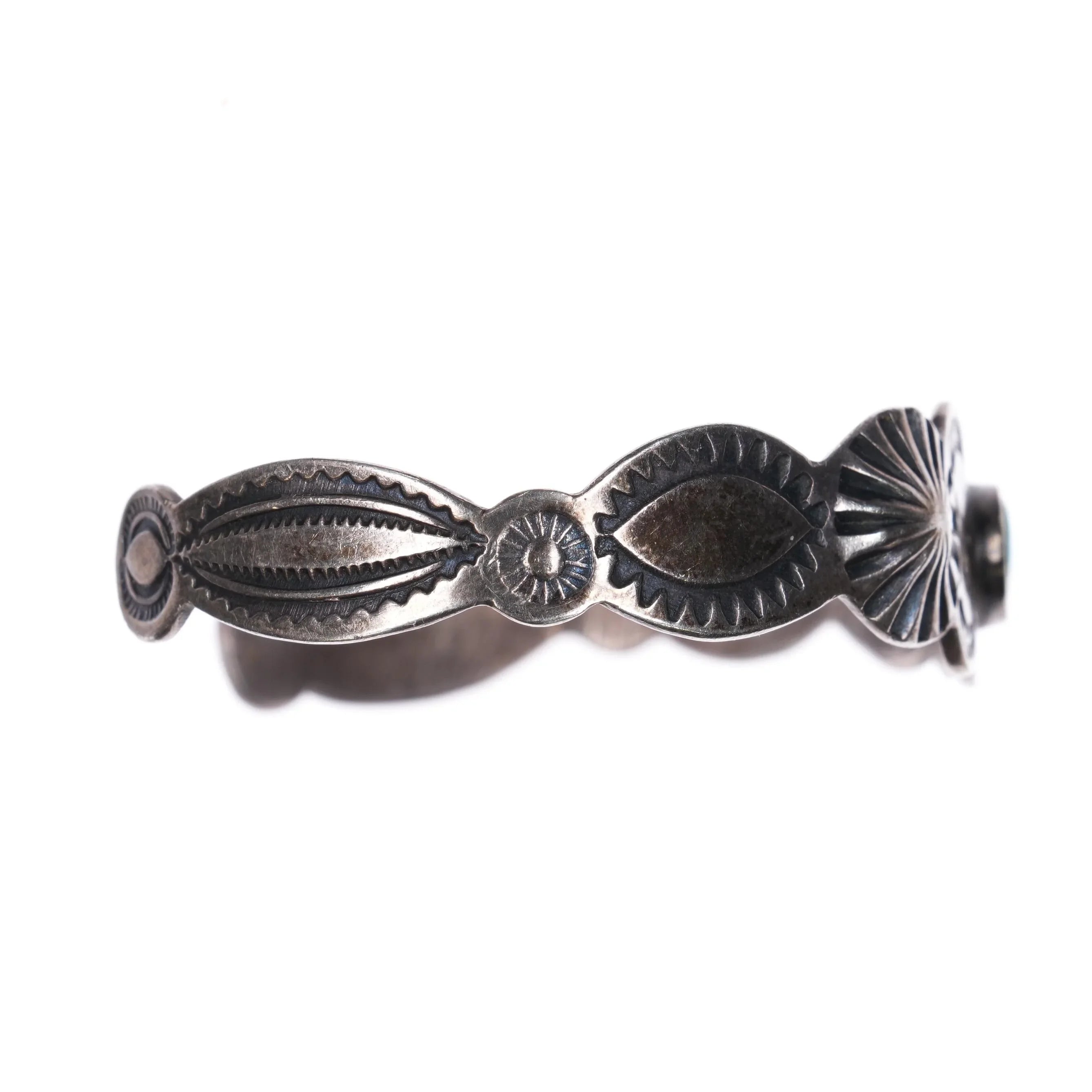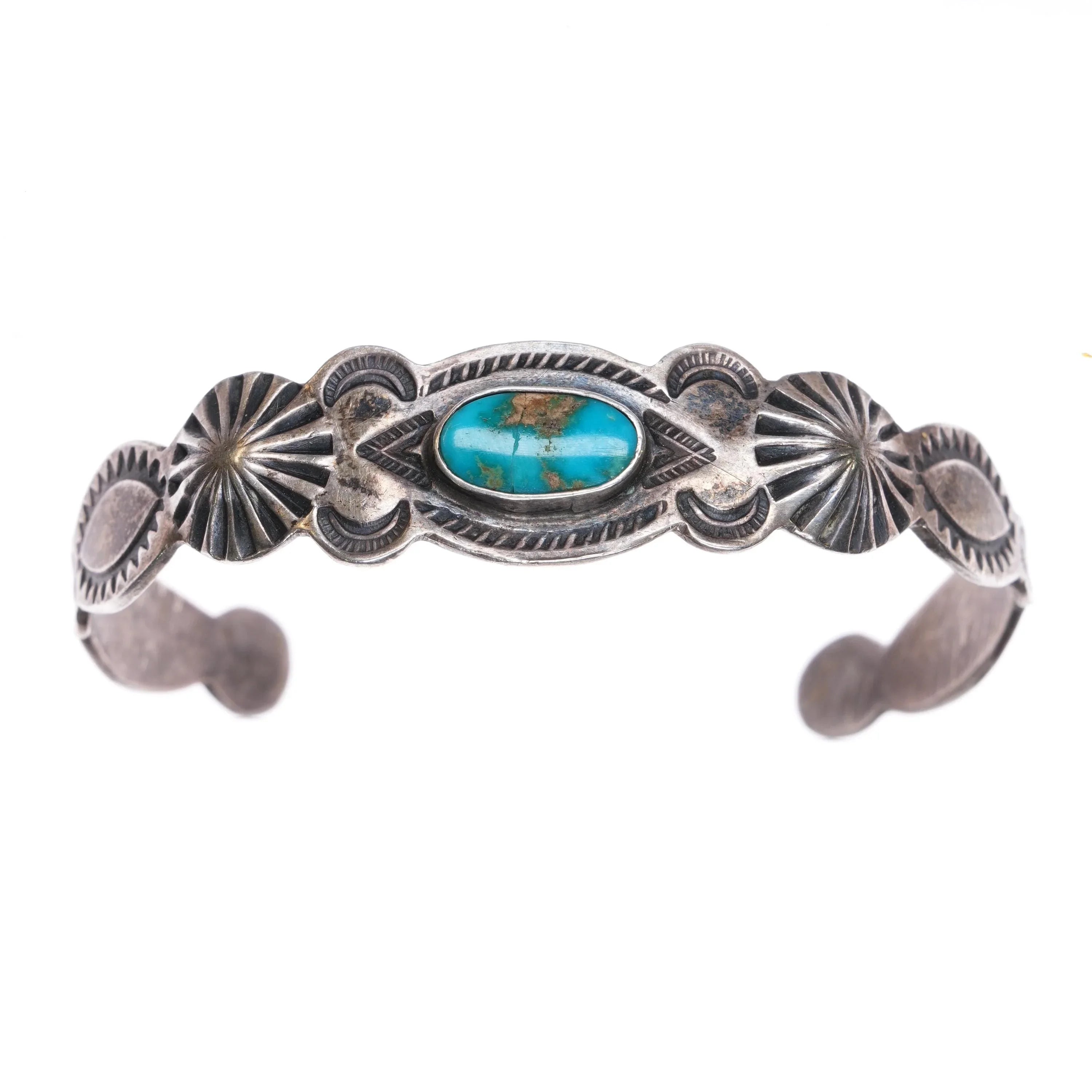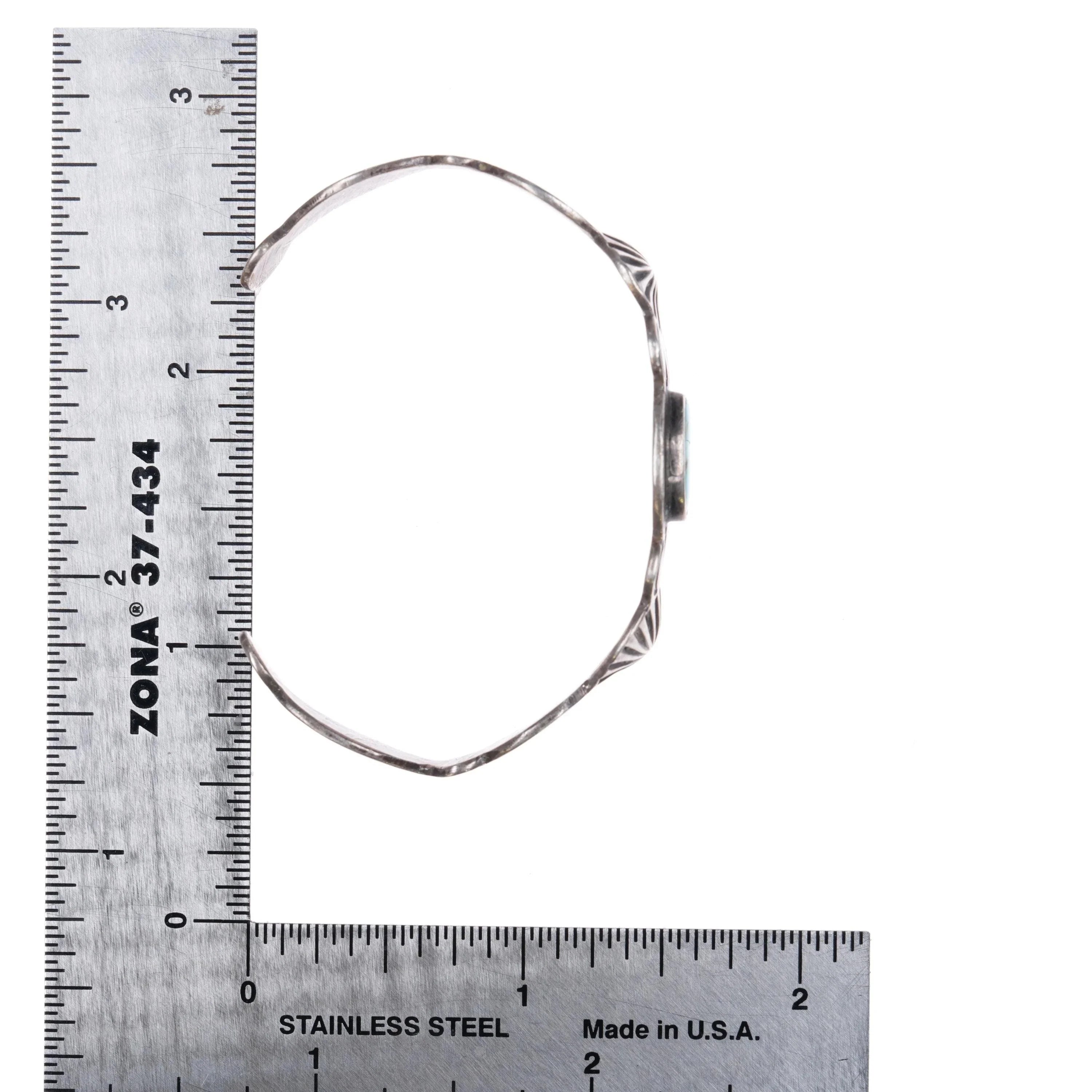6" 30's-40s Navajo Blue Gem turquoise hand stamped sterling silver cuff bracelet
