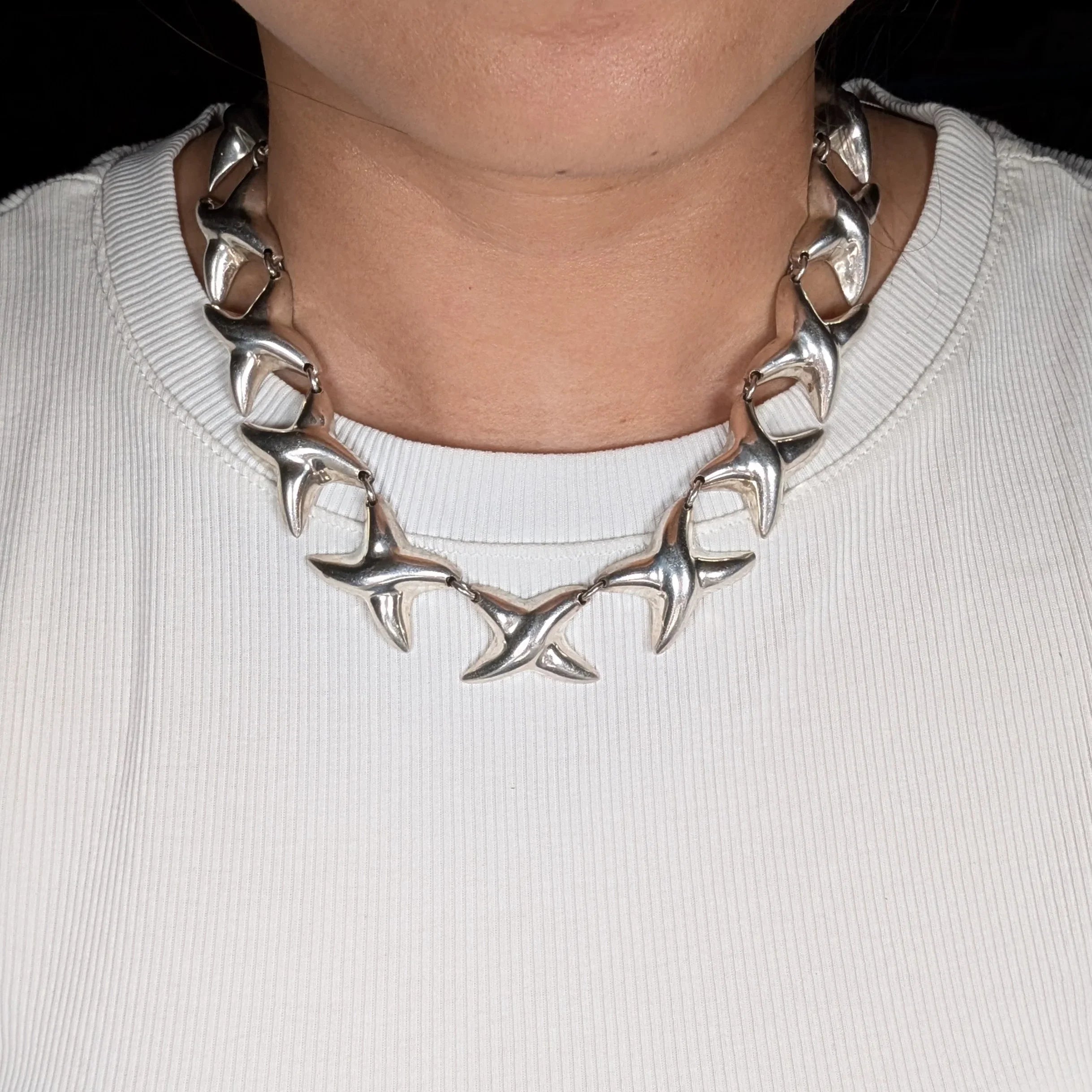 6.5" & 16.25" Retro Mexican sterling silver X‘s Necklace/bracelet set. Solid sterling silver tested and guaranteed Marked as shown in one of the pics.. No issues, circa last quarter of the 20th century. Weight and measurements in pictures.