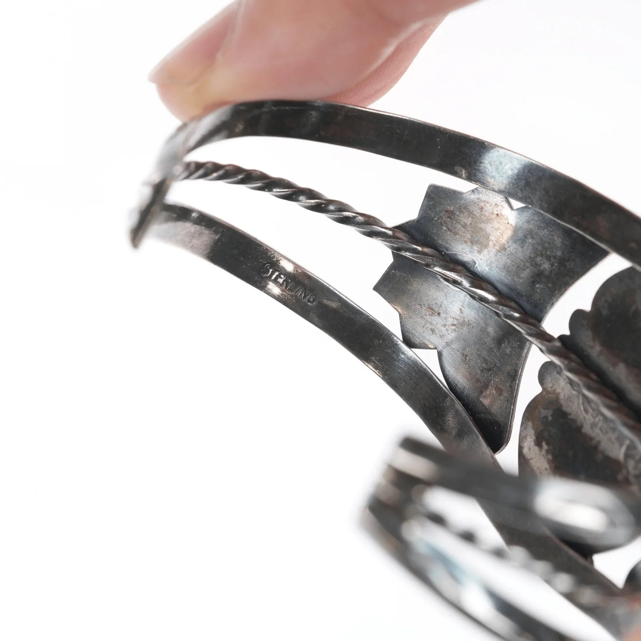 6 5/8" 40's-50's Navajo silver agate cuff bracelet 5.25" plus 1 3/8" gap, fits up to a 6 5/8" wrist. <br><br> Marked or unmarked as shown in pics, weight and other measurements in pics. Sorry but my jewelry is stored in a secure location and cannot be accessed for more pictures,<br>videos, or measurements until sold. If you look at pictures/description your<br>question should be answered. Thank you so much for your time and consideration!<br><br>All precious metals are tested and guaranteed. A Native American jewelry piece referred to as "silver" or "ingot" is guaranteed to be at least 90% silver. Bracelets are photographed on a 6" women's wrist.