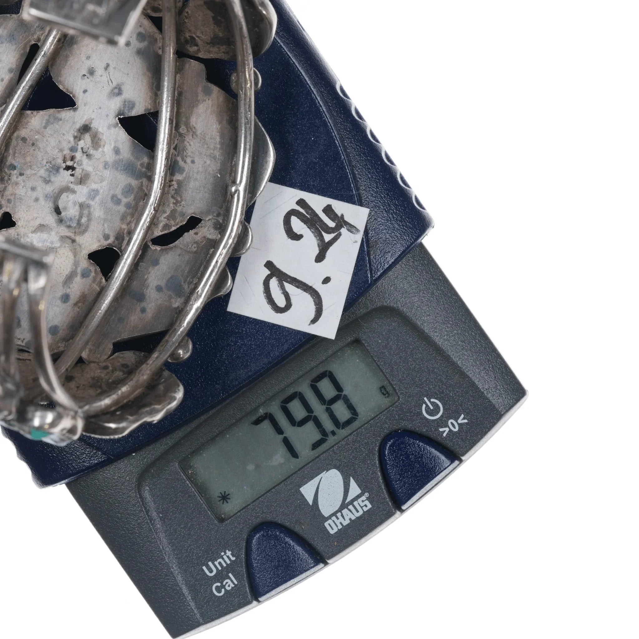 All precious metals are tested and guaranteed, any Native American jewelry<br>referred to as Silver or Sterling is guaranteed to be a minimum of 90% (coin)<br>silver and possibly higher content. Anything marked is guaranteed to be what<br>it's marked, most bracelets are photographed on a 6" wrist (non hairy), rings<br>photographed on the appropriate sized finger when possible. With bracelets if<br>the measurement is not given in the description then inside circumference is<br>shown where the metal meets the number on the the cloth tape measure.