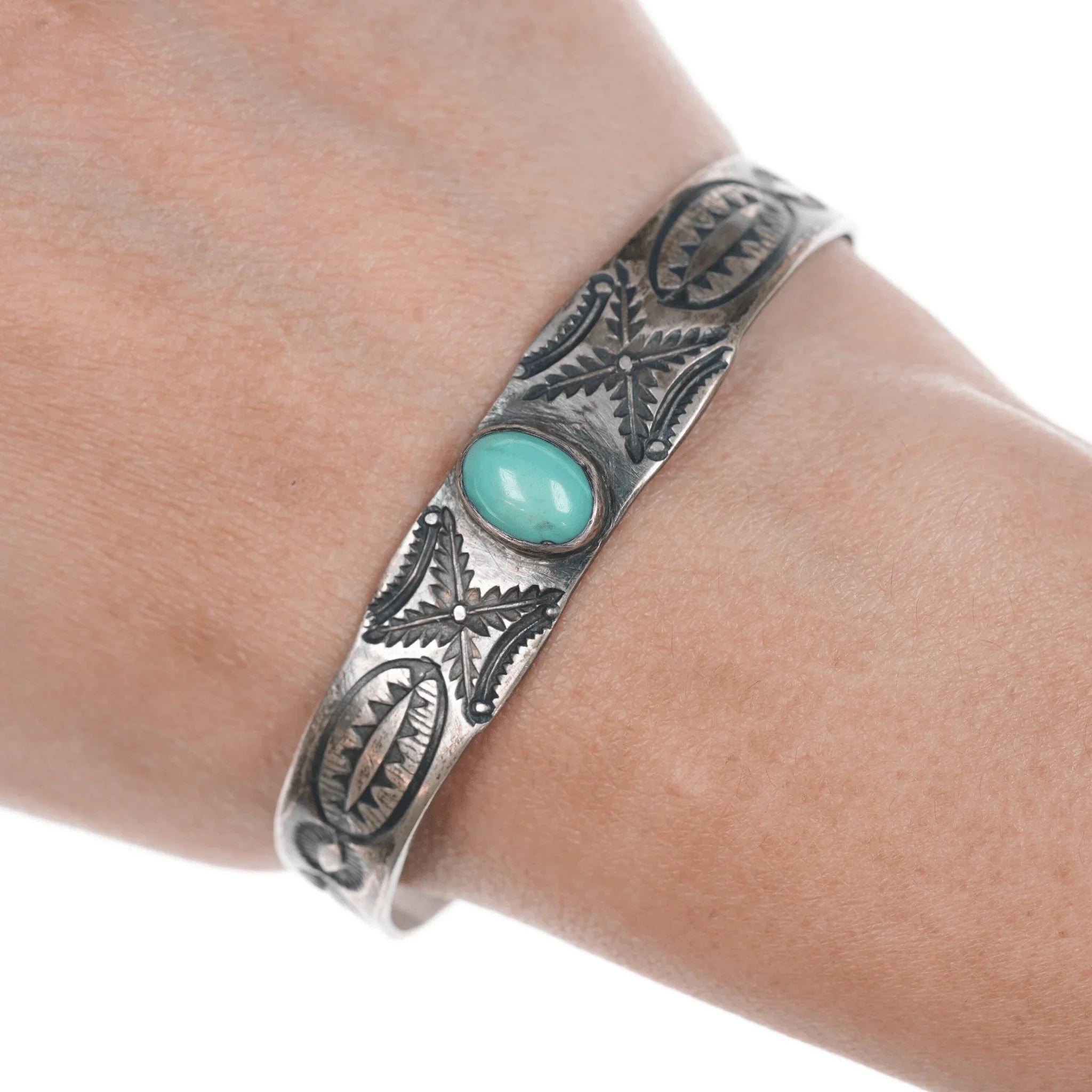 Gelang manset perak bercap berat 6 5/8" dengan warna pirus