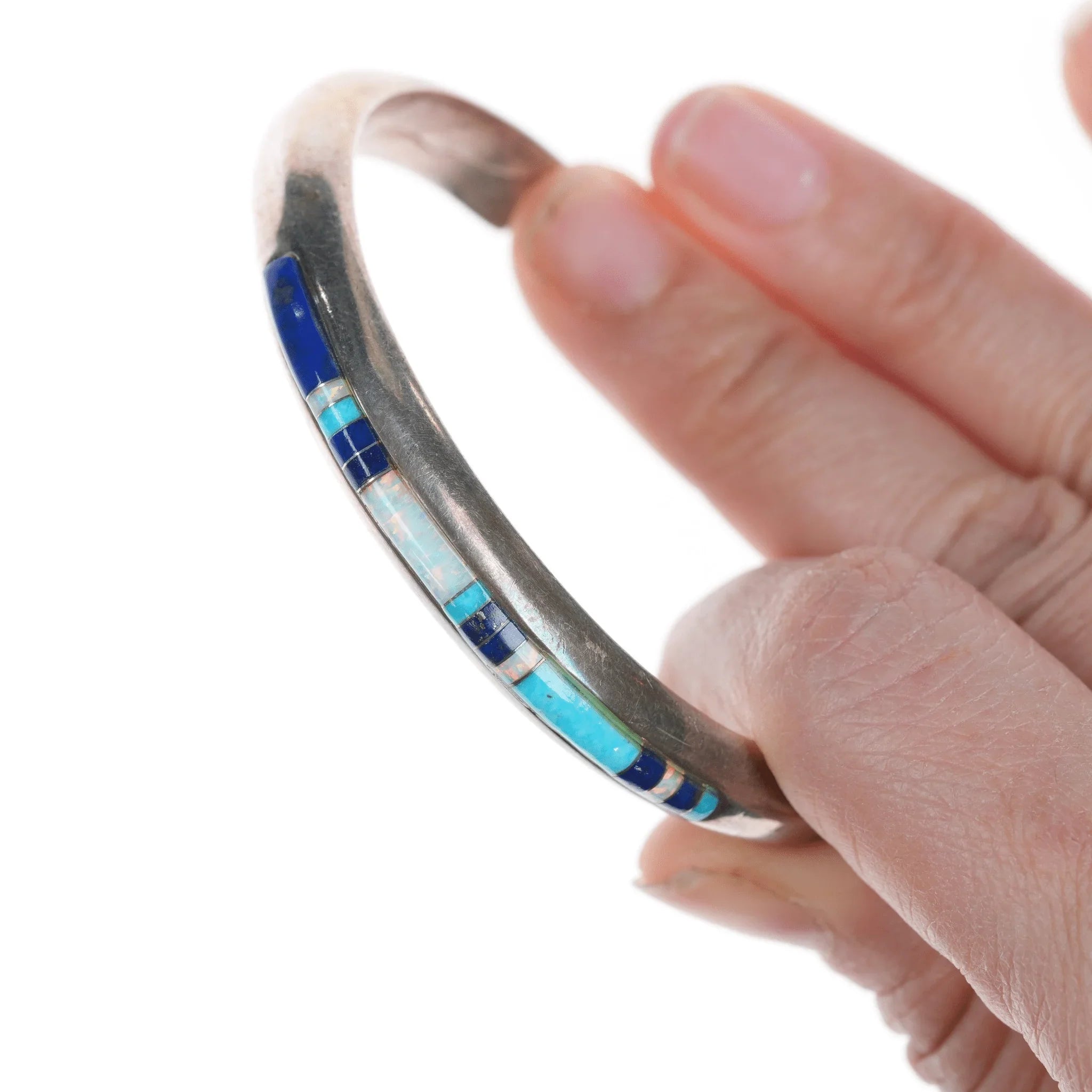 6.625" Leonard Nez Navajo Sterling Channel inlay cuff bracelet