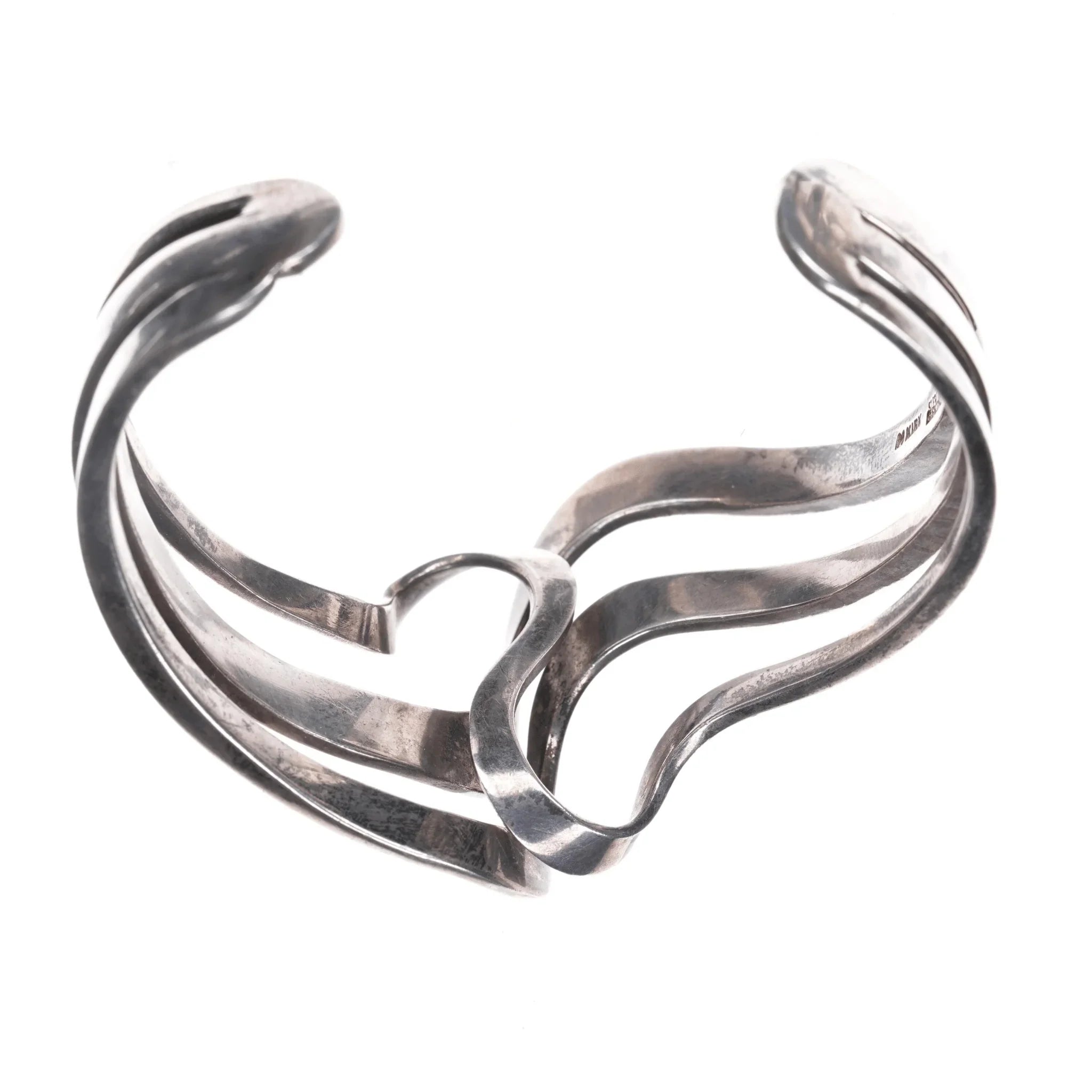 6 5/8" Michael Kirl Isleta Pueblo modernist sterling cuff bracelet.