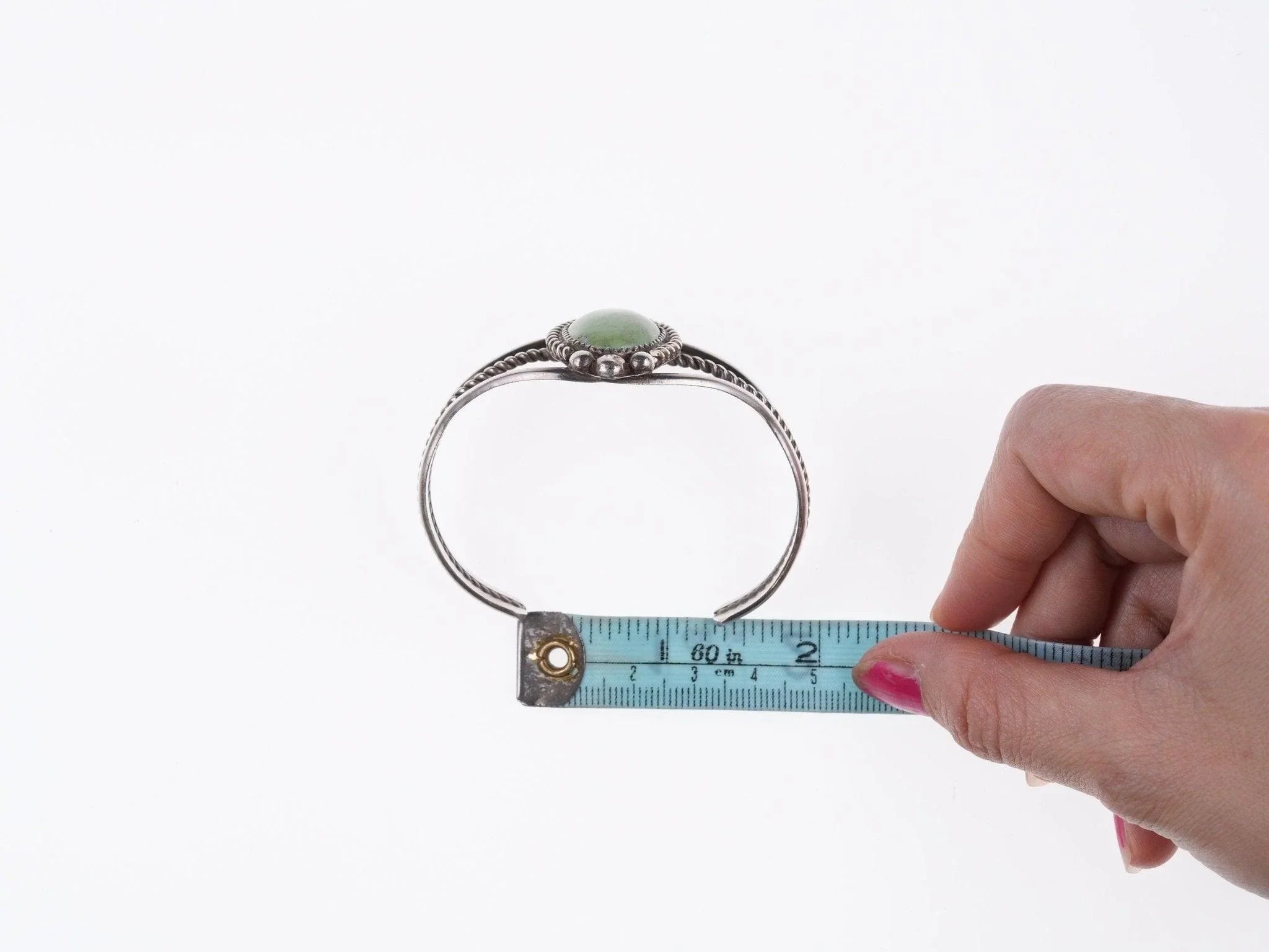 6 5/8" Navajo sterling and turquoise bracelet. No issues. All precious metals are tested and guaranteed,