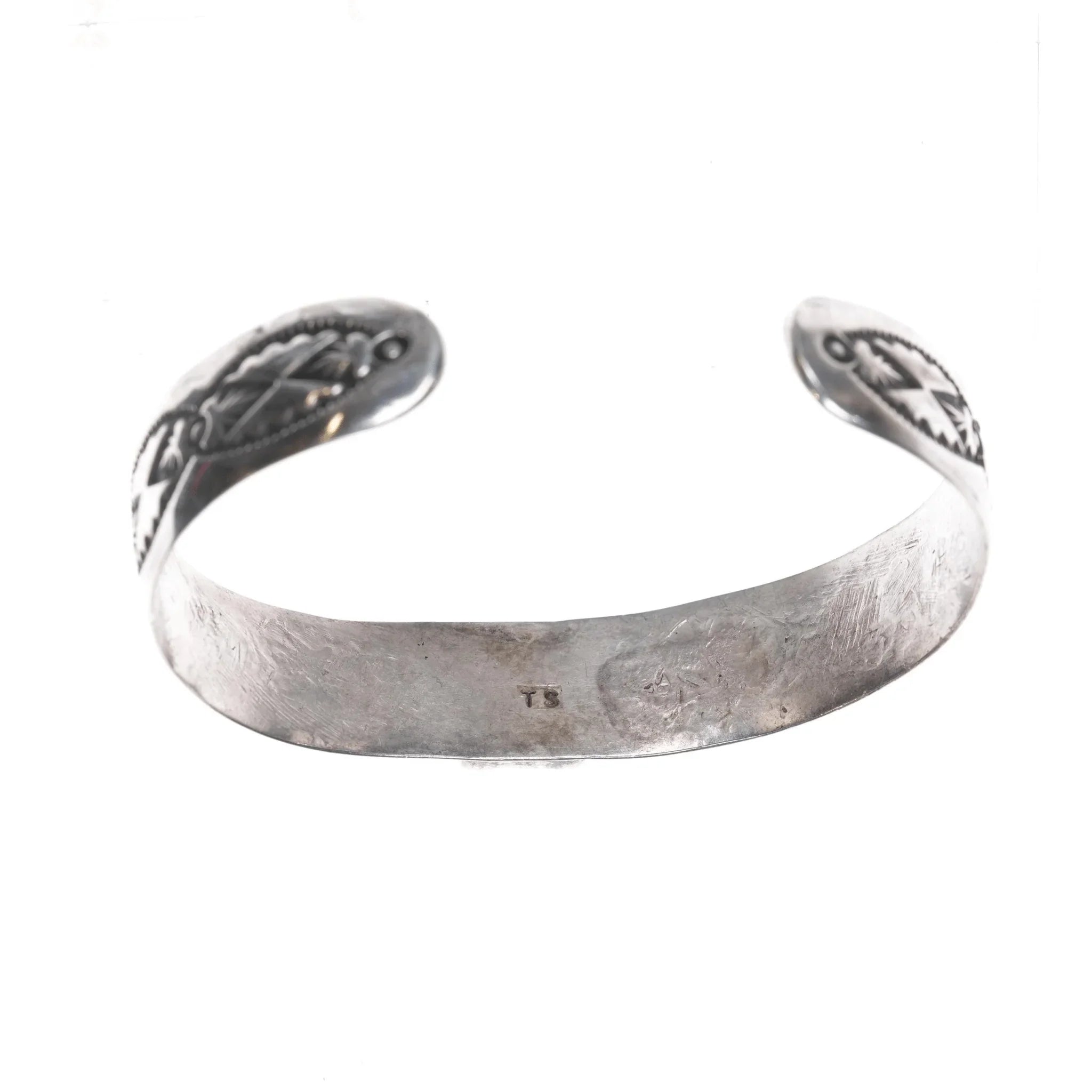 6.625" Tom Sam Navajo hand stamped sterling and onyx cuff bracelet