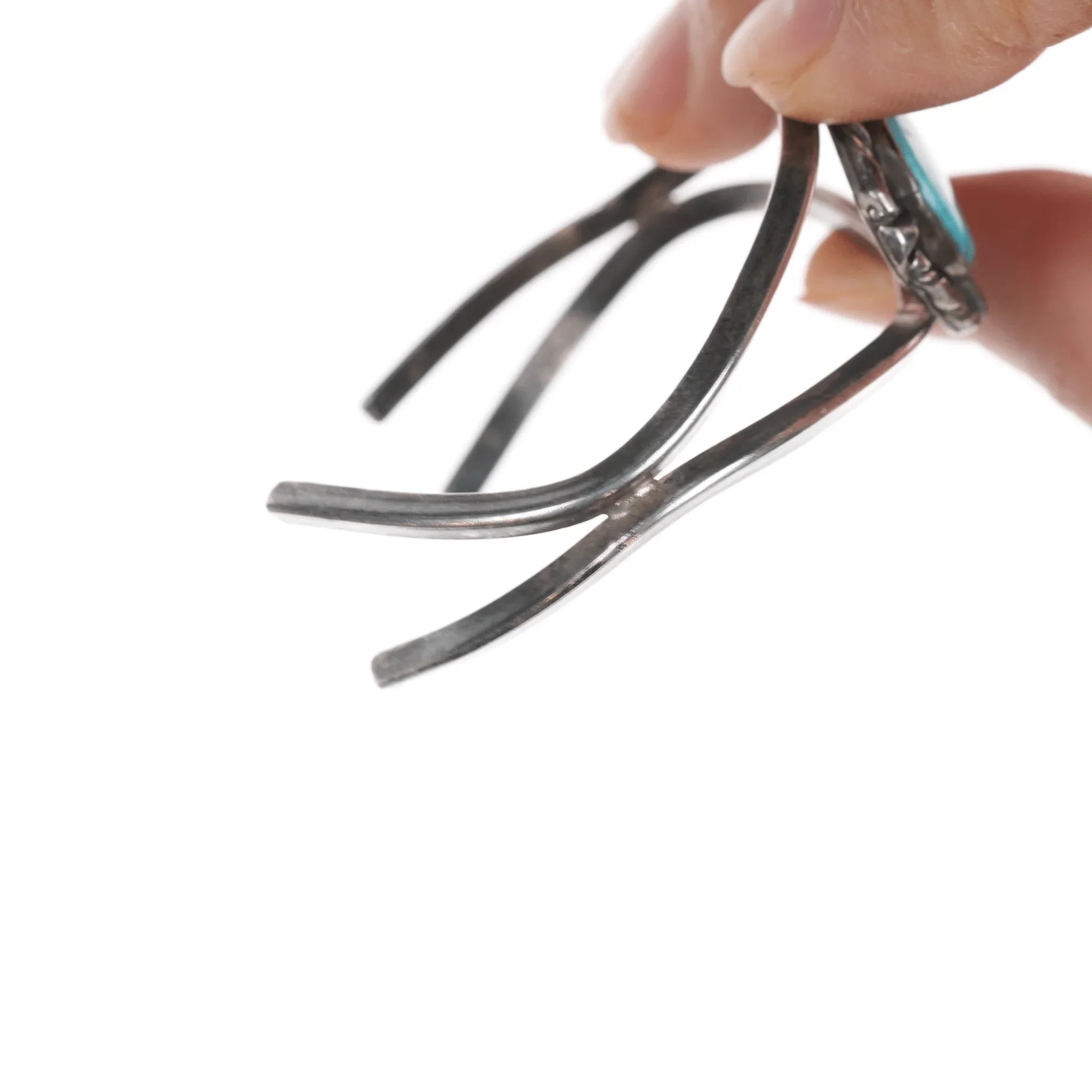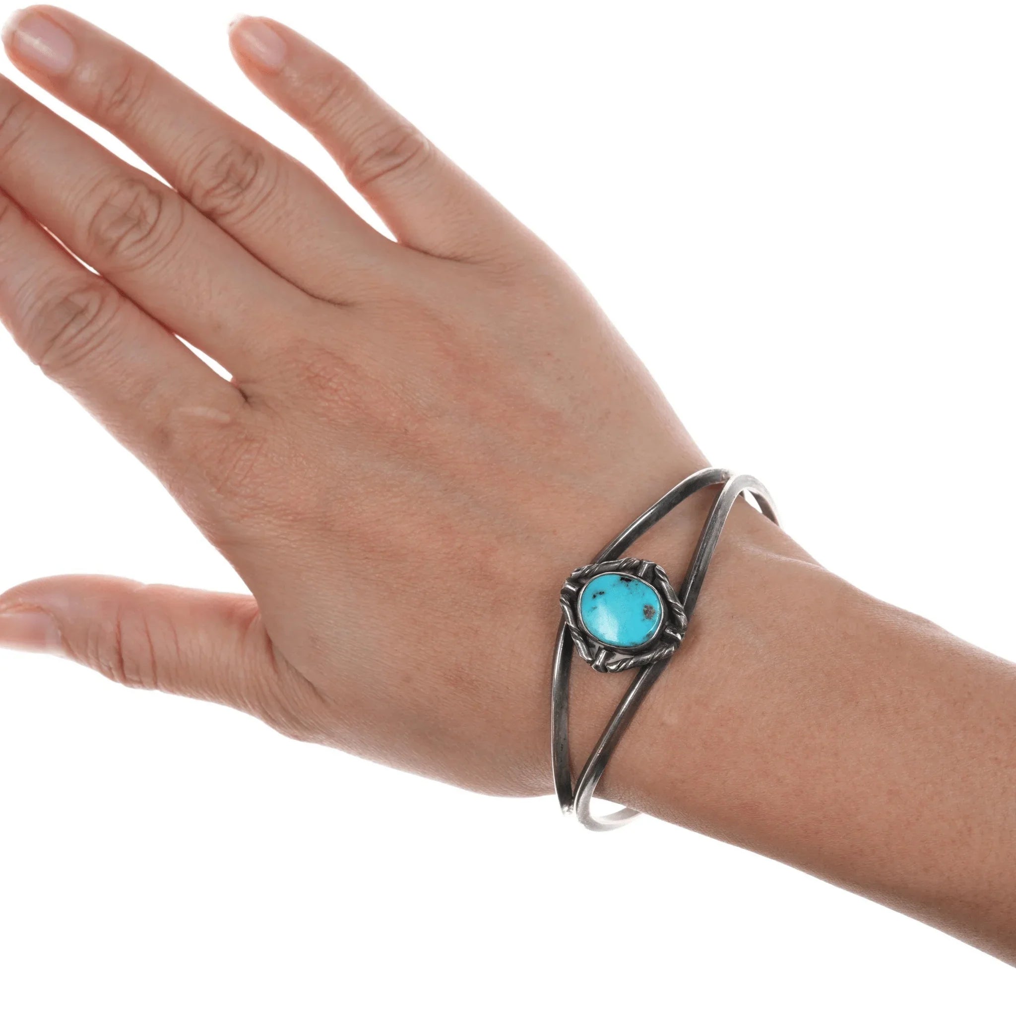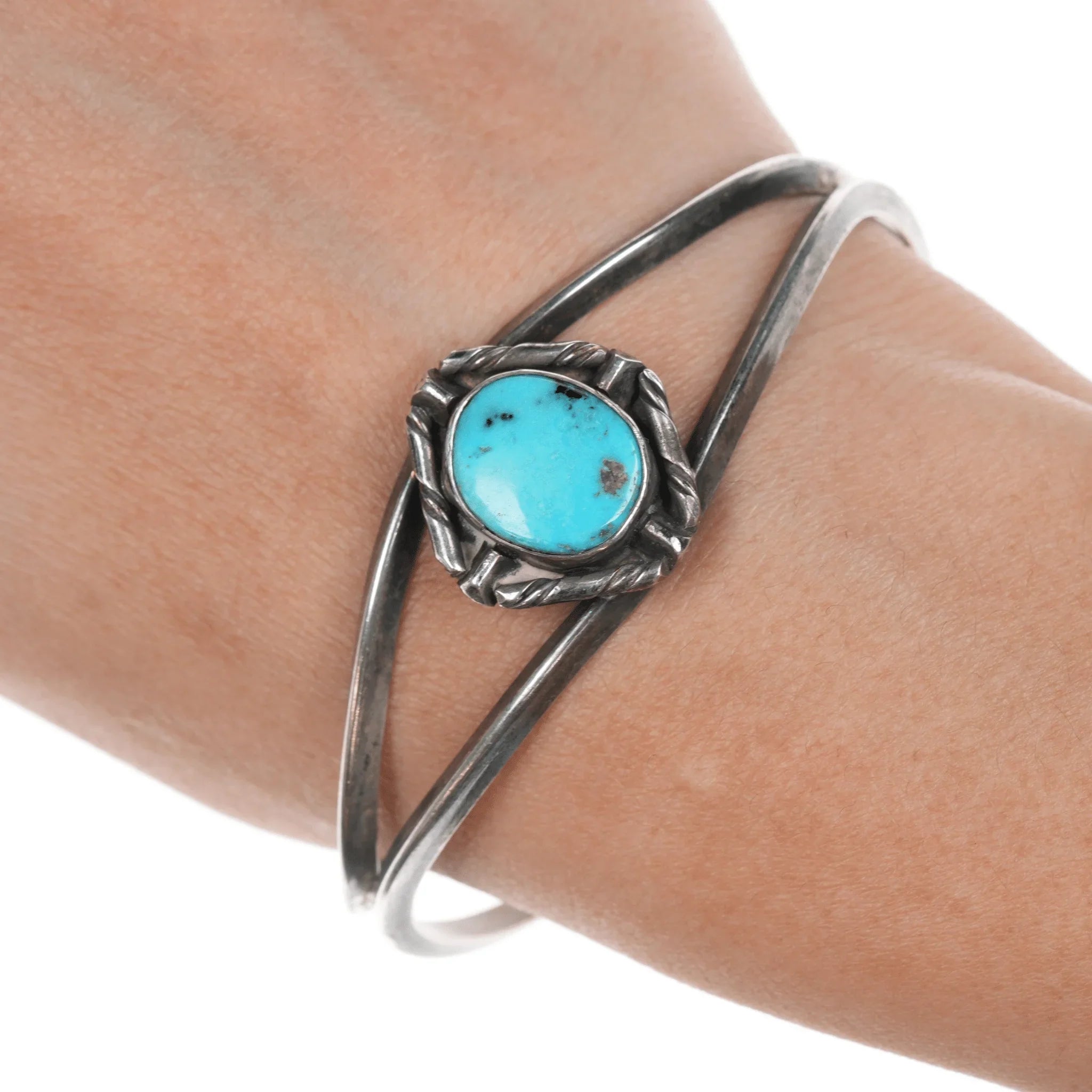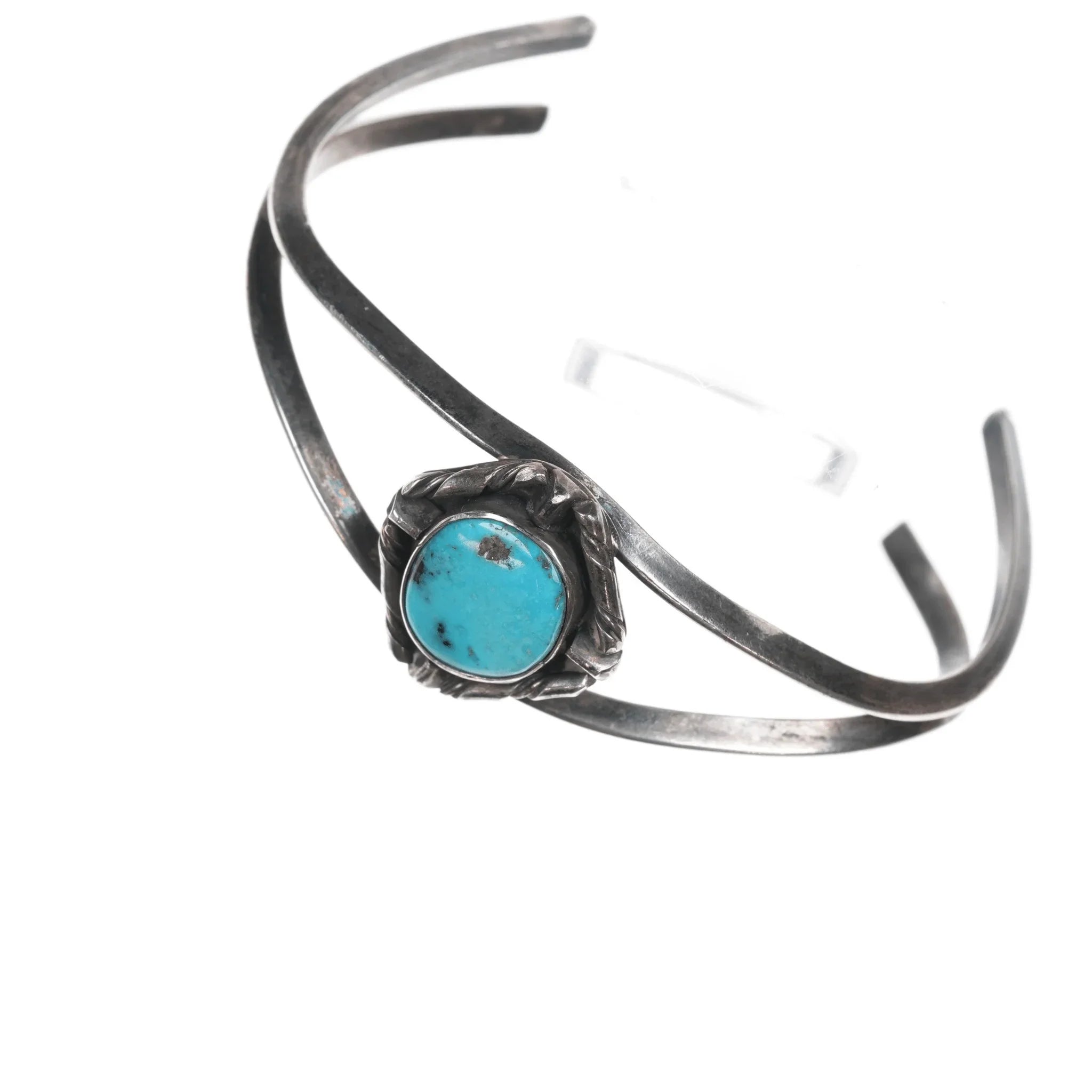 6 5/8" vintage Navajo silver and turquoise double wire cuff bracelet