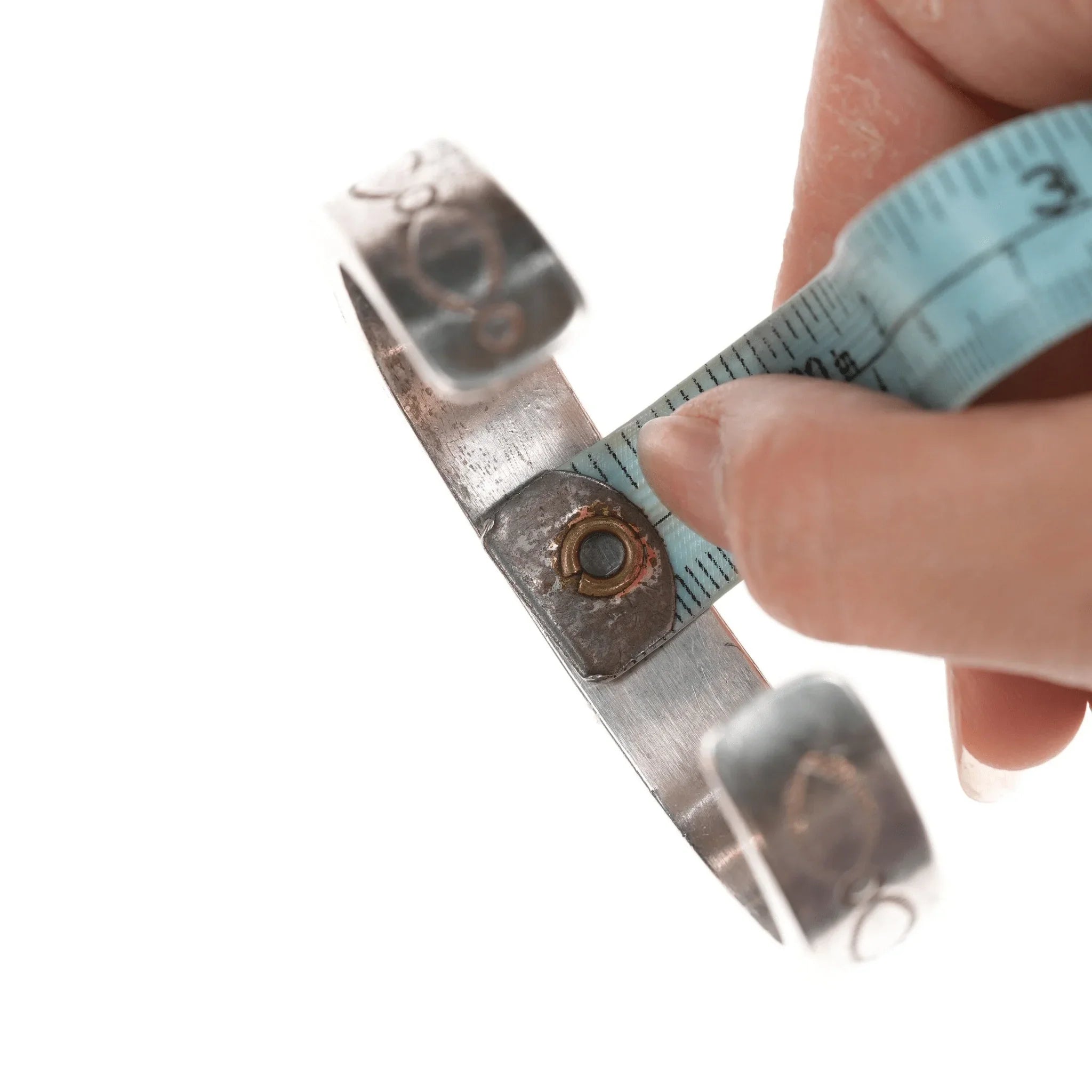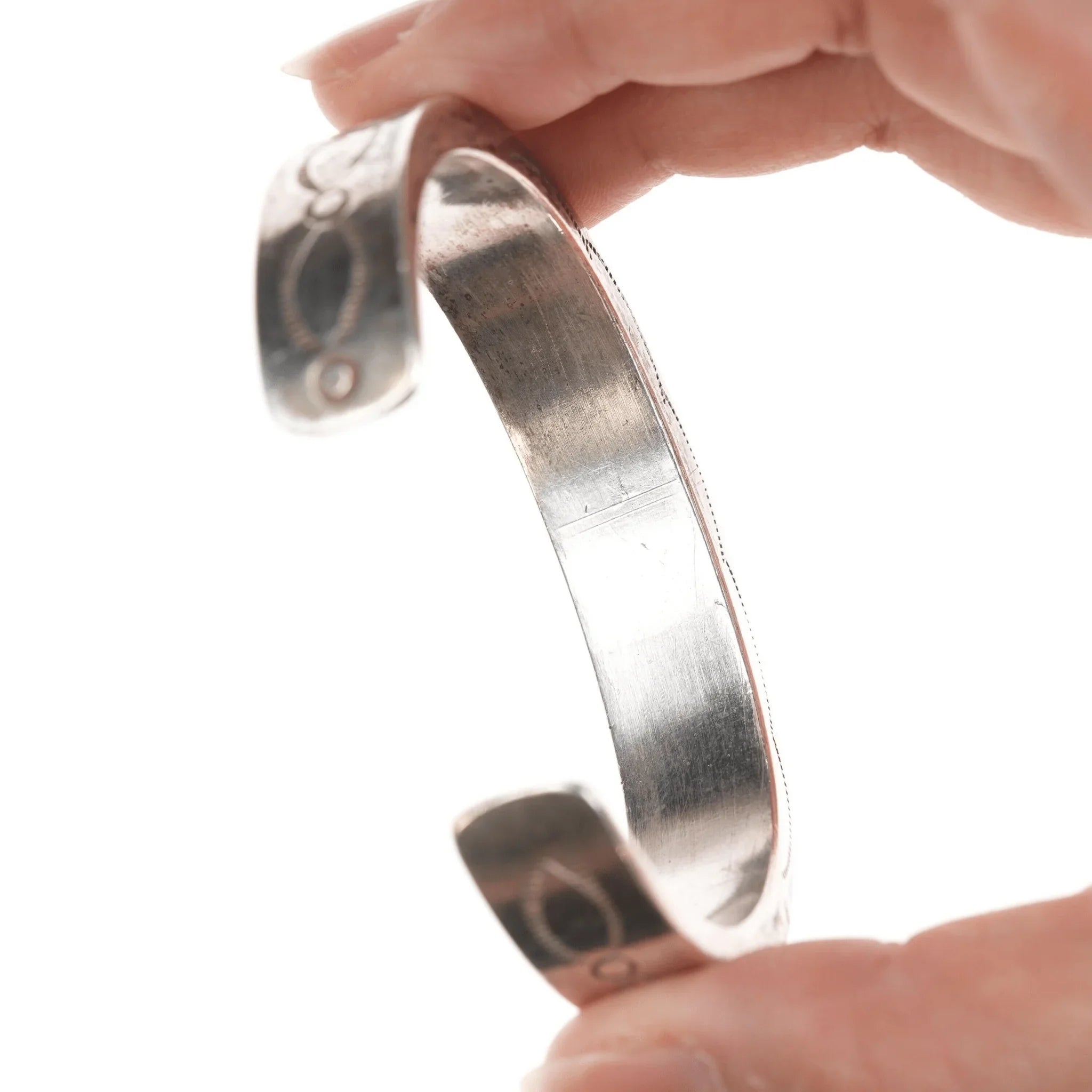 Marked or unmarked as shown in pics, weight and other measurements in pics. Sorry but my jewelry is stored in a secure location and cannot be accessed for more pictures,<br>videos, or measurements until sold. If you look at pictures/description your<br>question should be answered. Thank you so much for your time and consideration!<br><br>All precious metals are tested and guaranteed. A Native American jewelry piece referred to as "silver" or "ingot" is guaranteed to be at least 90% silver. Bracelets are photographed on a 6" women's wrist.