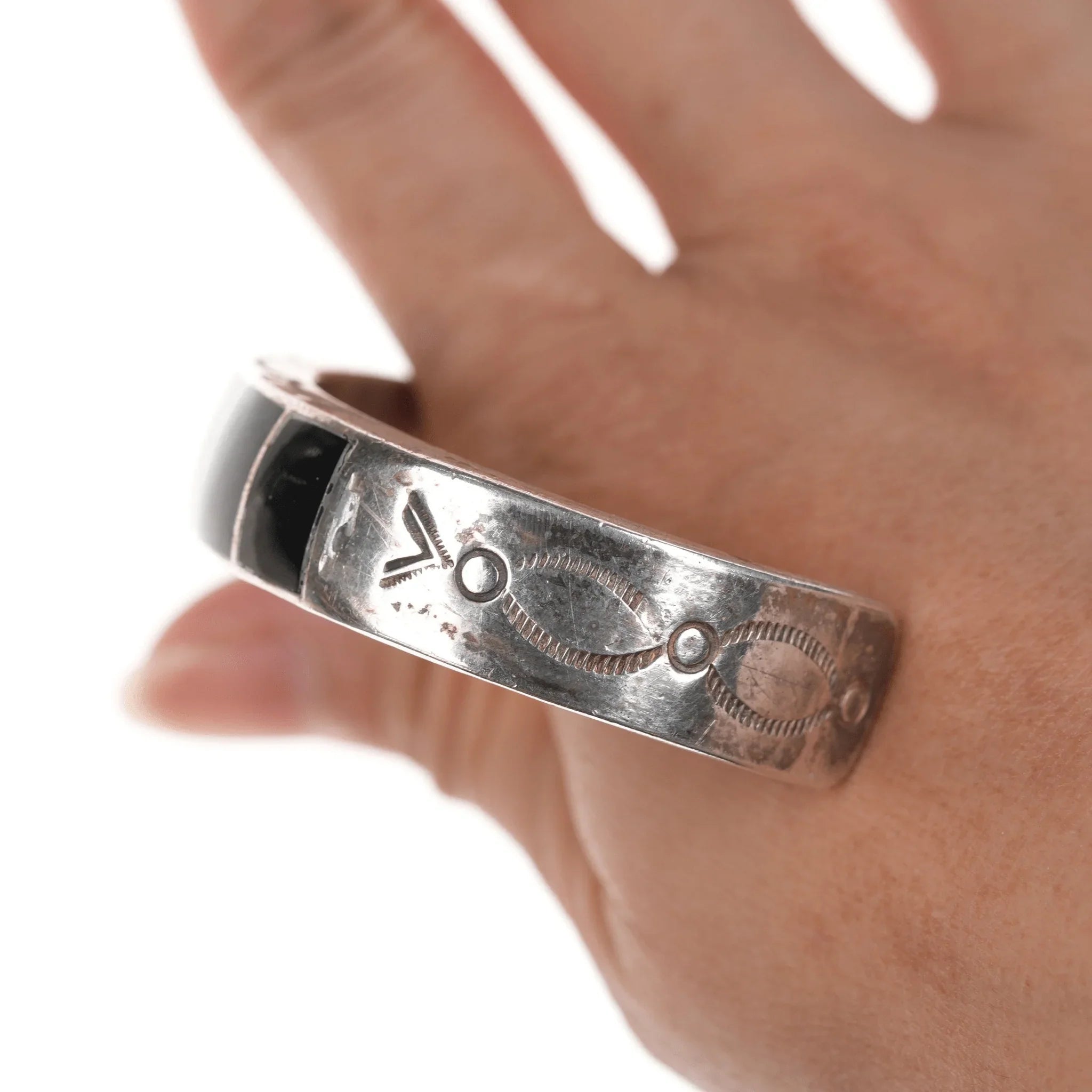 6 5/8" Vintage Zuni channel inlay silver onyx cuff bracelet, no issues, unmarked.