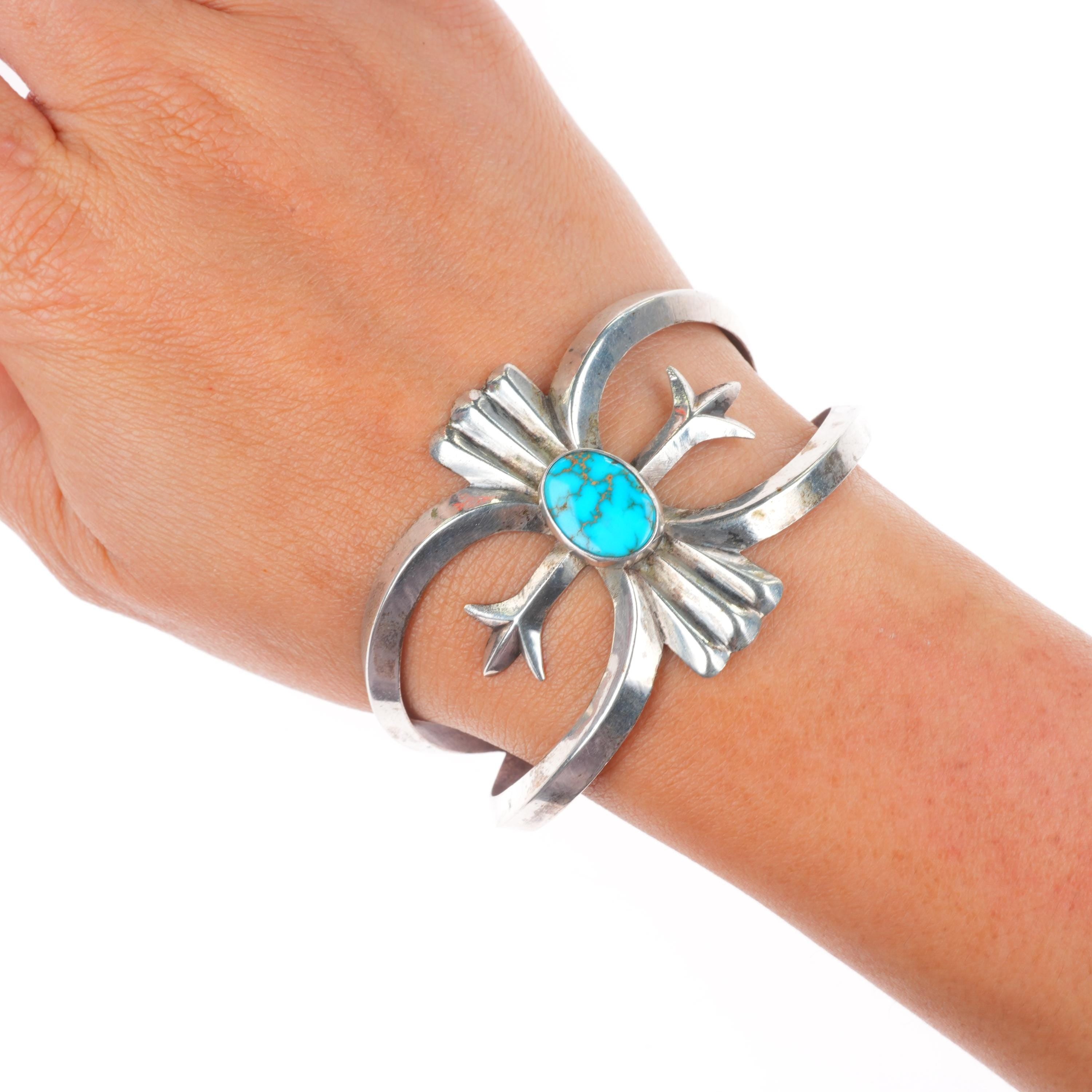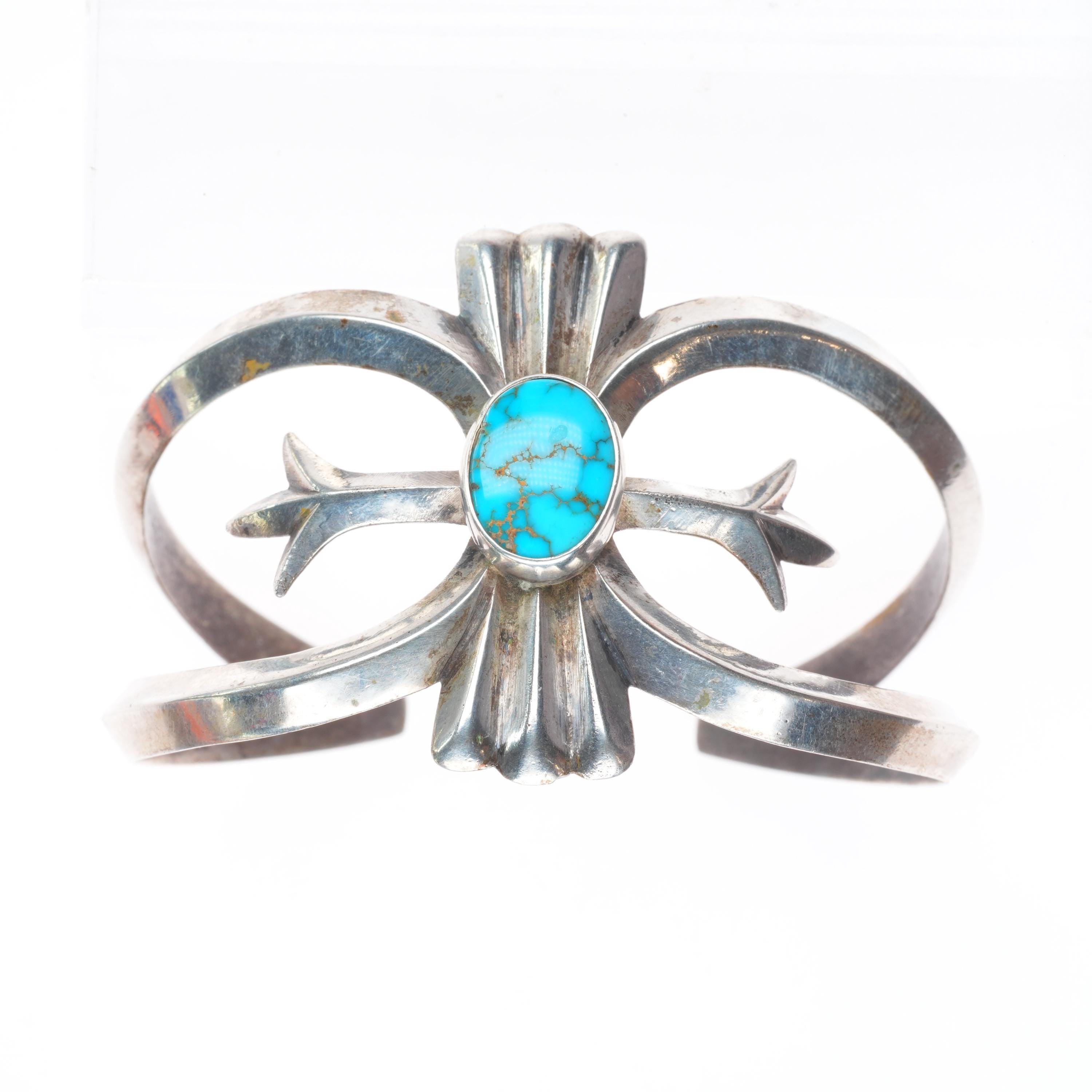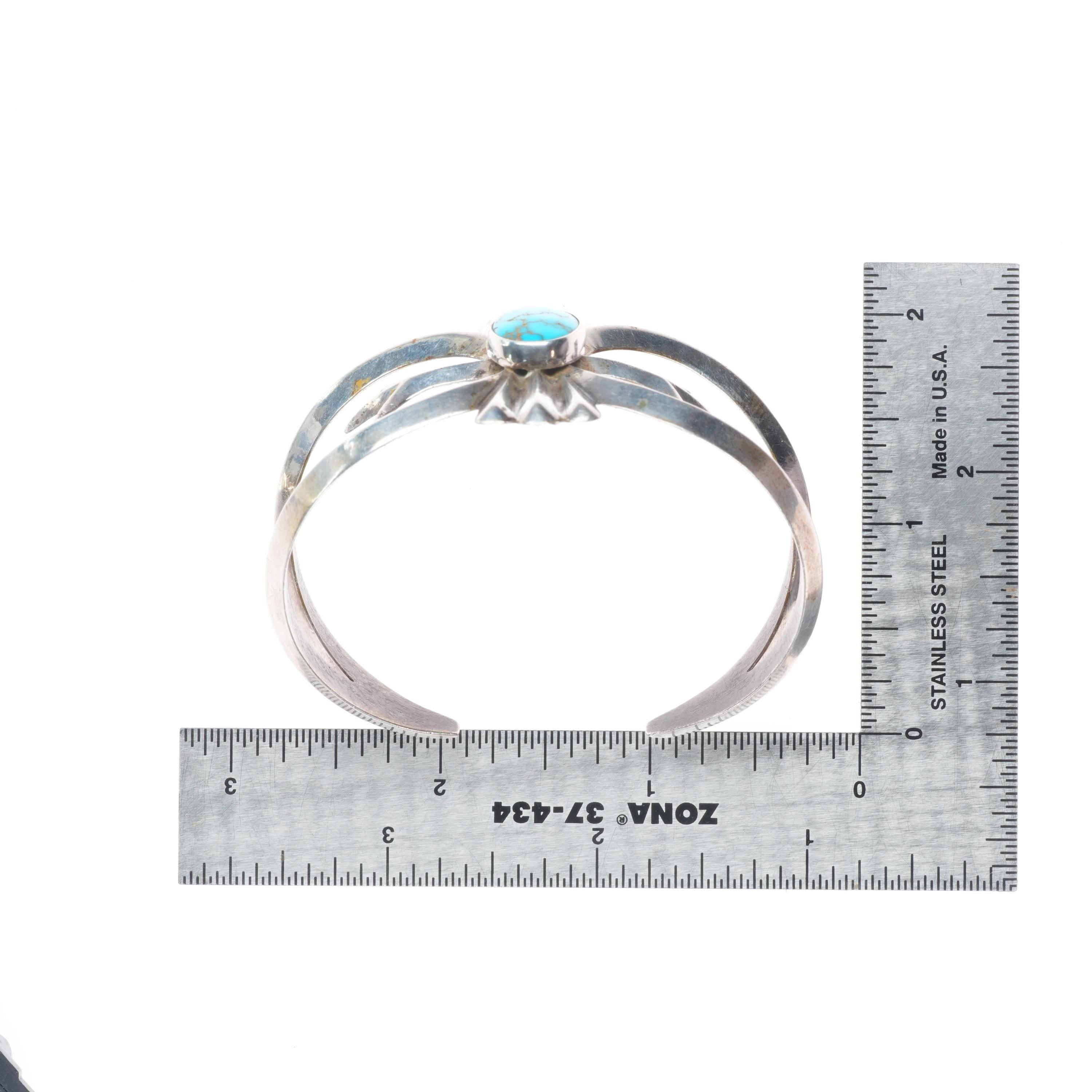 6.6" 1950 vintage Navajo high grade turquoise cast sterling silver cuff bracelet. Tested and guaranteed solid sterling silver, with weight and measurements in pictures, circa mid 20th century. High grade Natural American turquoise, likely from a Nevada mine.