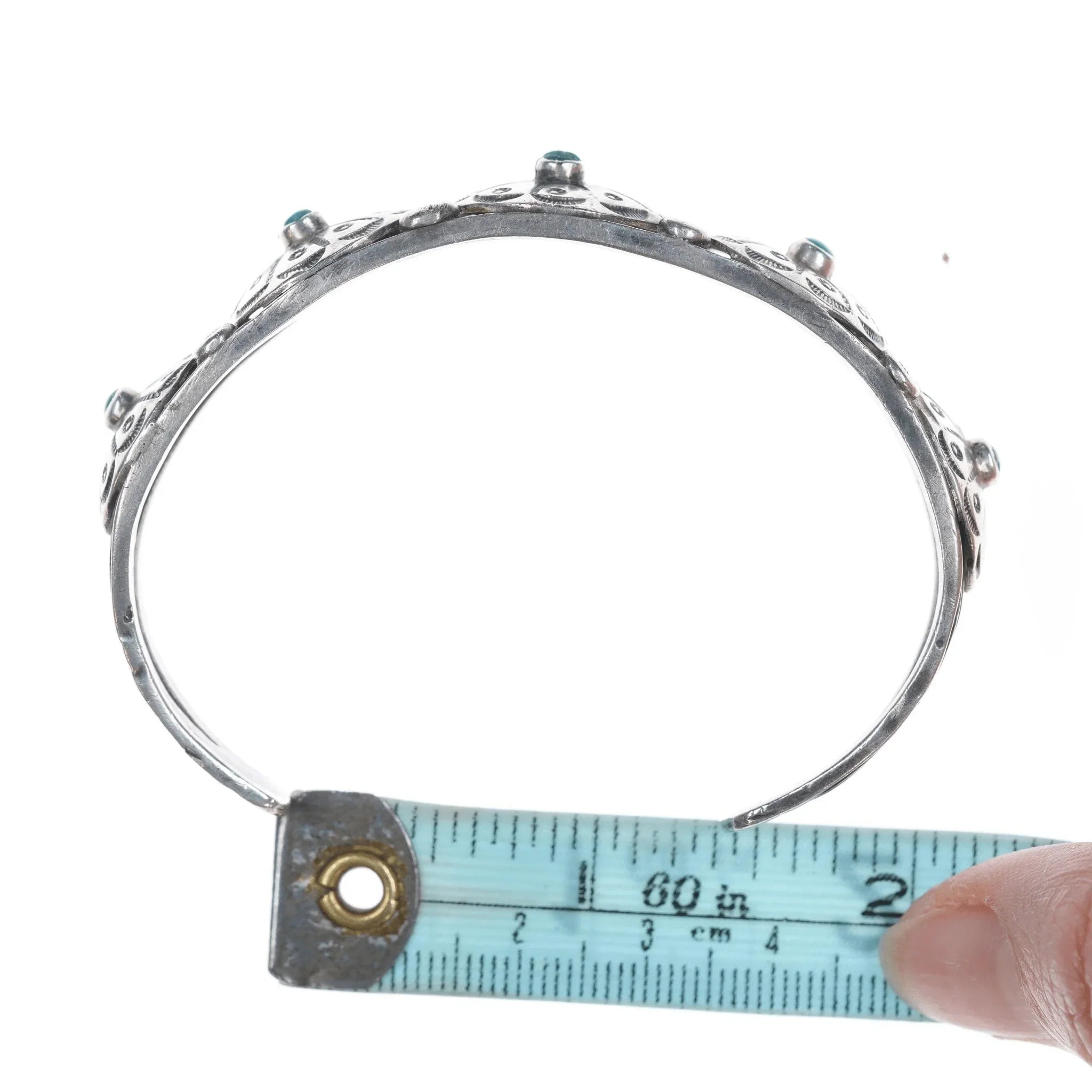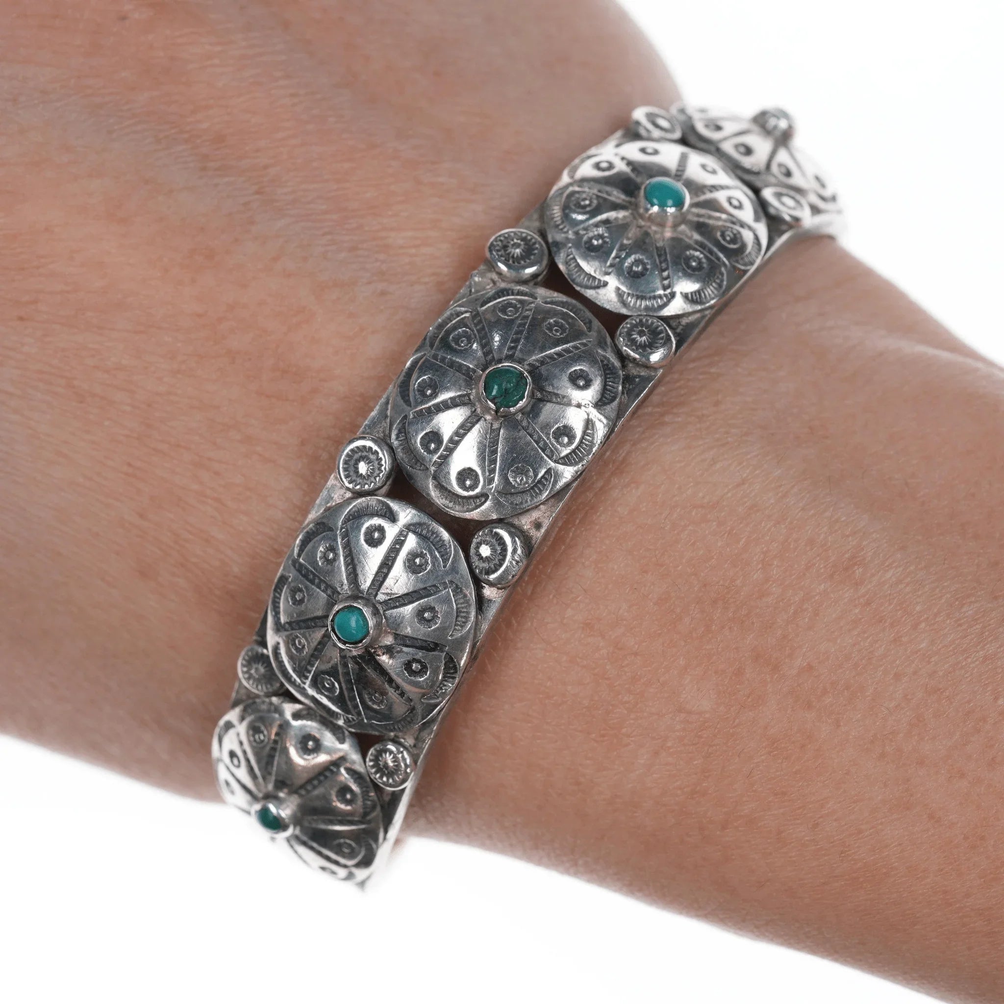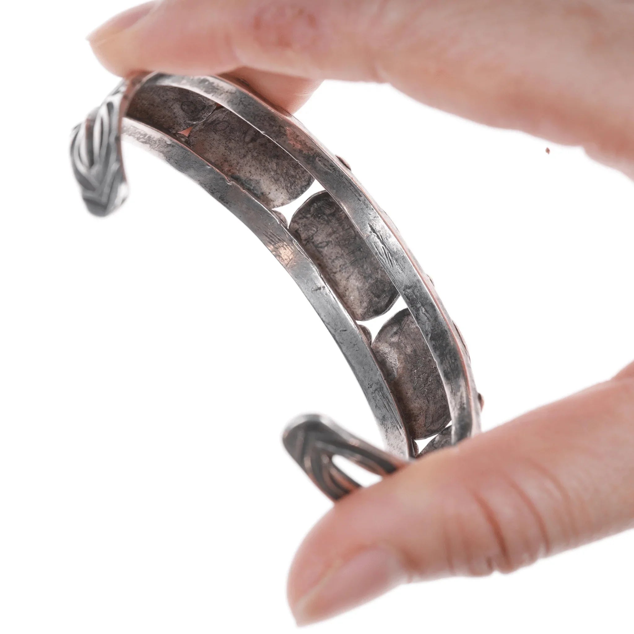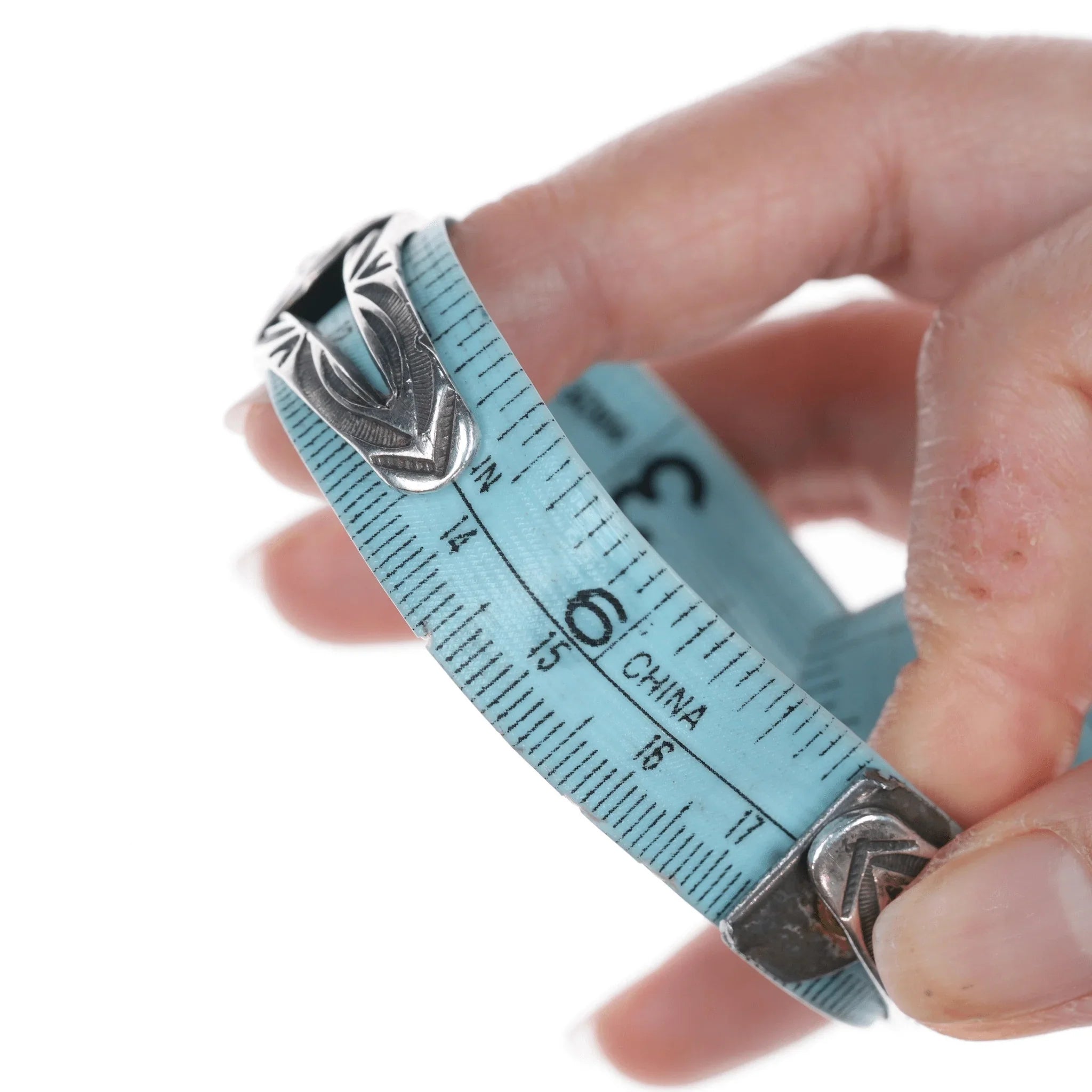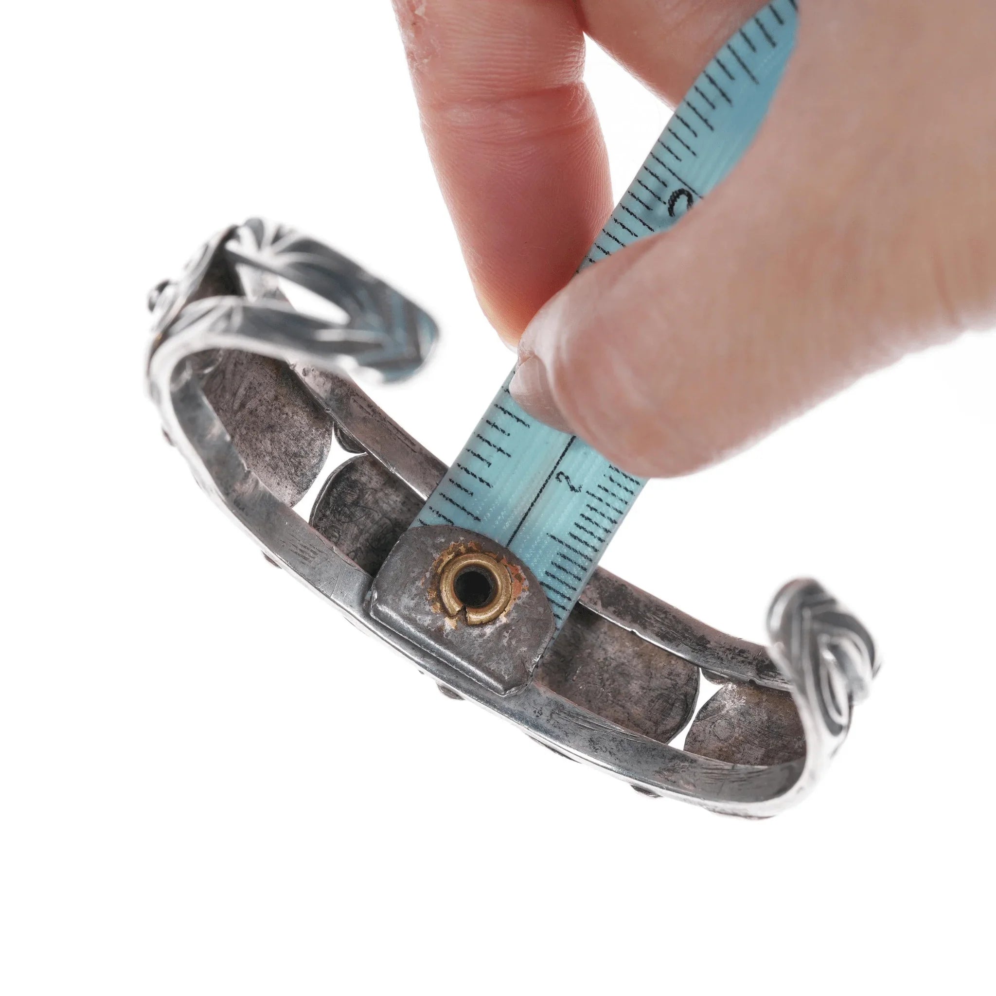 Gelang medali stilver ingot Navajo 6,75" tahun 20-an-30-an dengan pirus mata ular. Batu tengah aman dengan retakan lama.