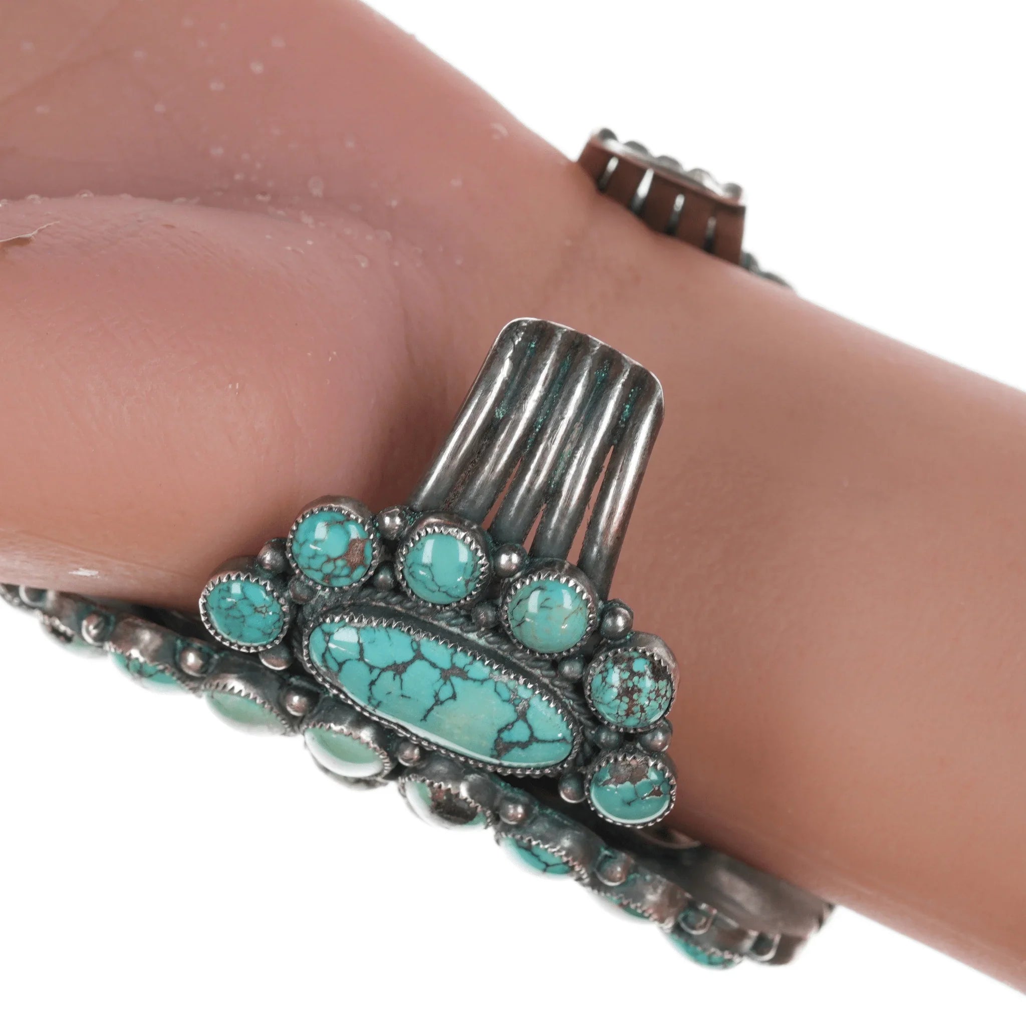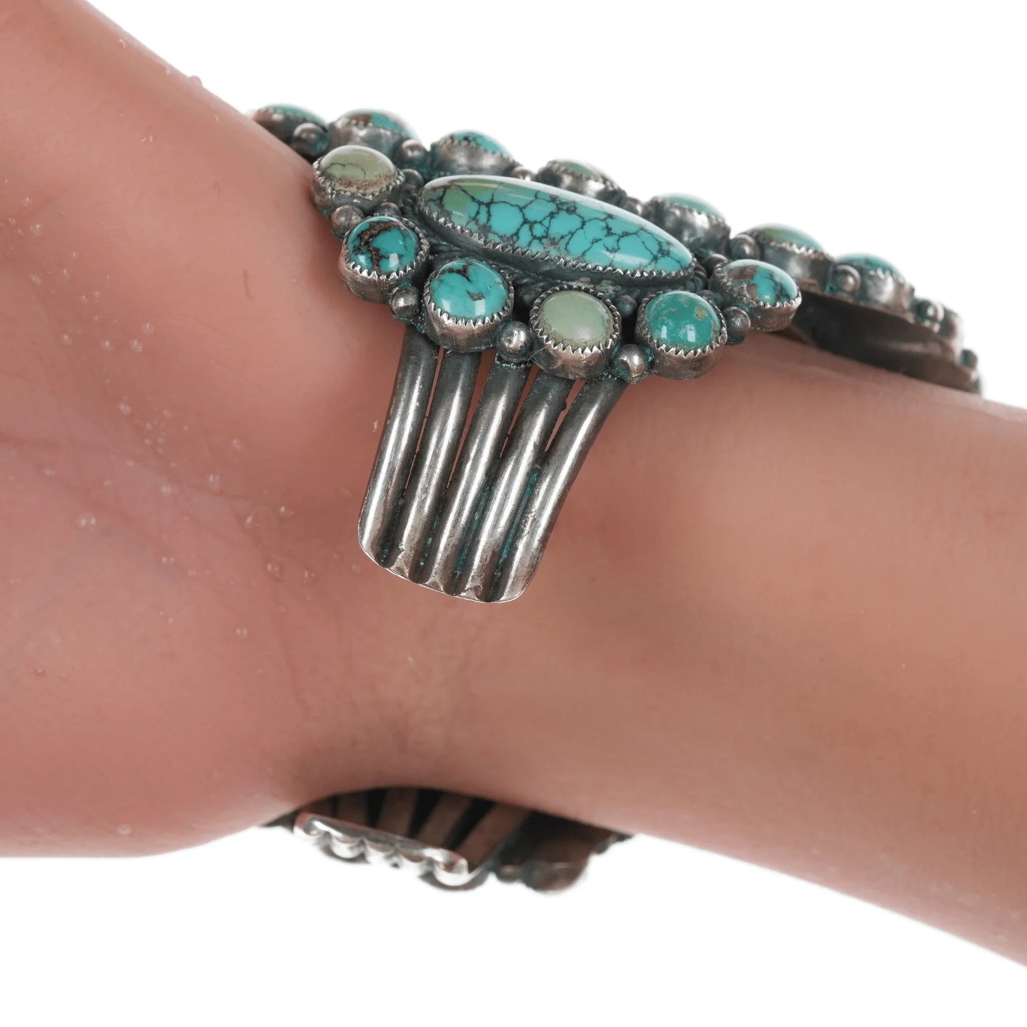 6.75" Esther Wood Navajo Large silver and turquoise cluster cuff bracelet