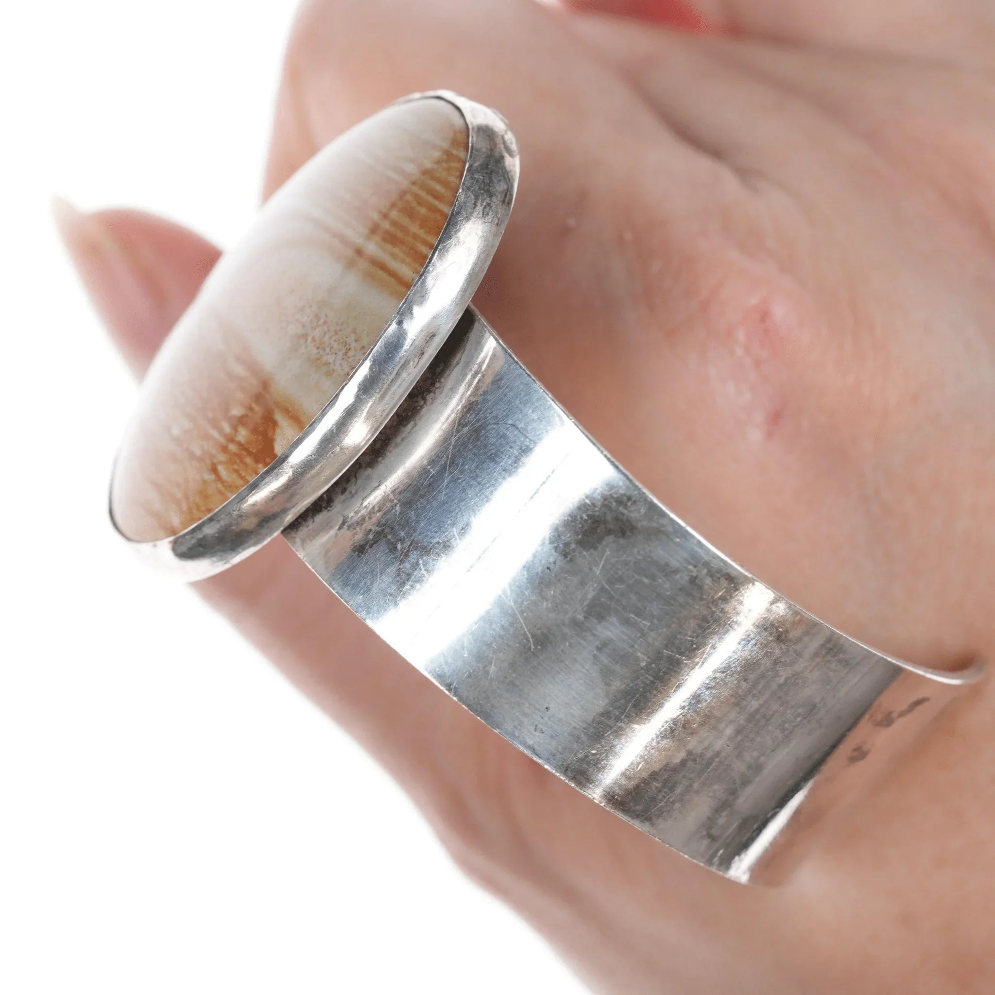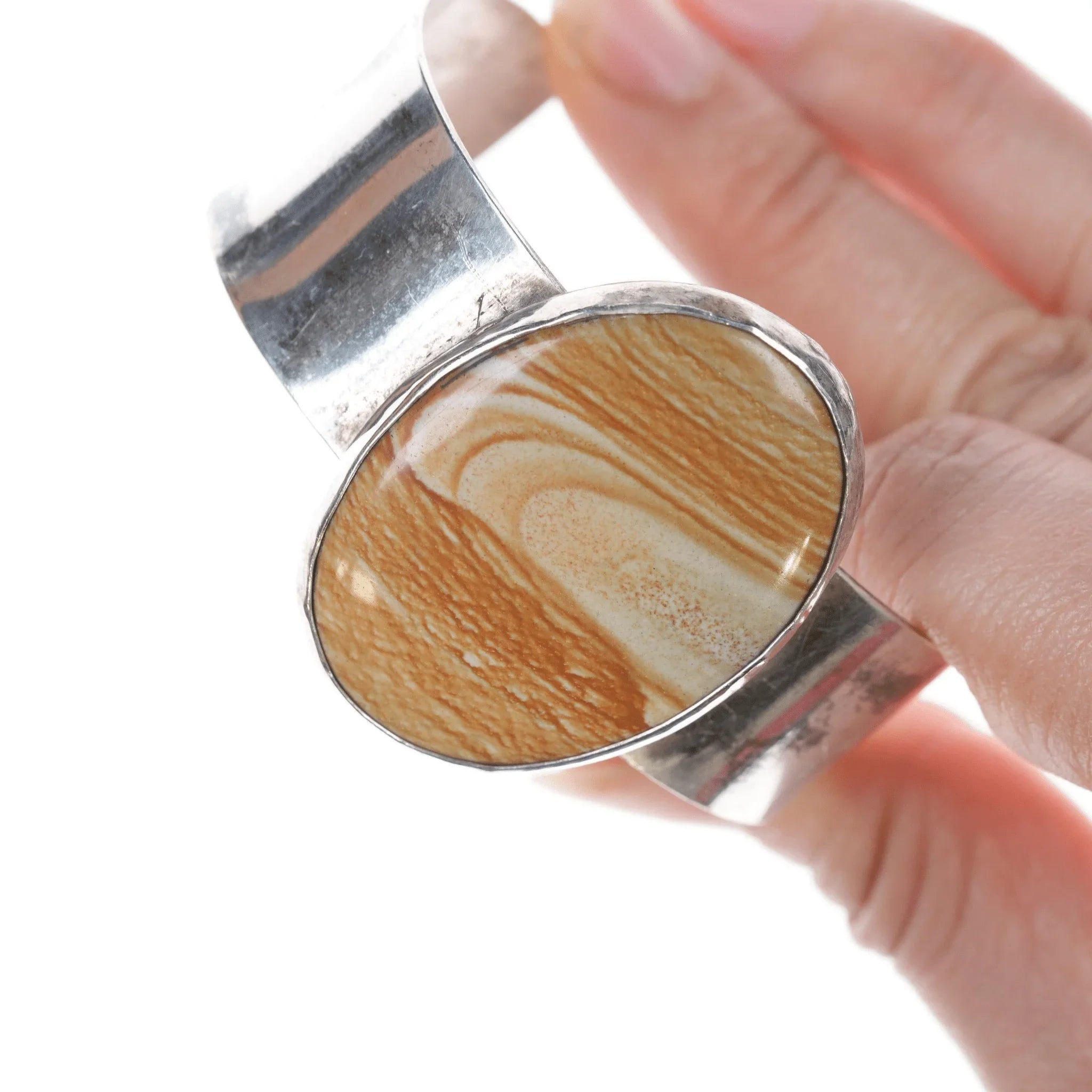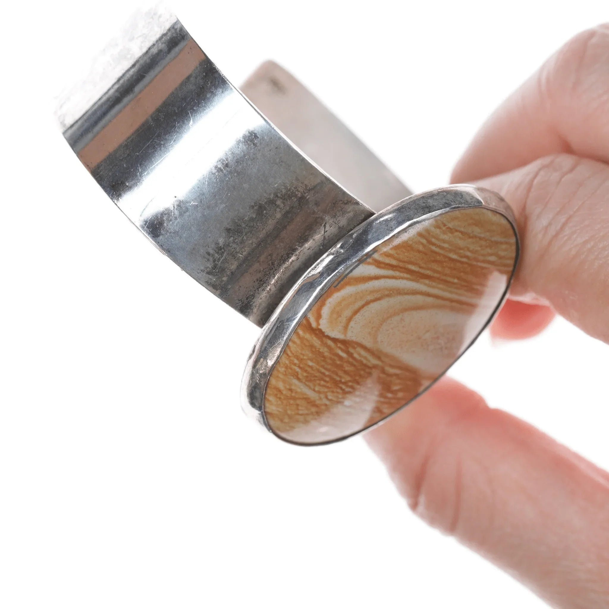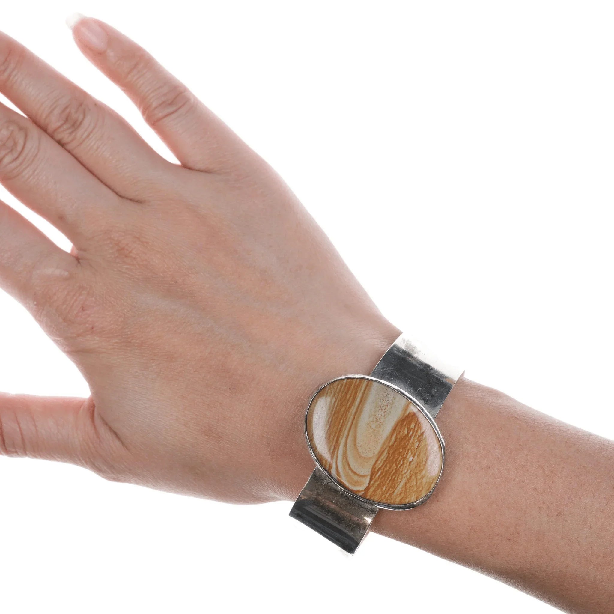 6.75" Retro Southwestern sterling and jasper cuff bracelet<br><br>Marked or unmarked as shown in pics, weight and other measurements in pics. Sorry but my jewelry is stored in a secure location and cannot be accessed for more pictures,<br>videos, or measurements until sold. If you look at pictures/description your<br>question should be answered. Thank you so much for your time and consideration!<br><br>All precious metals are tested and guaranteed. A Native American jewelry piece referred to as "silver" or "ingot" is guaranteed to be at least 90% silver. Bracelets are photographed on a 6" women's wrist.