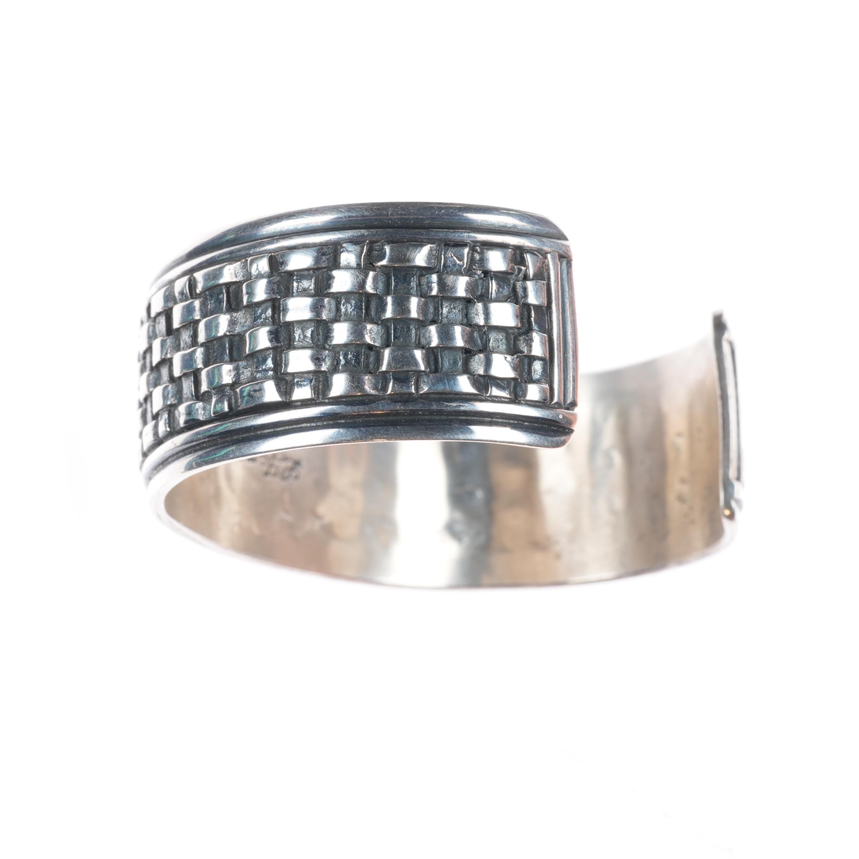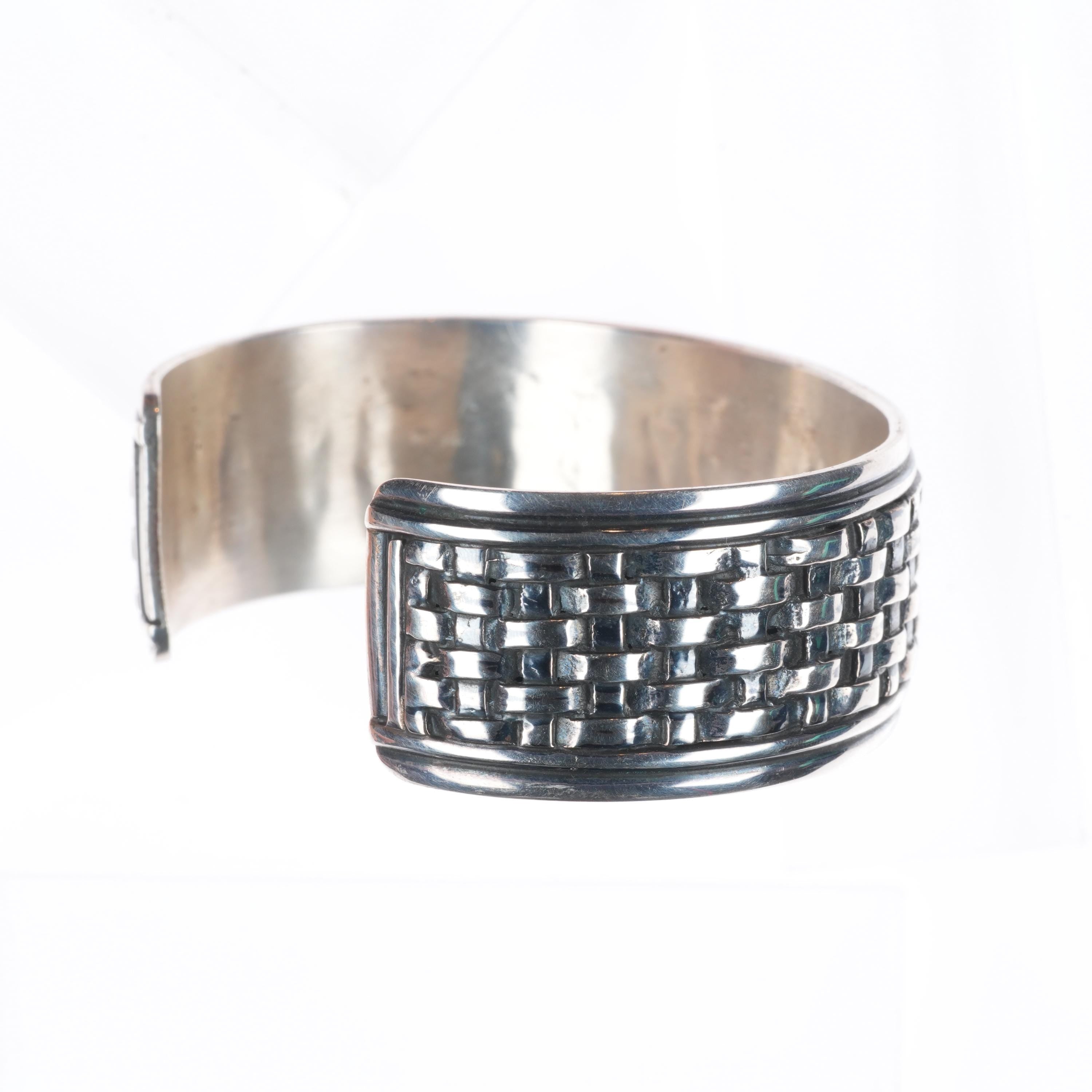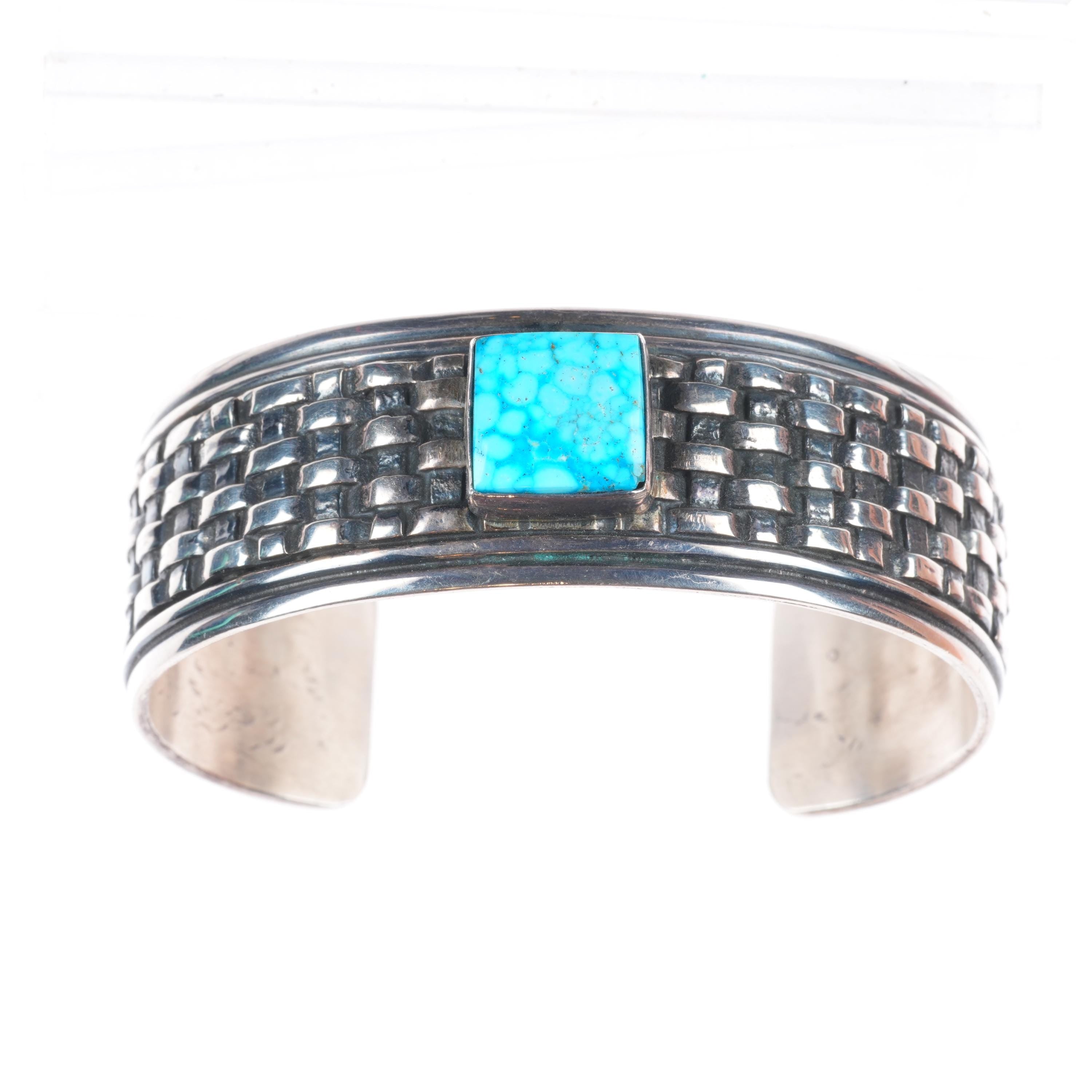6.75" Vintage Navajo L James sterling silver turquoise basketweave cuff bracelet