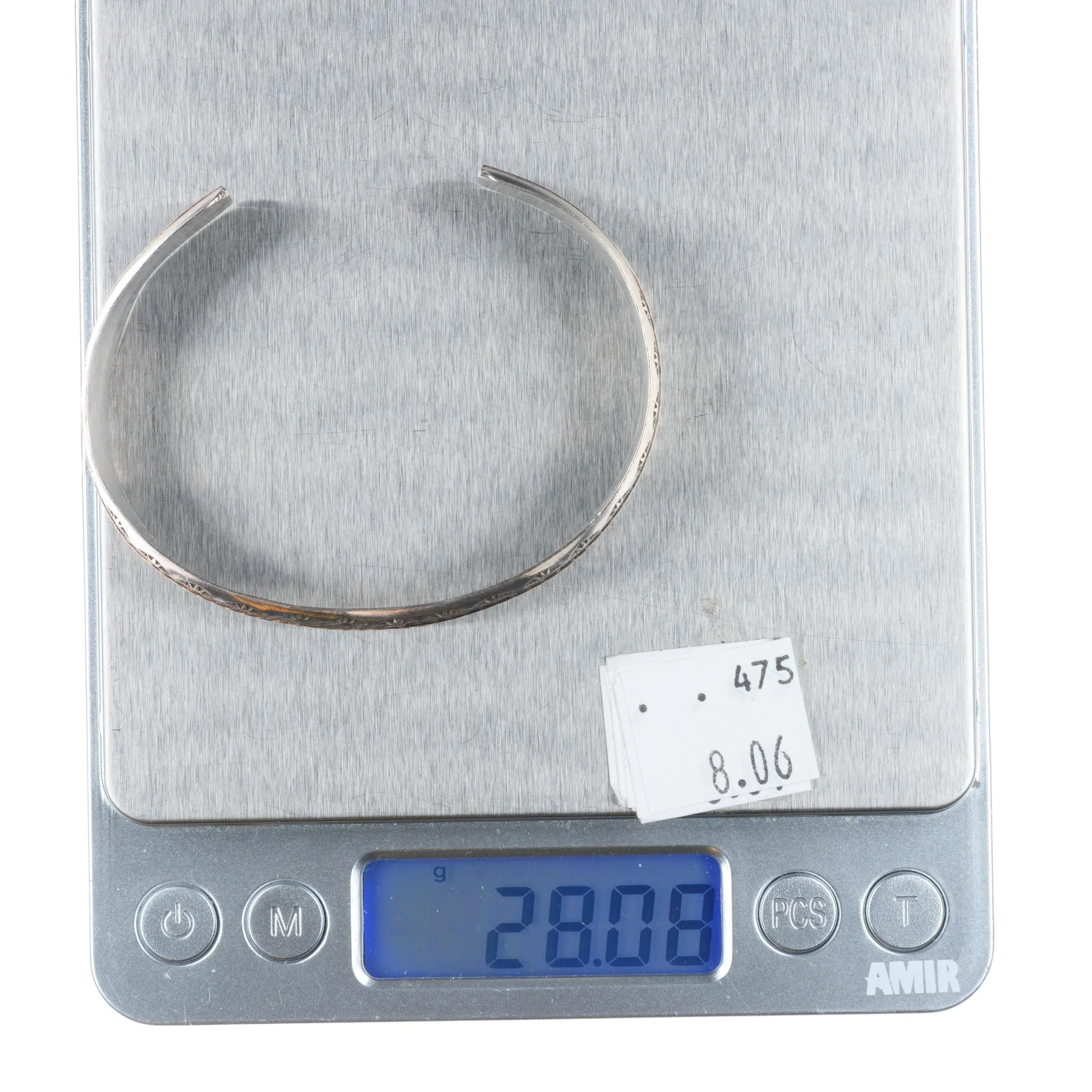6.9" Dawn Lucas Navajo sterling silver 14k gold heavily stamped cuff bracelet