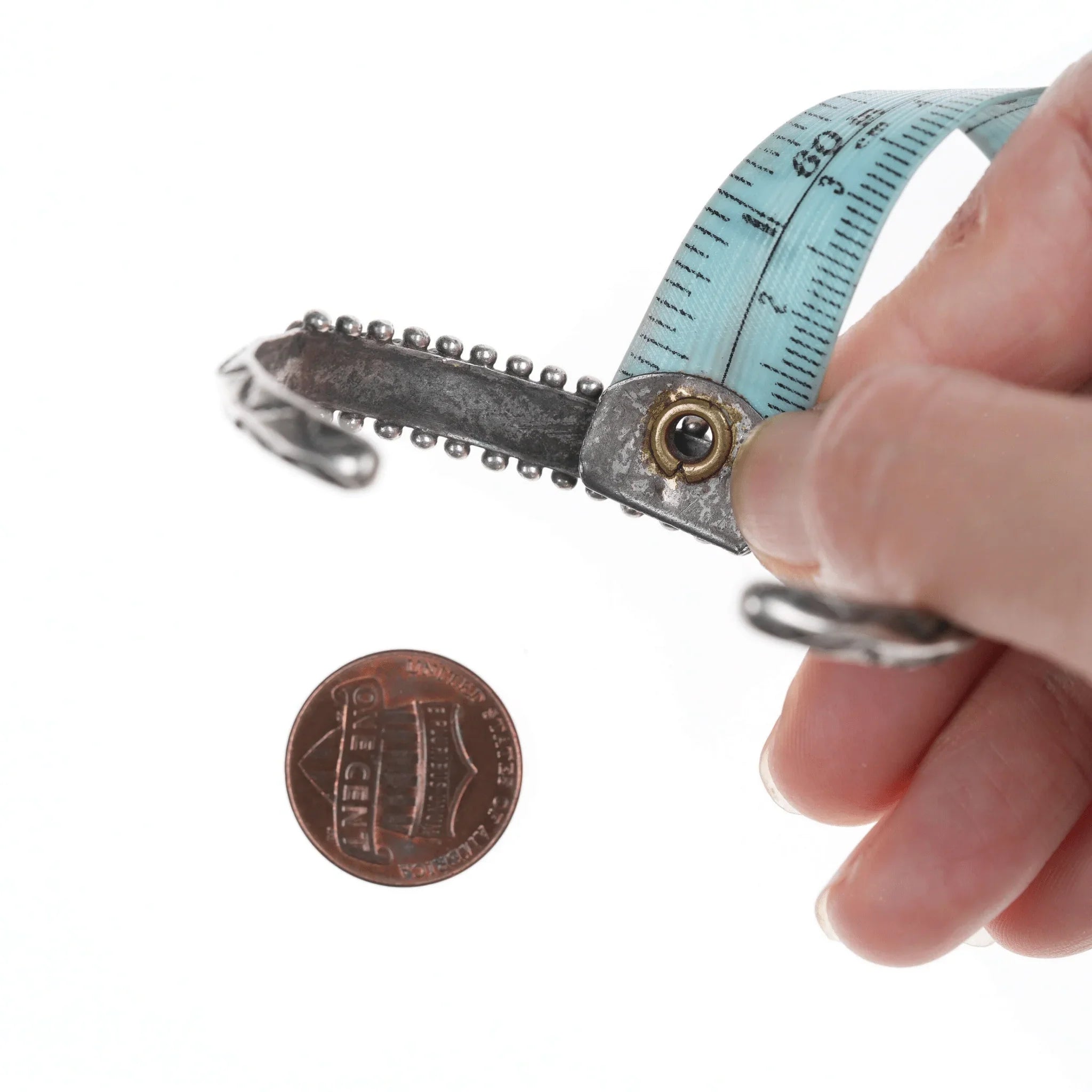Marked or unmarked as shown in pics, weight and other measurements in pics. Sorry but my jewelry is stored in a secure location and cannot be accessed for more pictures,<br>videos, or measurements until sold. If you look at pictures/description your<br>question should be answered. Thank you so much for your time and consideration!<br><br>All precious metals are tested and guaranteed. A Native American jewelry piece referred to as "silver" or "ingot" is guaranteed to be at least 90% silver. Bracelets are photographed on a 6" women's wrist.
