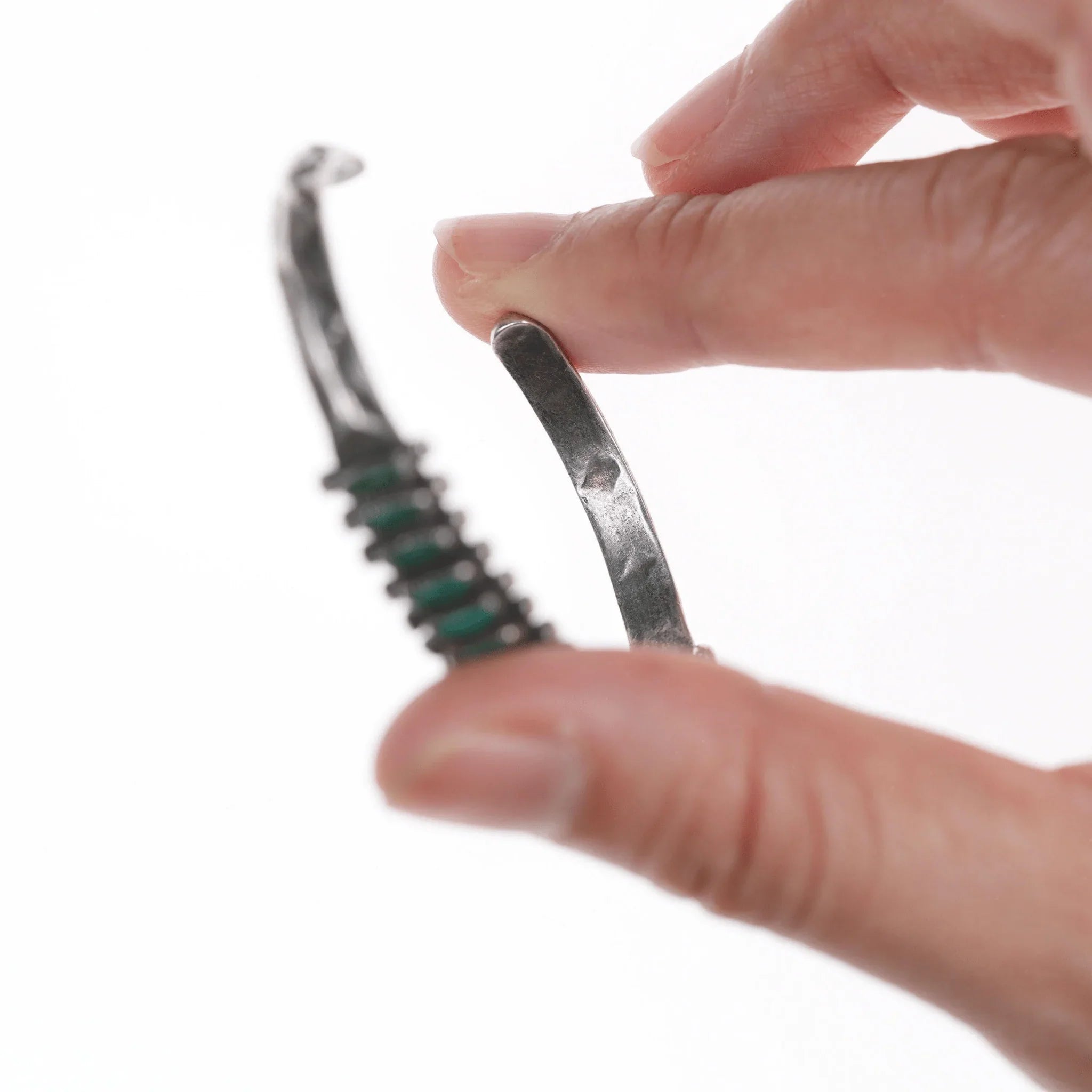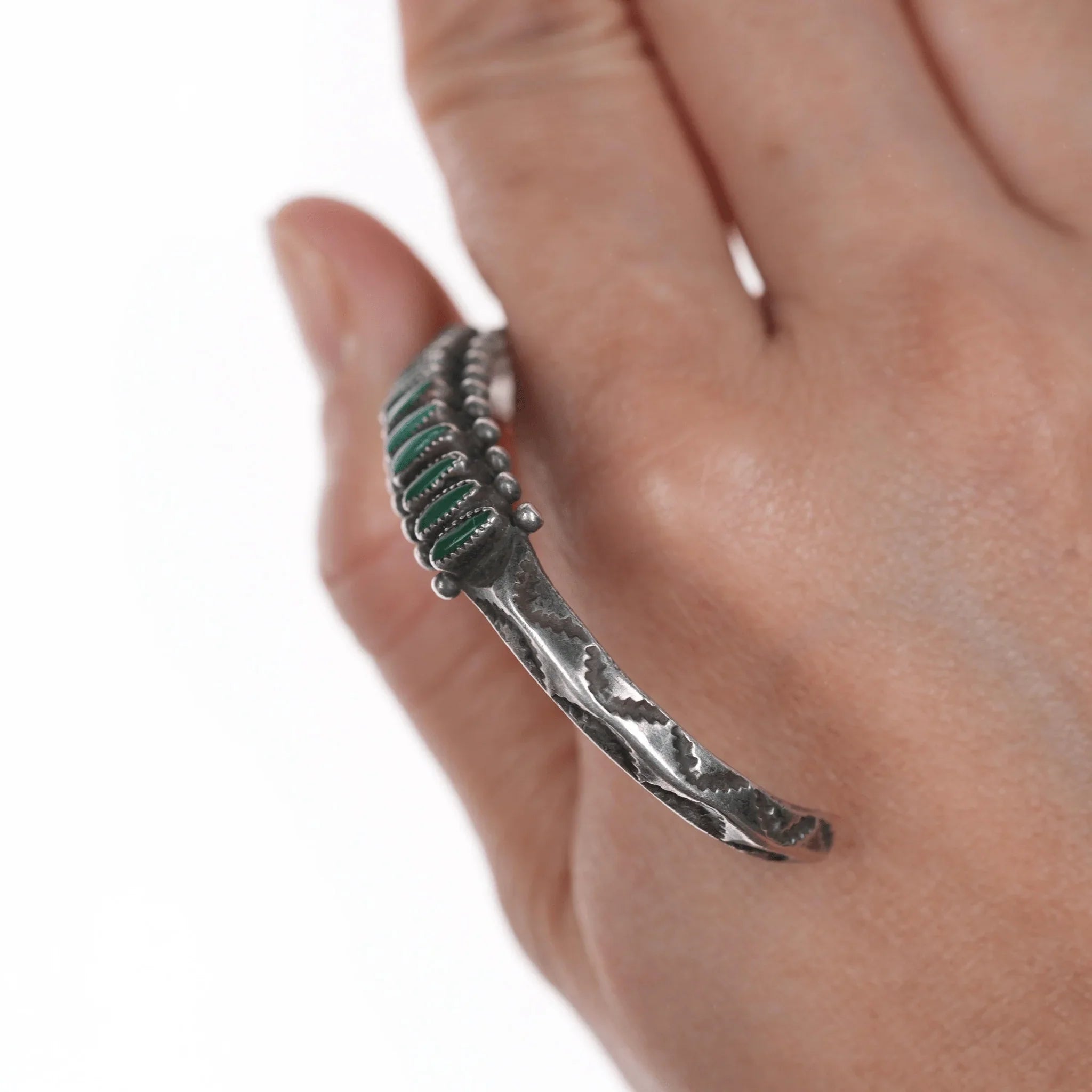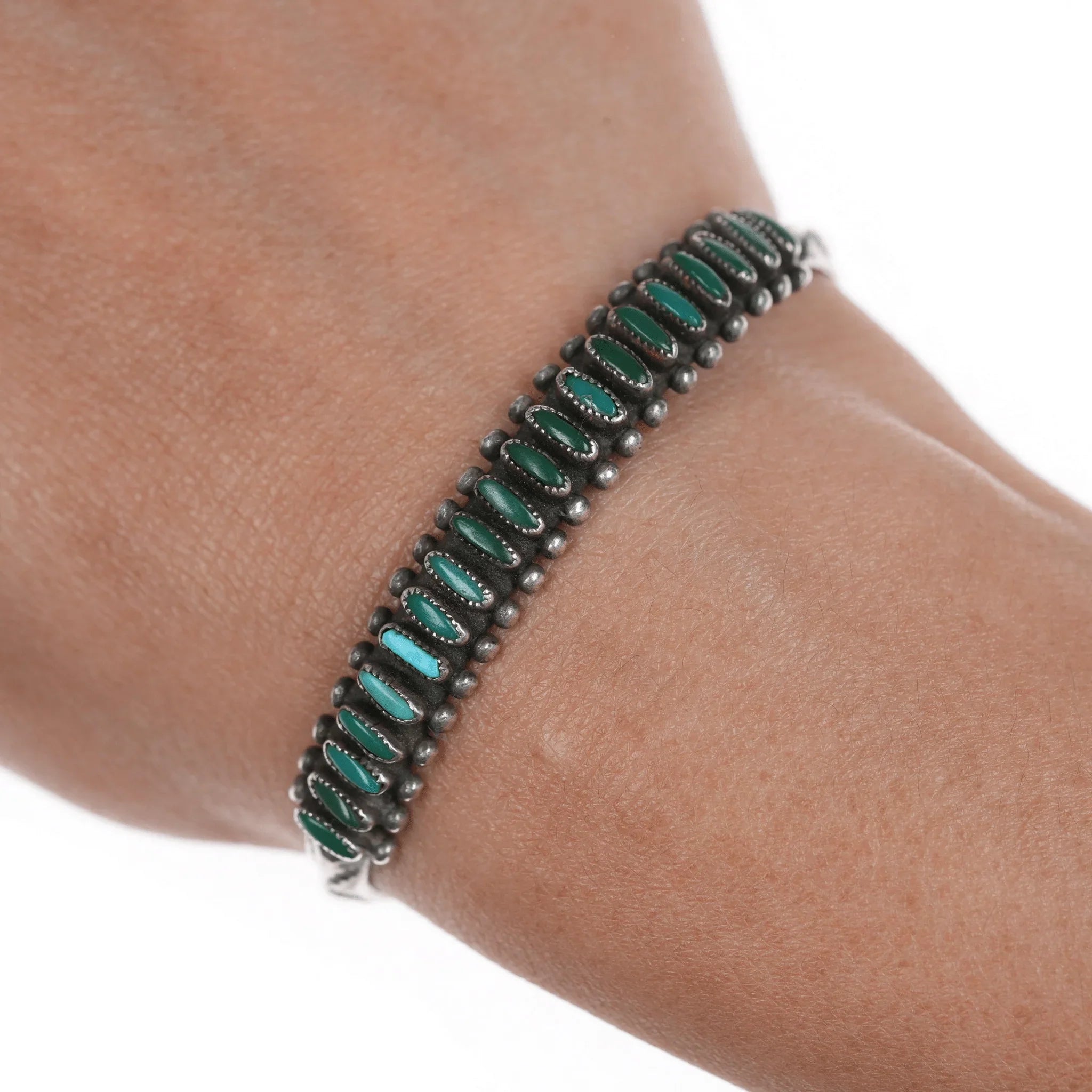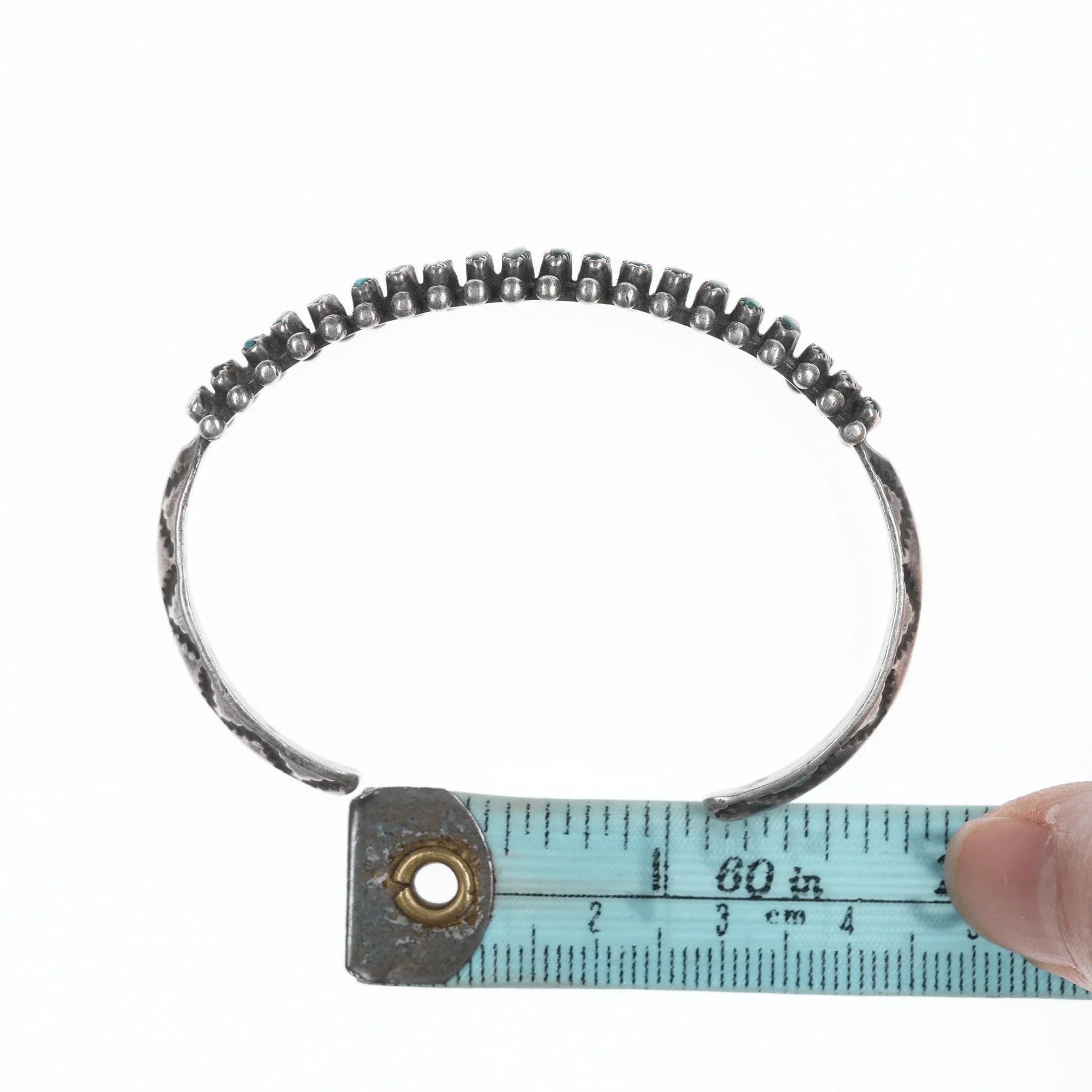 6" c1930's Zuni needlepoint turquoise stamped silver cuff bracelet.
