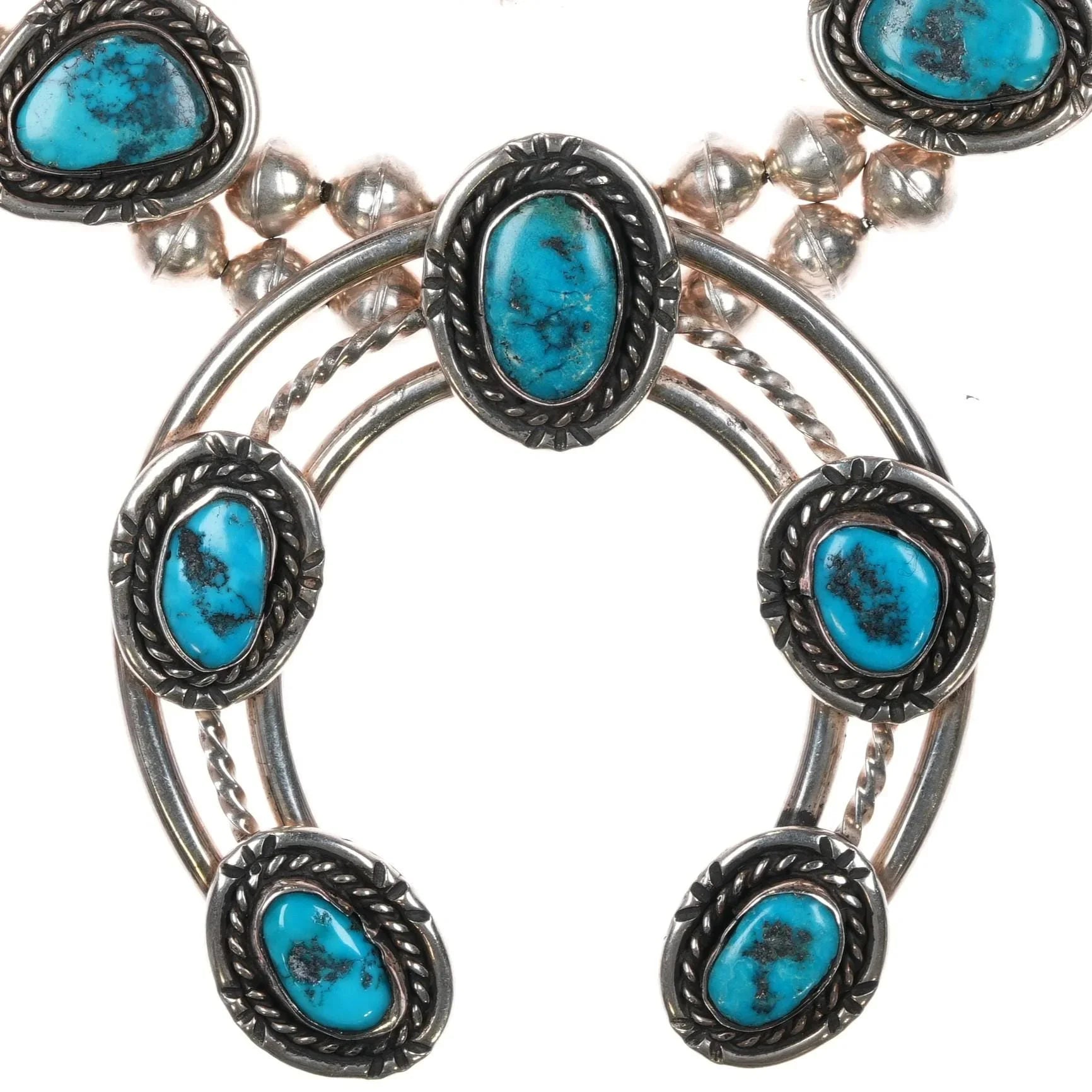 60's-70's Navajo sterling silver turquoise squash blossom necklace