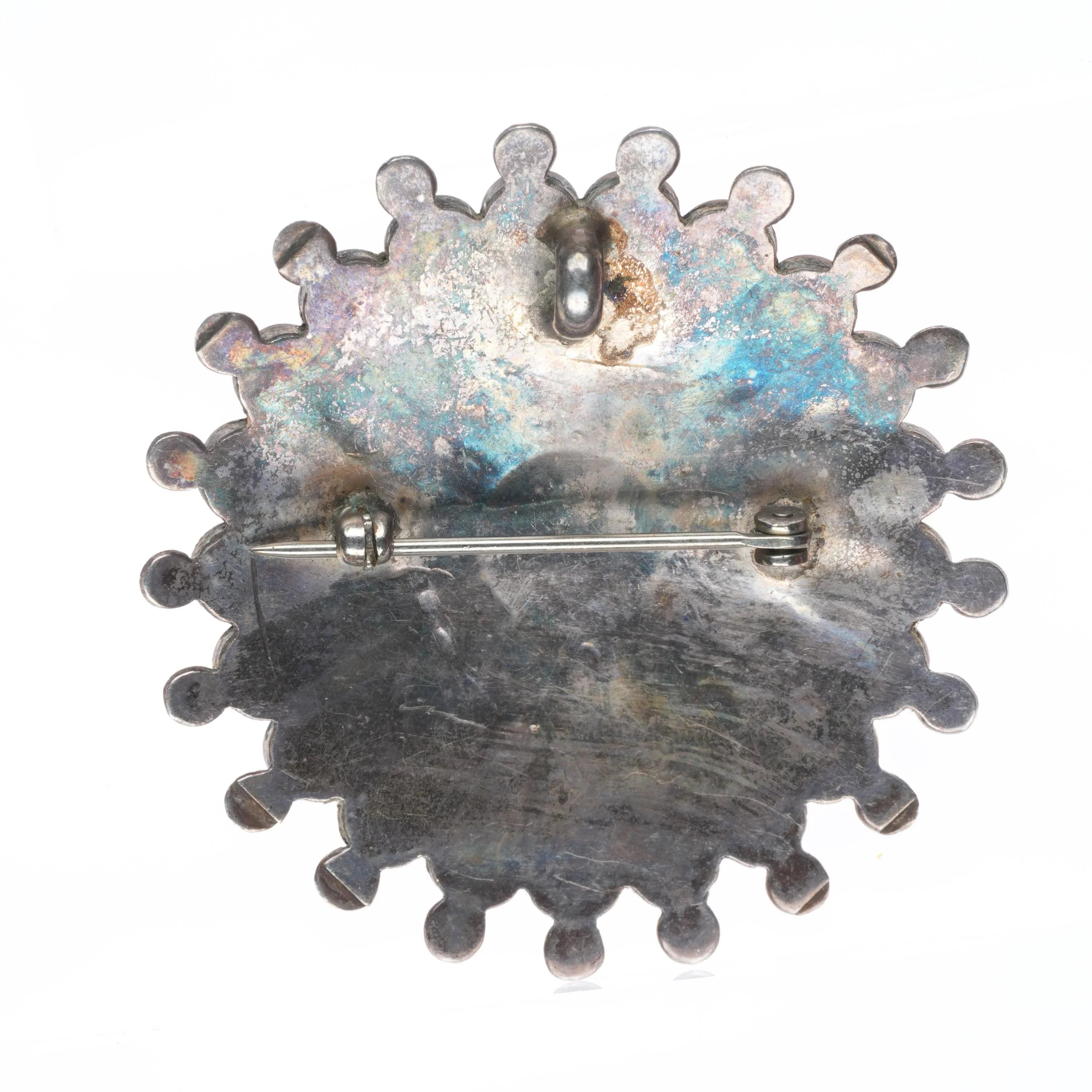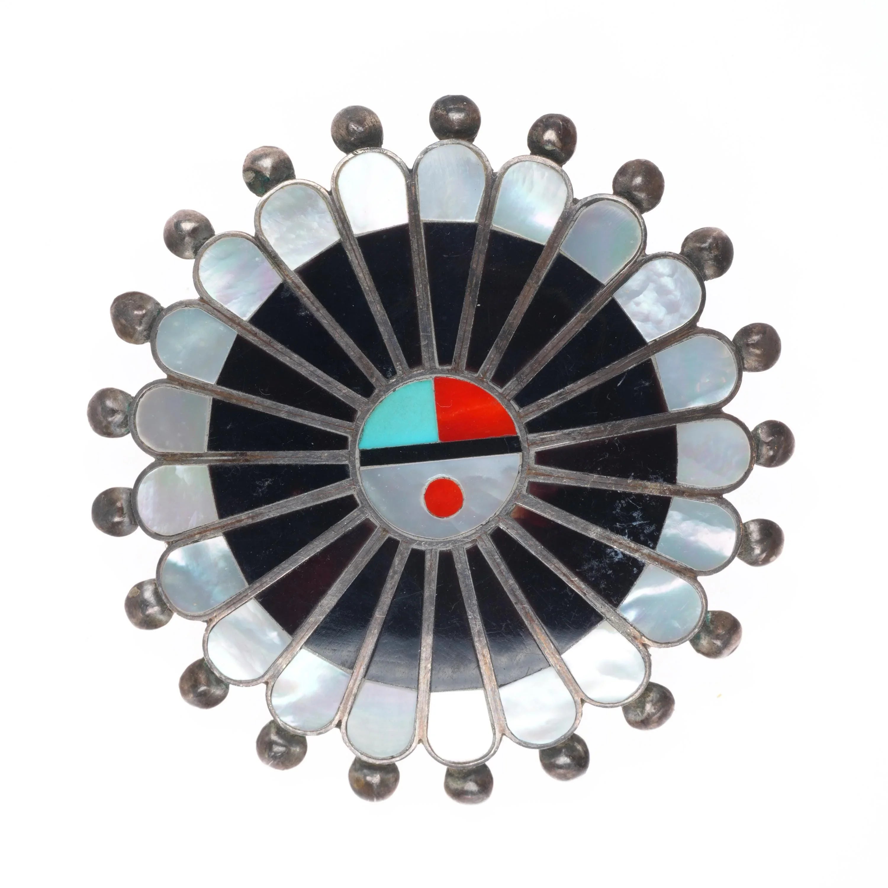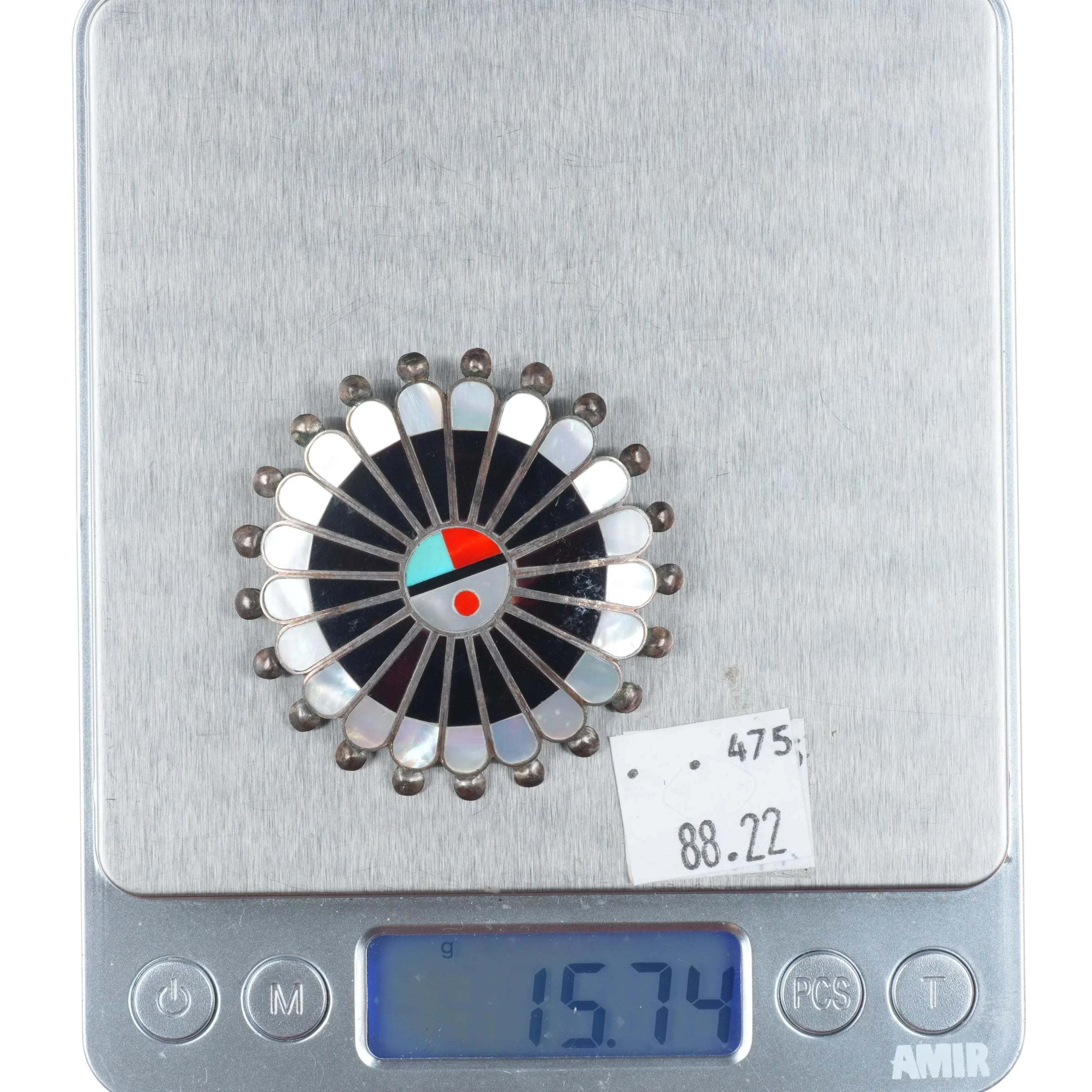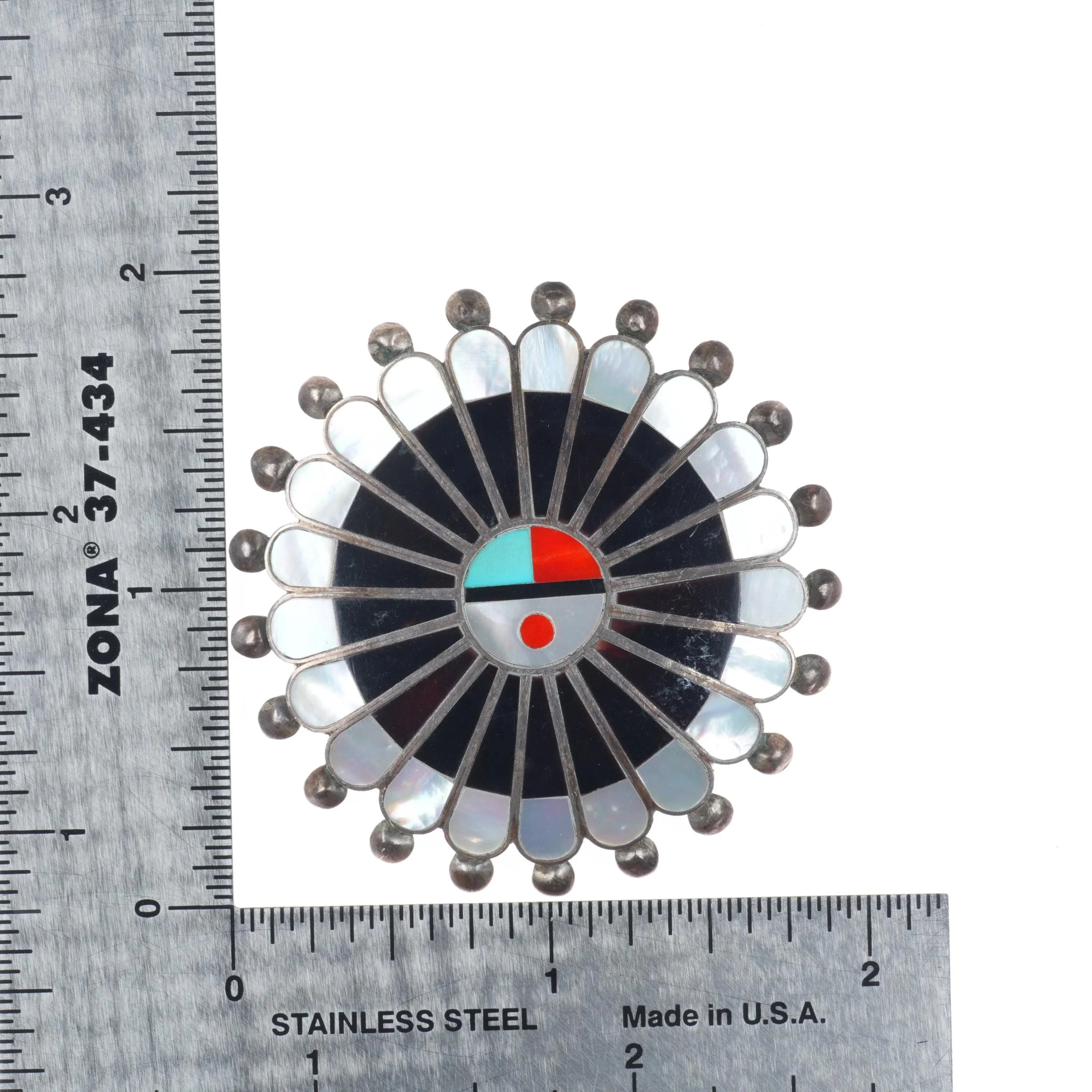 60's-70's Zuni sterling silver shell/stone inlay sunface penant/pin