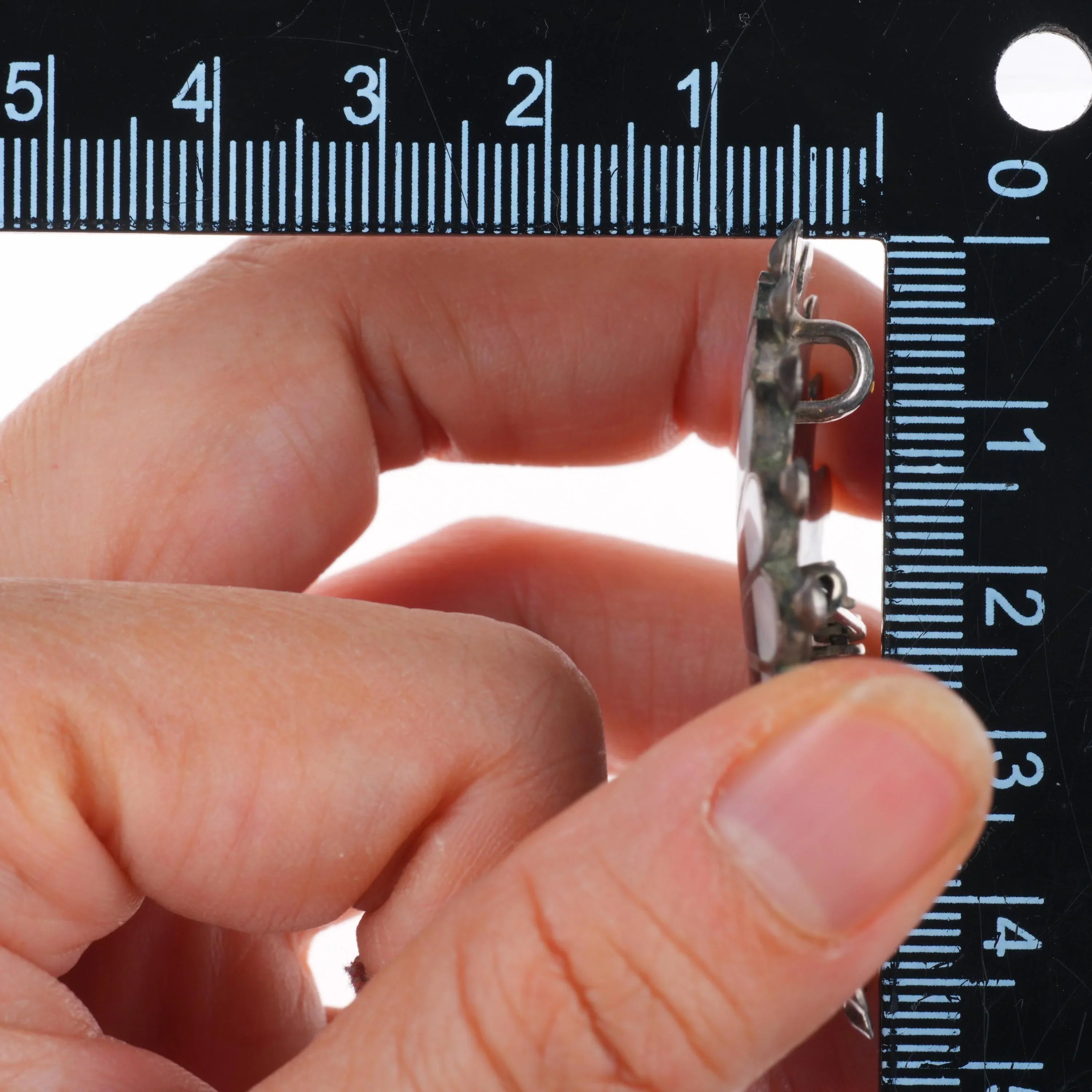 60‘s-70‘s Zuni sterling silver shell/stone inlay sunface penant/pin. Solid sterling silver tested and guaranteed with weight and measurements in the pictures. No issues, circa third quarter of the 20th century.