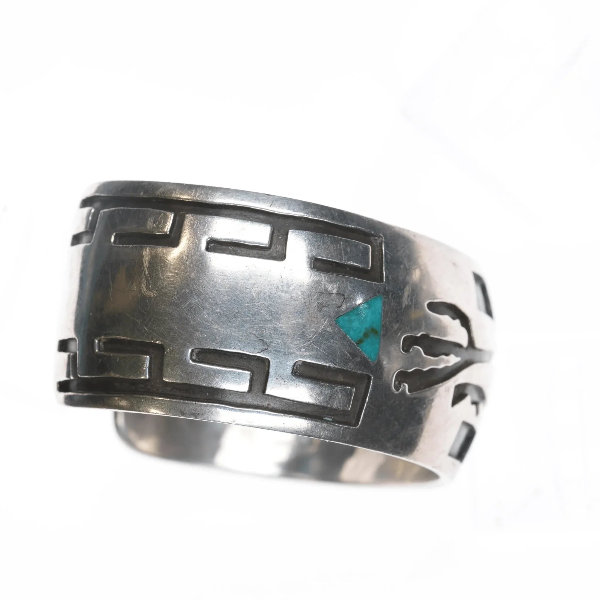 Marked or unmarked as shown in the pics. If a mark isn't shown then it isn't marked which is common with pre 1970's Native American jewelry that isn't from one of the larger trading posts. All precious metals are tested and guaranteed, any Native American jewelry<br>referred to as Silver or Sterling is guaranteed to be a minimum of 90% (coin)silver and possibly higher content. Anything marked is guaranteed to be what<br>it's marked, most bracelets are photographed on a 6" wrist (non hairy), rings<br>photographed on the appropriate sized finger when possible. With bracelets if<br>the measurement is not given in the description then inside circumference is<br>shown where the metal meets the number on the the cloth tape measure.