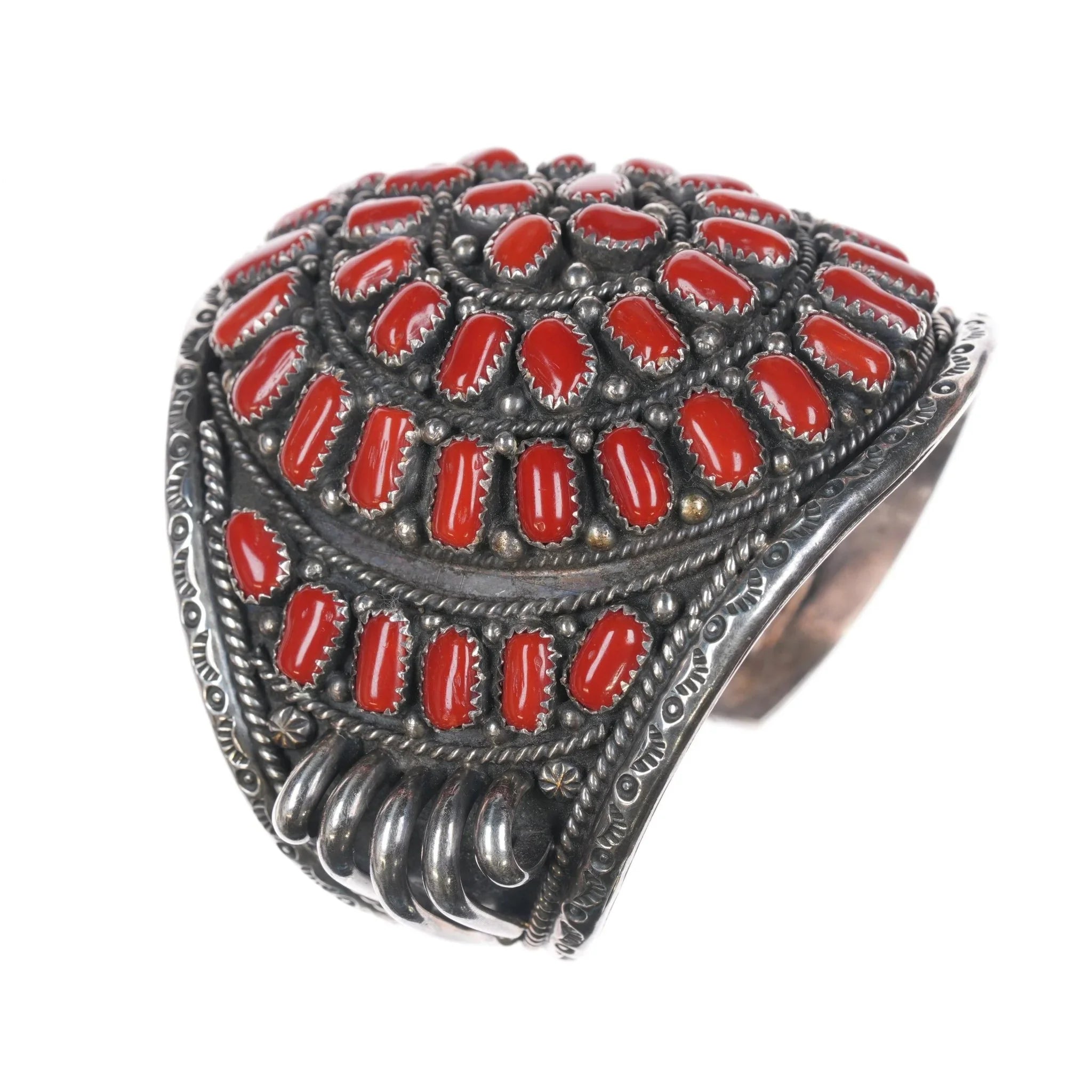 7.25" c1980‘s Robert Kelley Navajo Sterling Mediterranean coral cluster cuff Bracelet. No issues, weight and measurements in pics. Robert and his wife Noreen were Navajo Artists active in the last half of the 20th century. This piece speaks for itself.
