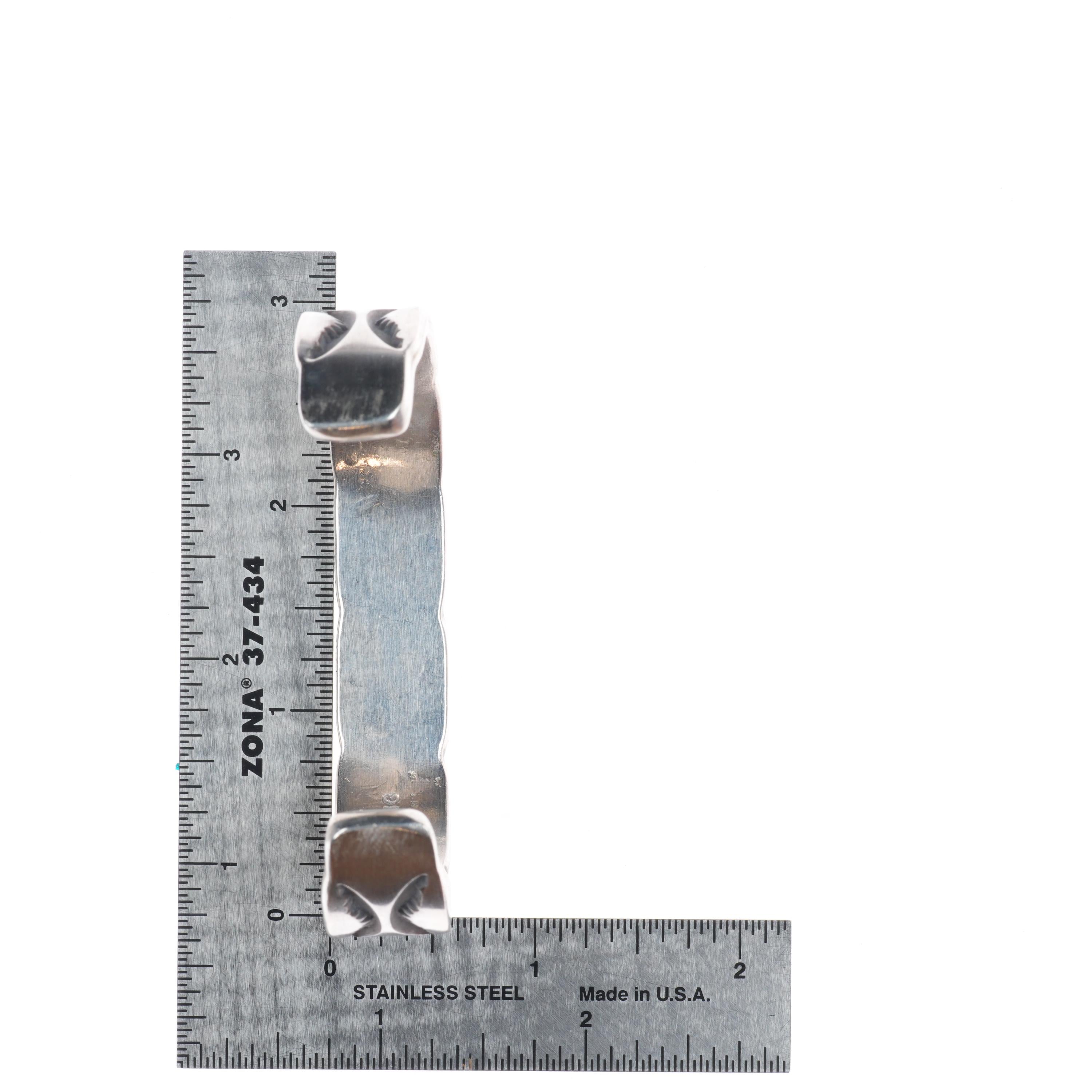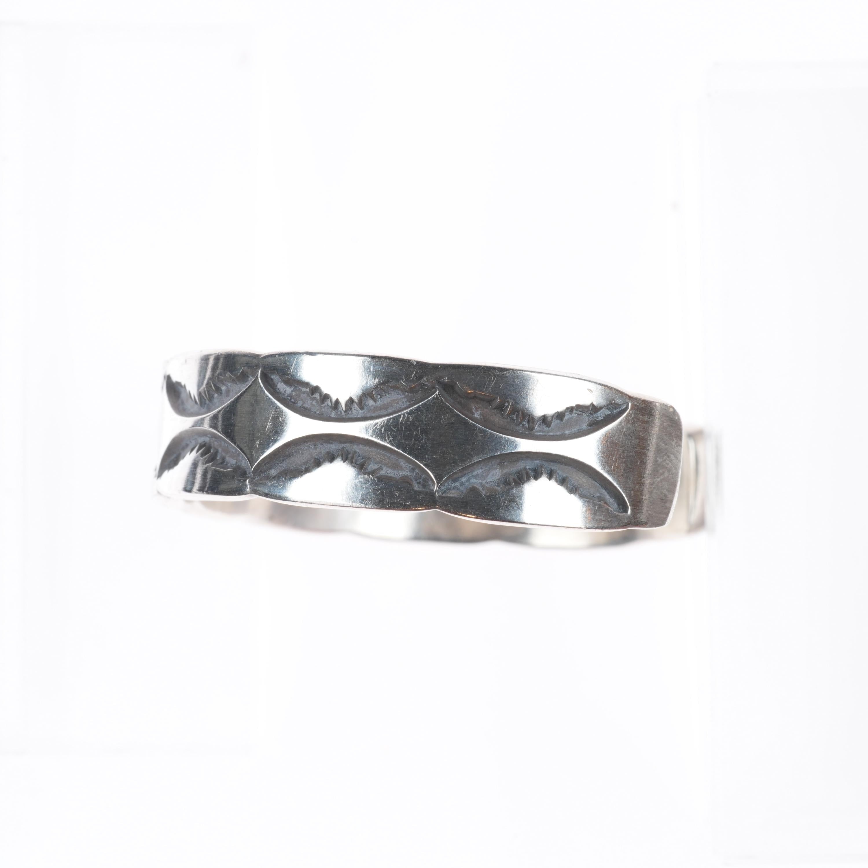 7.25" Nora Tahe Navajo sterling silver deep stamped heavy gauge cuff bracelet Tested and guaranteed solid sterling silver with weight and measurements in pictures. Illegible hallmark, likely Navajo made. Circa last quarter of the 20th century with some expected age appropriate wear.