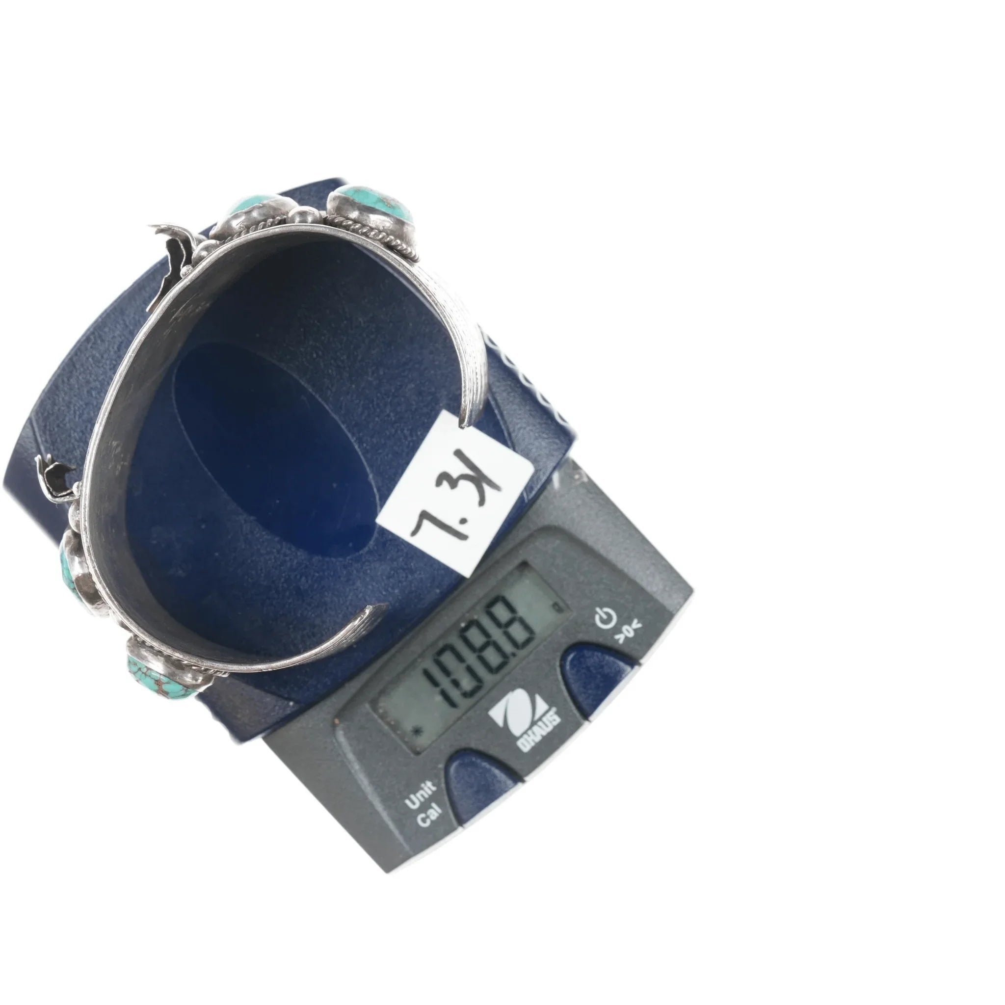 7" 40's-50's Intricately Stamped High Grade turquoise Navajo silver cuff bracelet