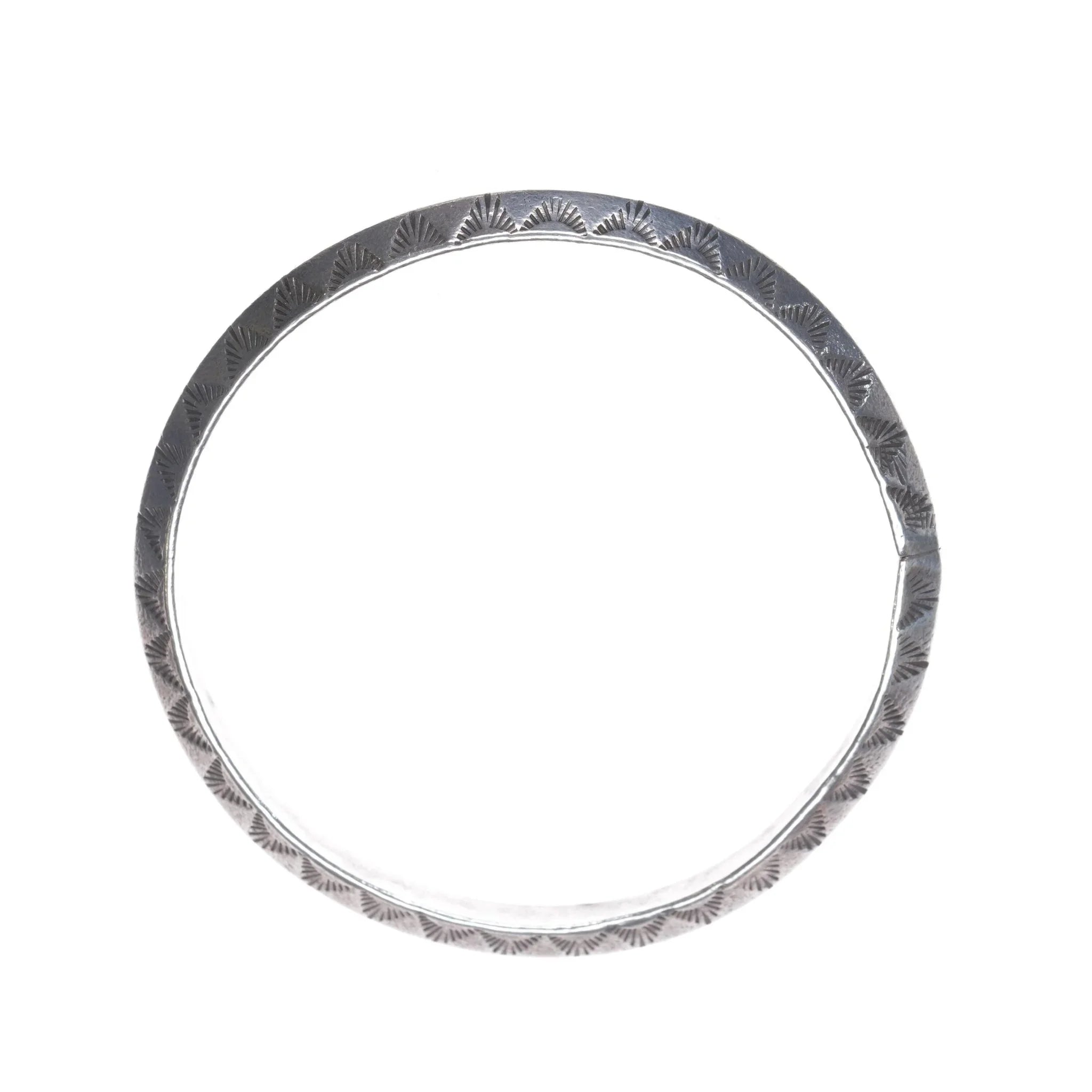 7 5/8" Heavy vintage Navajo carinated silver bangle bracelet. No issues, weight and measurements in pics. Apparently unmarked