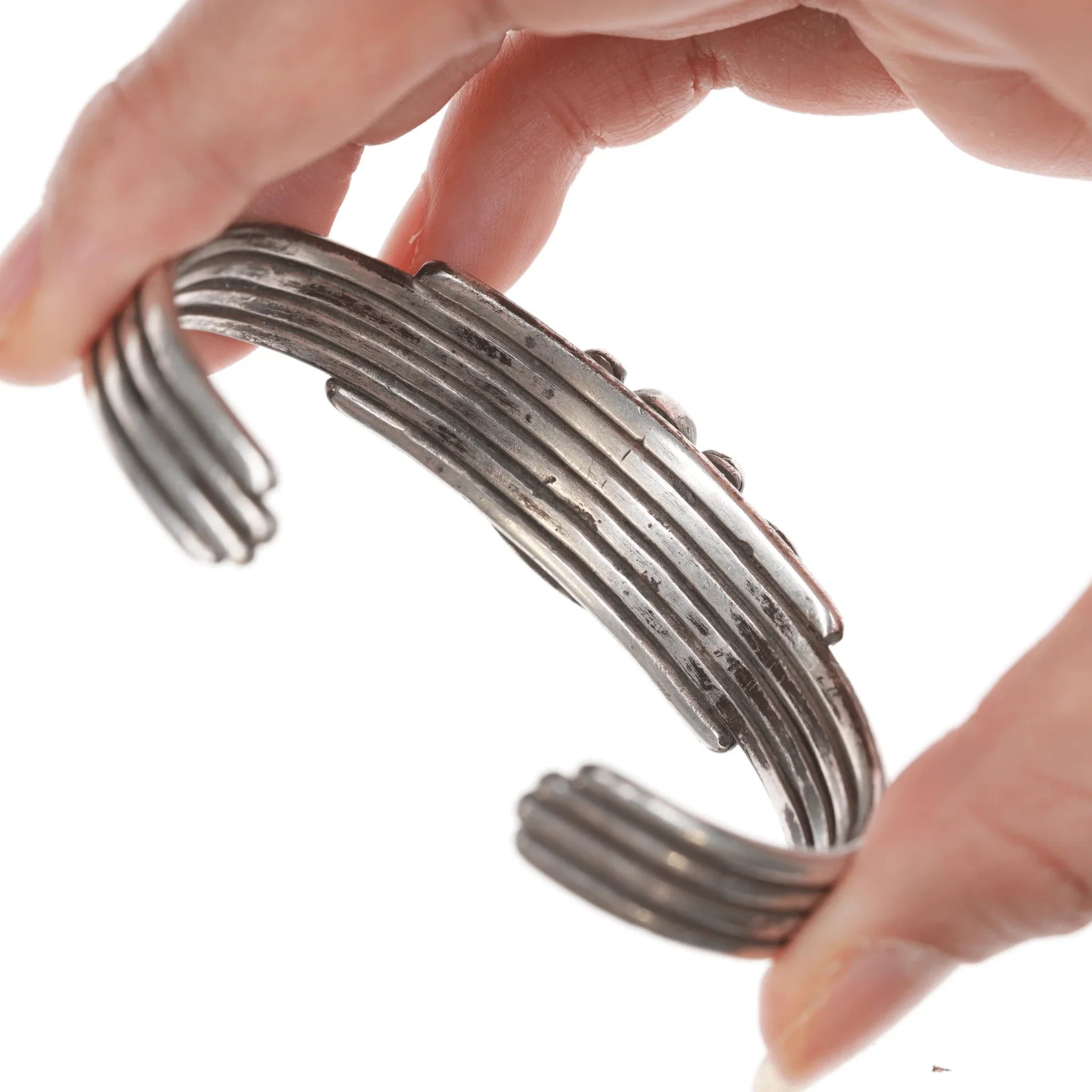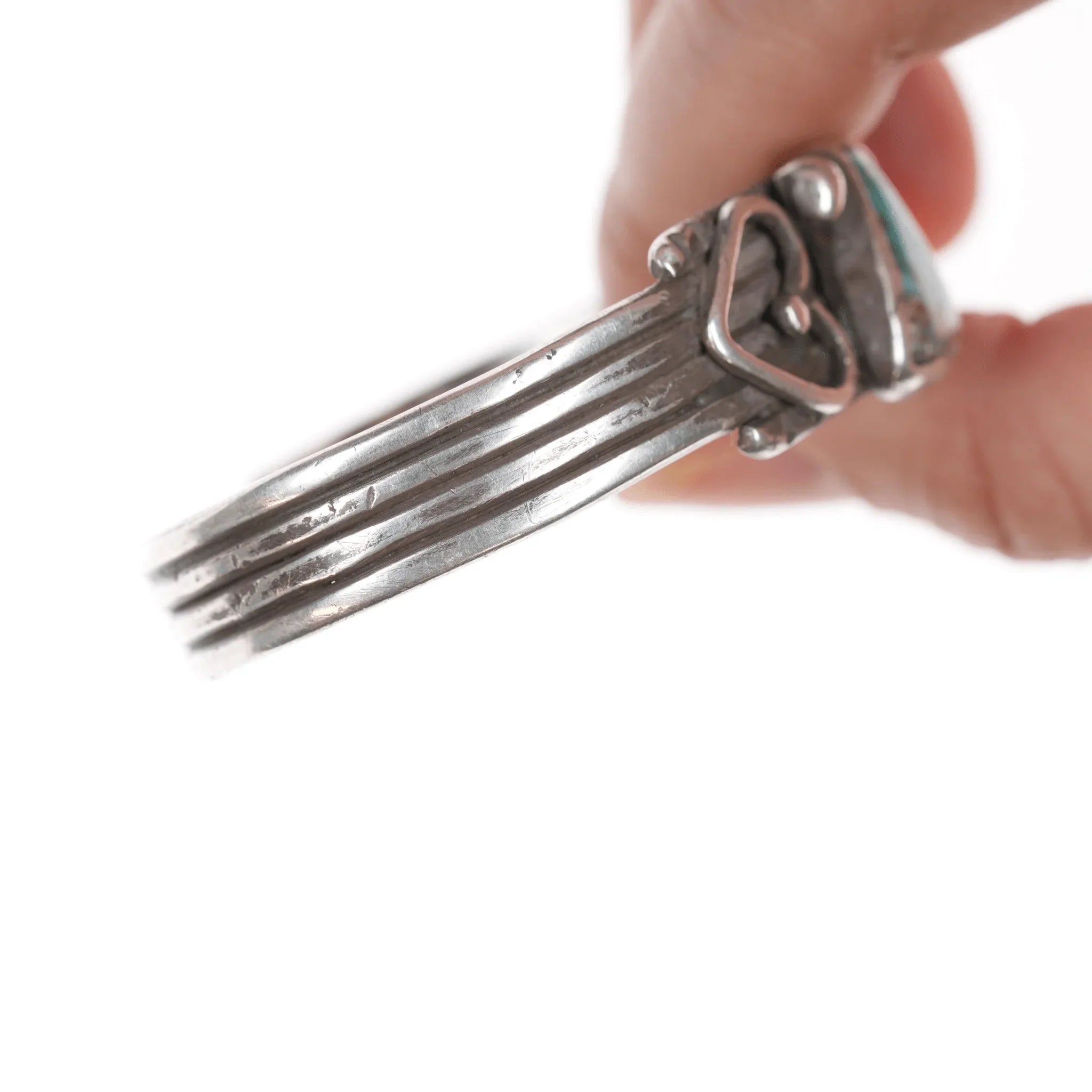 7" c1930's Navajo silver and turquoise hearts cuff bracelet