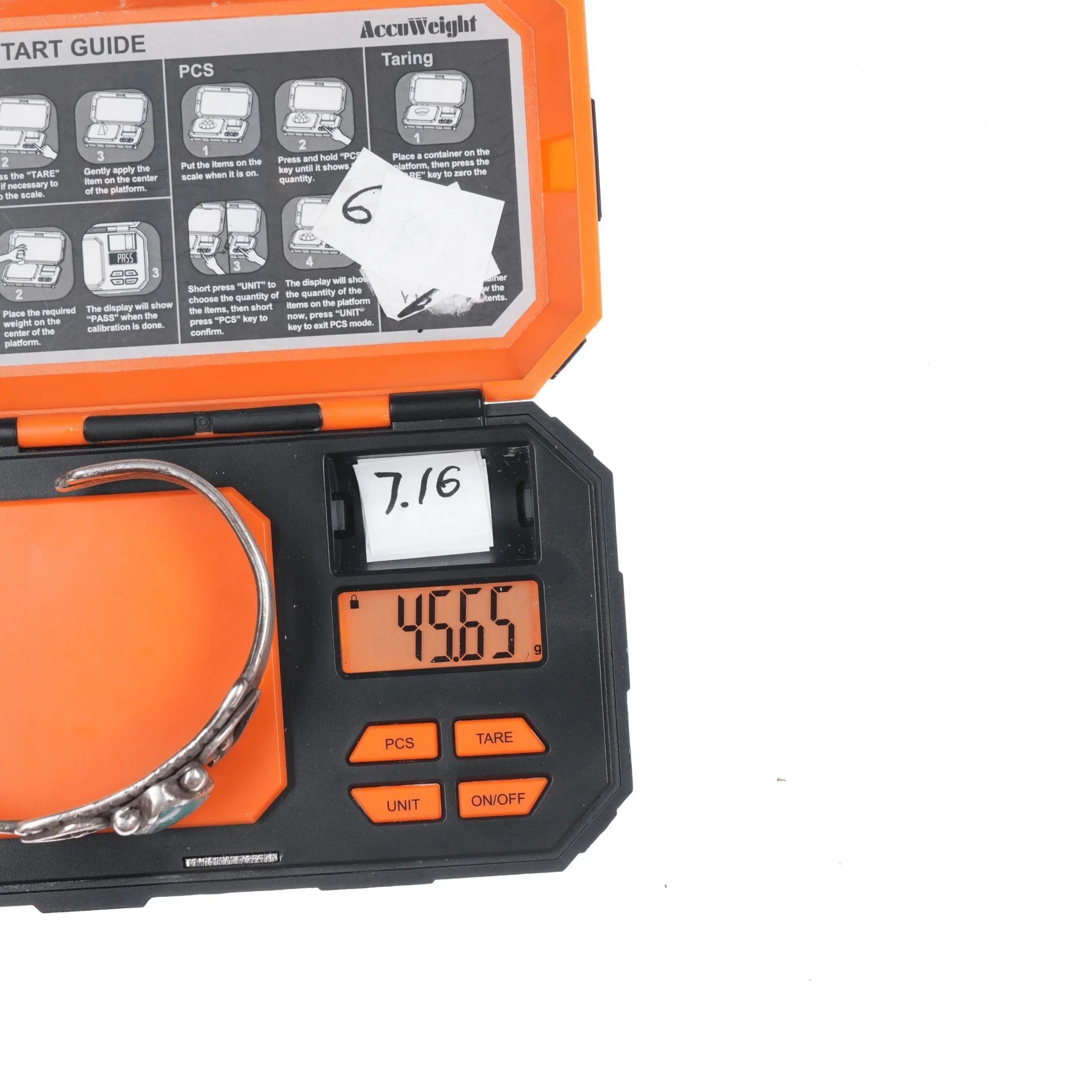 All precious metals are tested and guaranteed. A Native American jewelry piece referred to as "silver" or "ingot" is guaranteed to be at least 90% silver. I rarely use the word "sterling" when referring to older Native American silver or really any older silver jewelry as silver contents vary and "sterling" is 92.5% silver. No older jewelry is going to be exactly 92.5% silver, some a little over, some a little under. It wasn't an exact thing with handmade jewelry. I've seen thousands of pieces xrf'd to prove this. Bracelets are photographed on a 6" women's wrist.