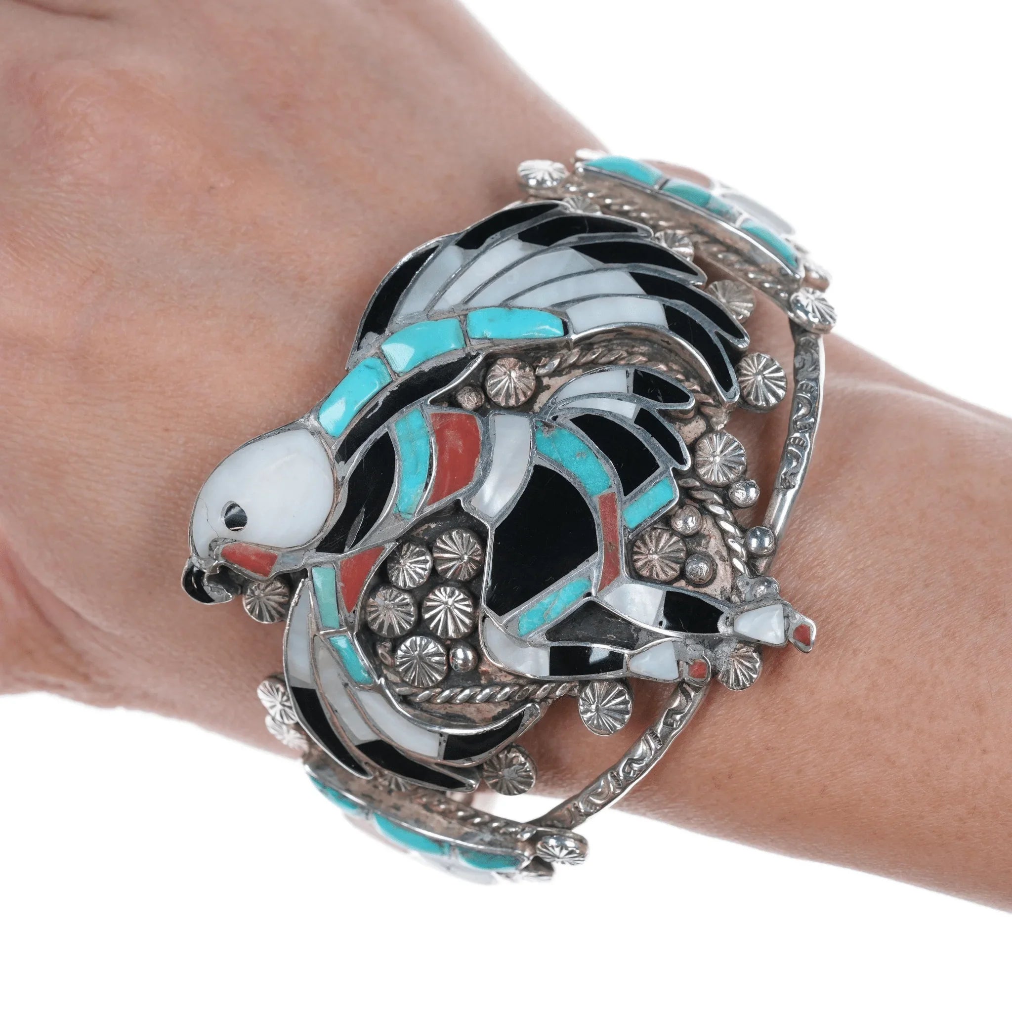 7" John Lucio Zuni Eagle Dancer Channel inlay silver cuff bracelet.<br><br> Marked or unmarked as shown in pics, weight and other measurements in pics. Sorry but my jewelry is stored in a secure location and cannot be accessed for more pictures,<br>videos, or measurements until sold. If you look at pictures/description your<br>question should be answered. Thank you so much for your time and consideration!<br><br>All precious metals are tested and guaranteed. A Native American jewelry piece referred to as "silver" or "ingot" is guaranteed to be at least 90% silver. Bracelets are photographed on a 6" women's wrist.