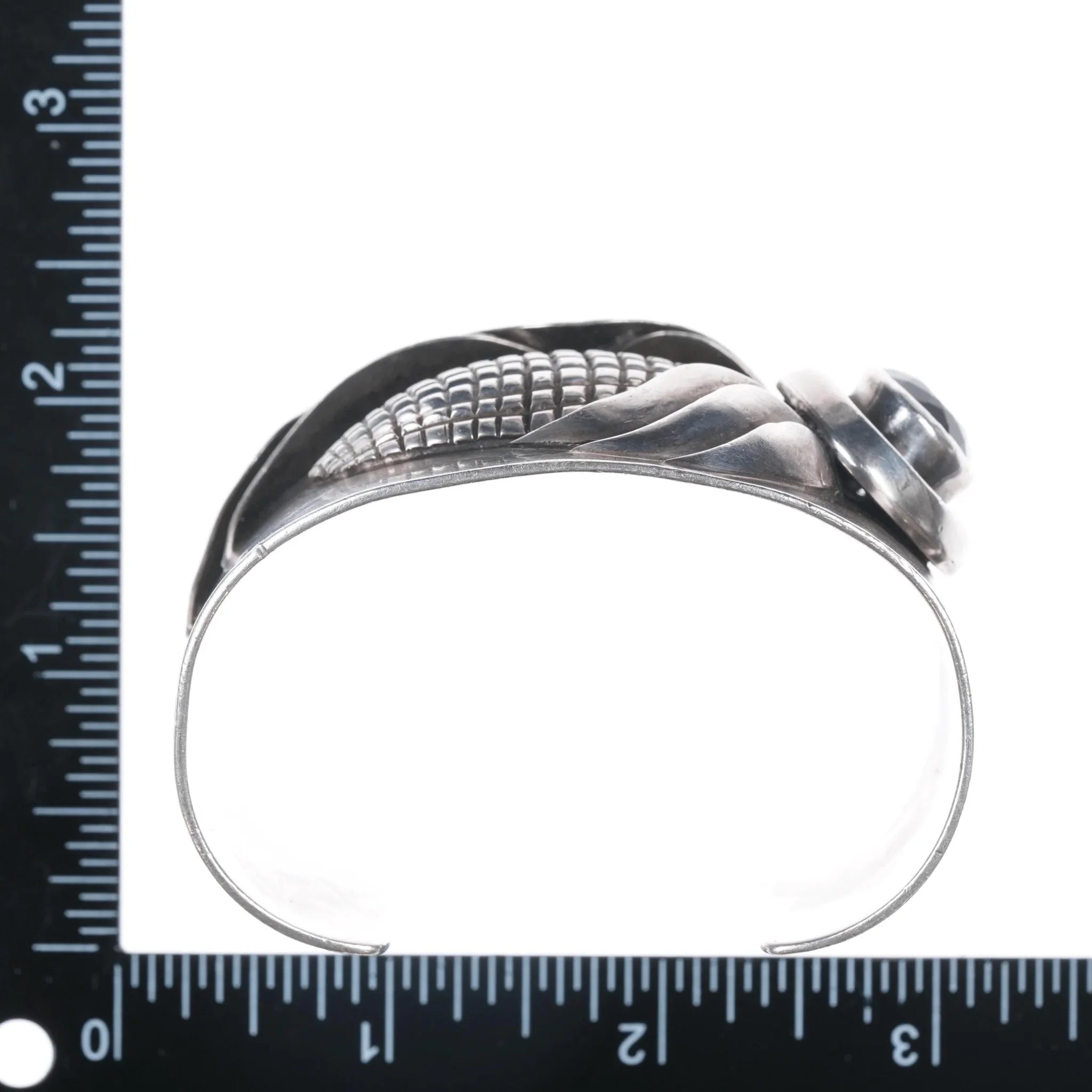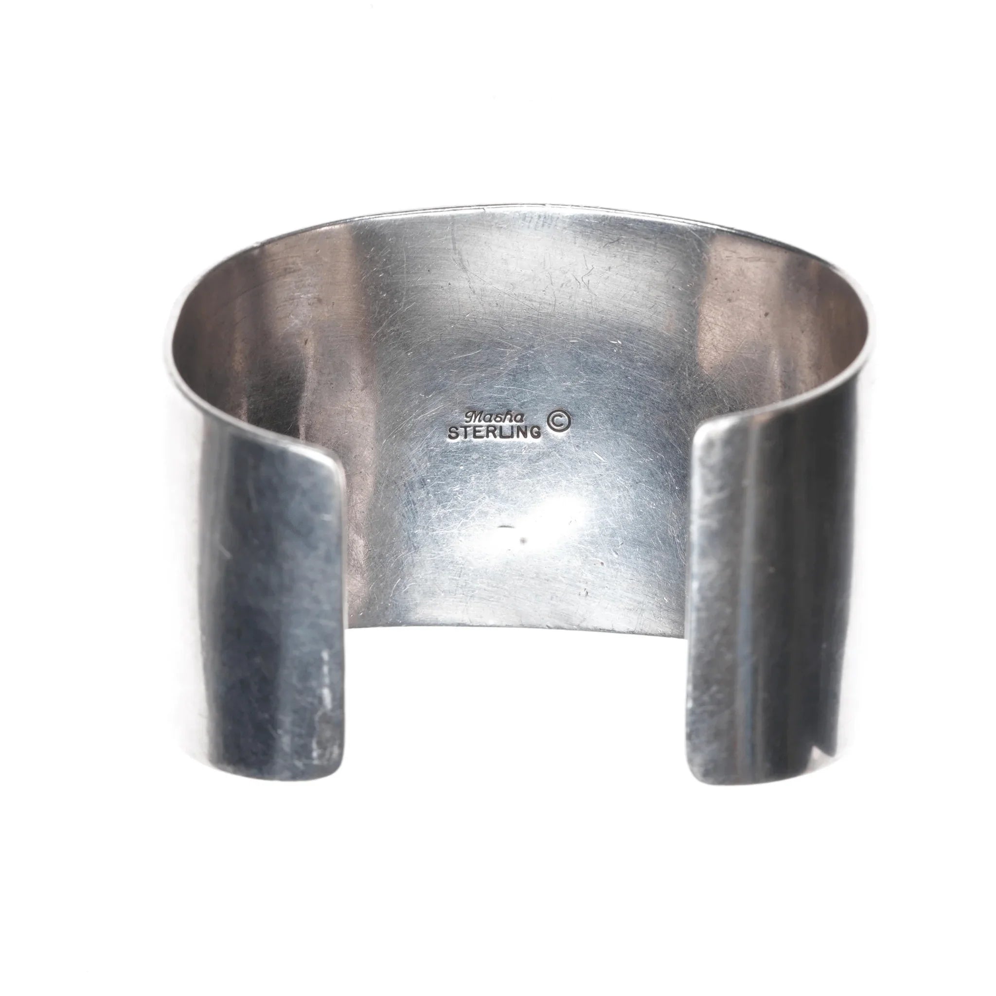 7" Masha Native American sterling corn cuff bracelet with amethyst. No issues, no damage to stone, some expected overall wear but in good vintage condition. Weight and measurements in pics. Masha sells Native American made jewelry under their brand from what I could tell by looking at their website. Here's some info below from their website.