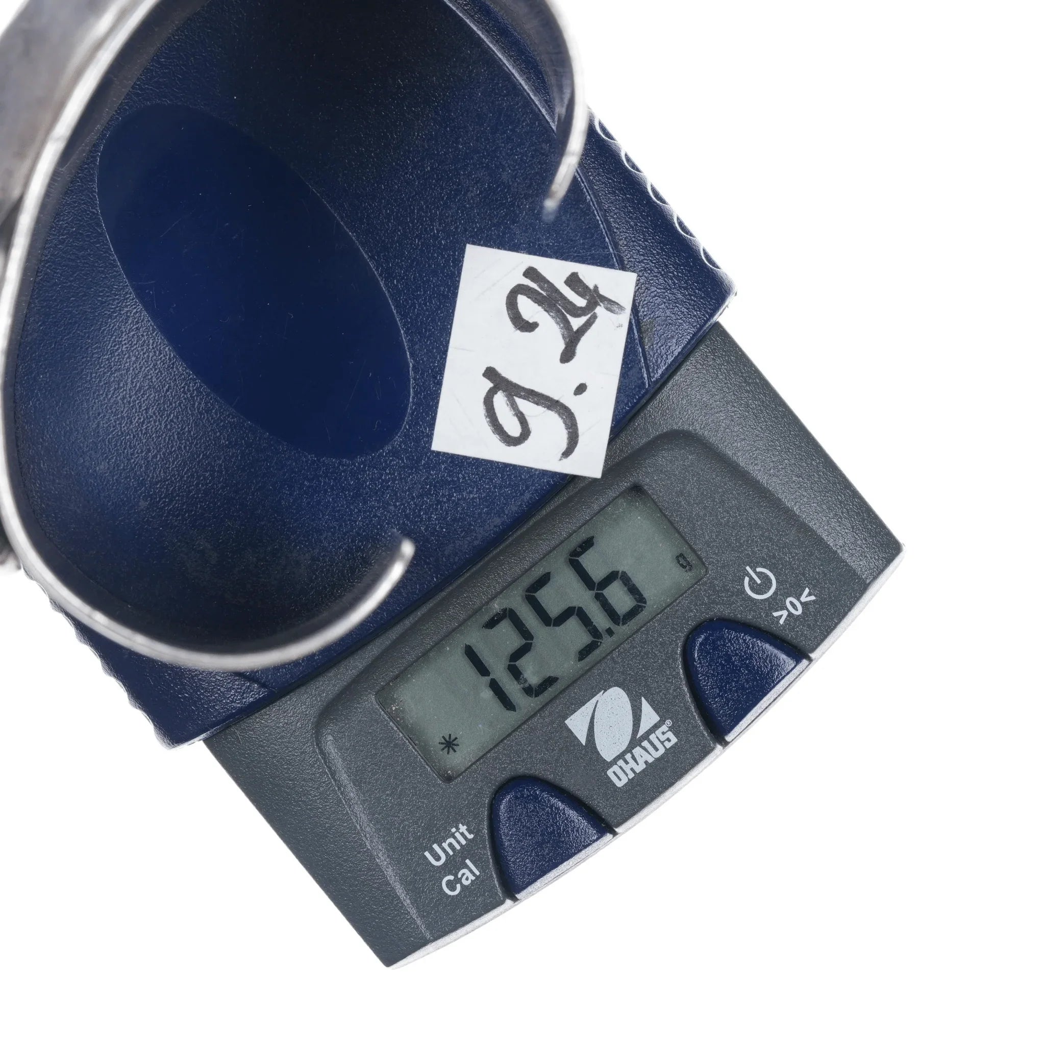 All precious metals are tested and guaranteed, any Native American jewelry<br>referred to as Silver or Sterling is guaranteed to be a minimum of 90% (coin) silver and possibly higher content. Anything marked is guaranteed to be what<br>i.t's marked, most bracelets are photographed on a 6" wrist (non hairy), rings<br>photographed on the appropriate sized finger when possible. With bracelets if<br>the measurement is not given in the description then inside circumference is<br>shown where the metal meets the number on the the cloth tape measure.