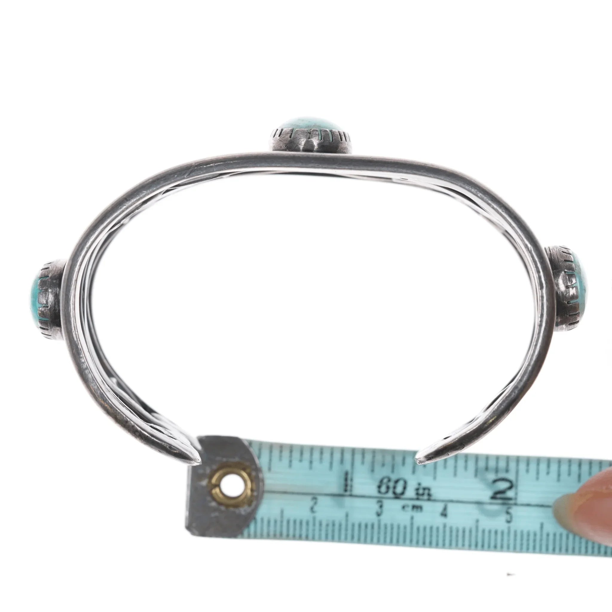 7" Vintage Native American silver twisted wire cuff bracelet with turquoise, no identifying marks.
