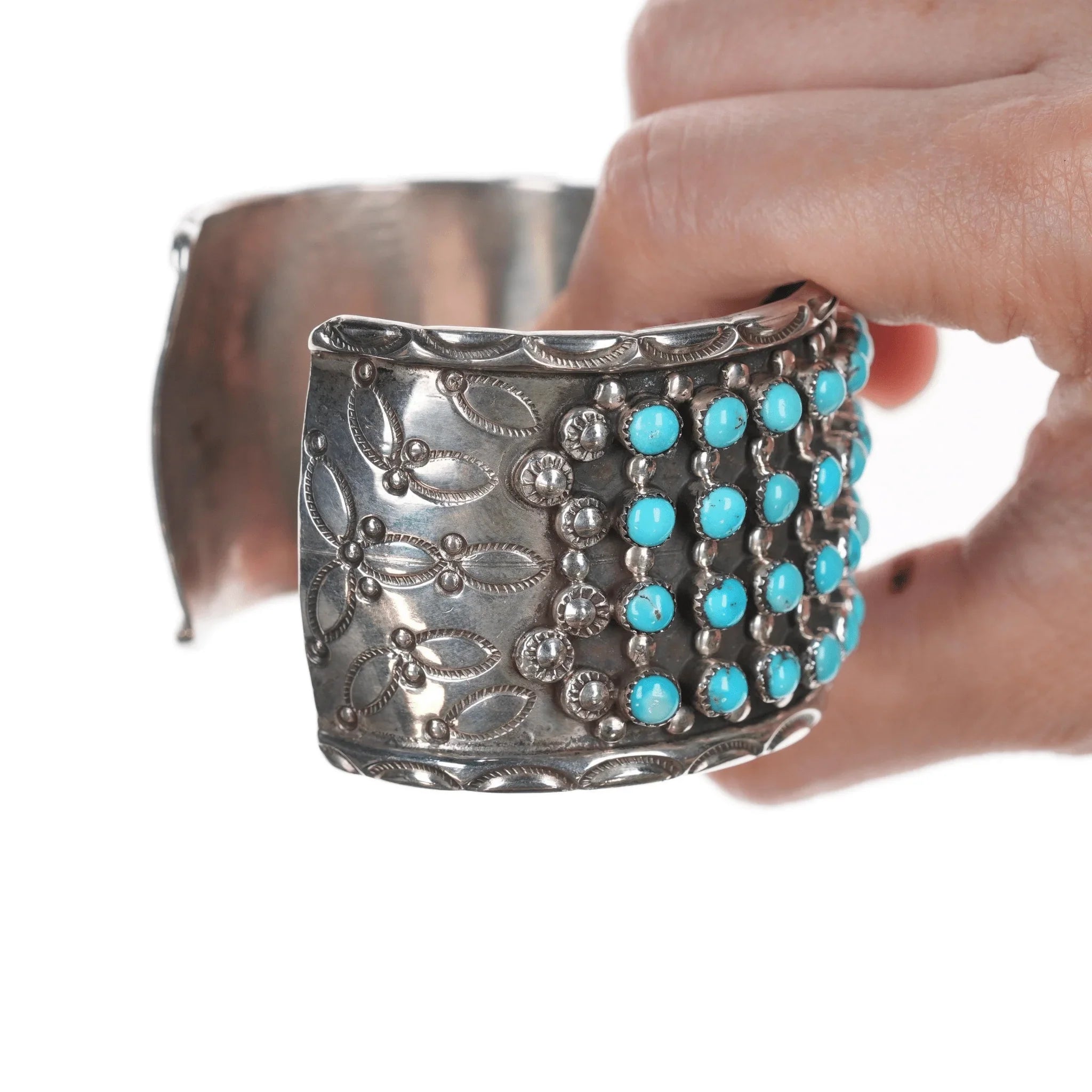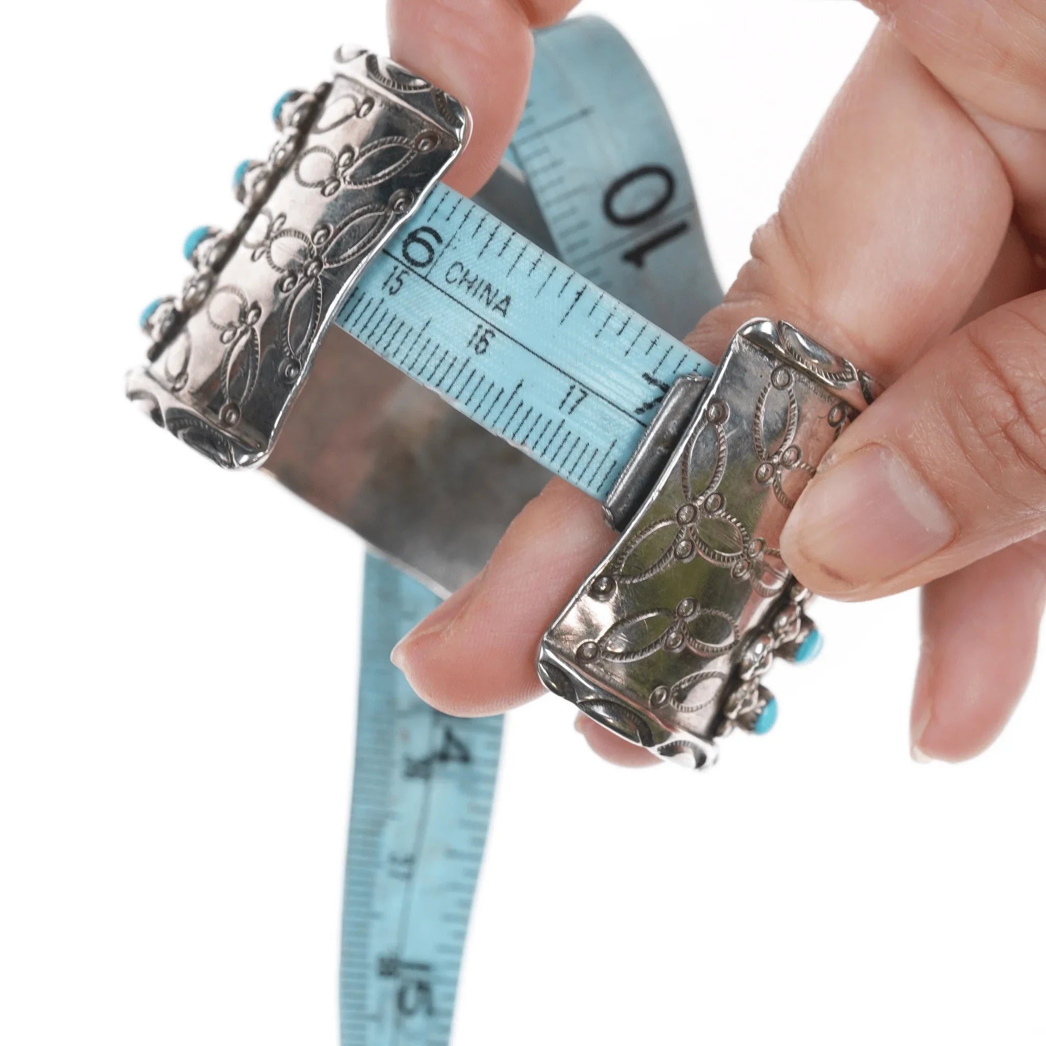 7" Vintage Native American Snake Eye Turquosie silver cuff bracelet with stamped sides.<br><br> Marked or unmarked as shown in pics, weight and other measurements in pics. Sorry but my jewelry is stored in a secure location and cannot be accessed for more pictures,<br>videos, or measurements until sold. If you look at pictures/description your<br>question should be answered. Thank you so much for your time and consideration!<br><br>All precious metals are tested and guaranteed. A Native American jewelry piece referred to as "silver" or "ingot" is guaranteed to be at least 90% silver. Bracelets are photographed on a 6" women's wrist.