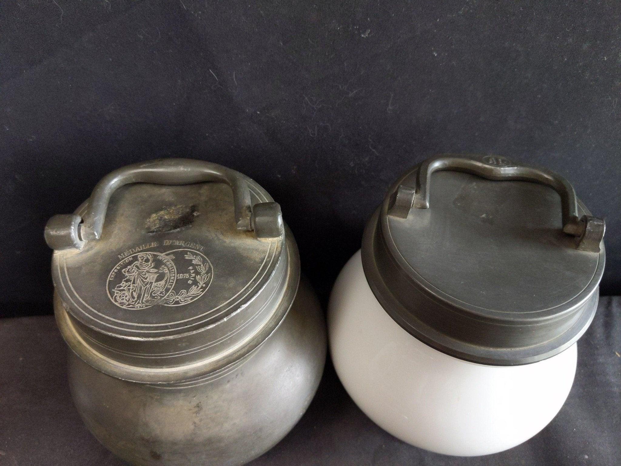 Antique French pewter Sustenteur Medical Apothecary Jars for Sterilization