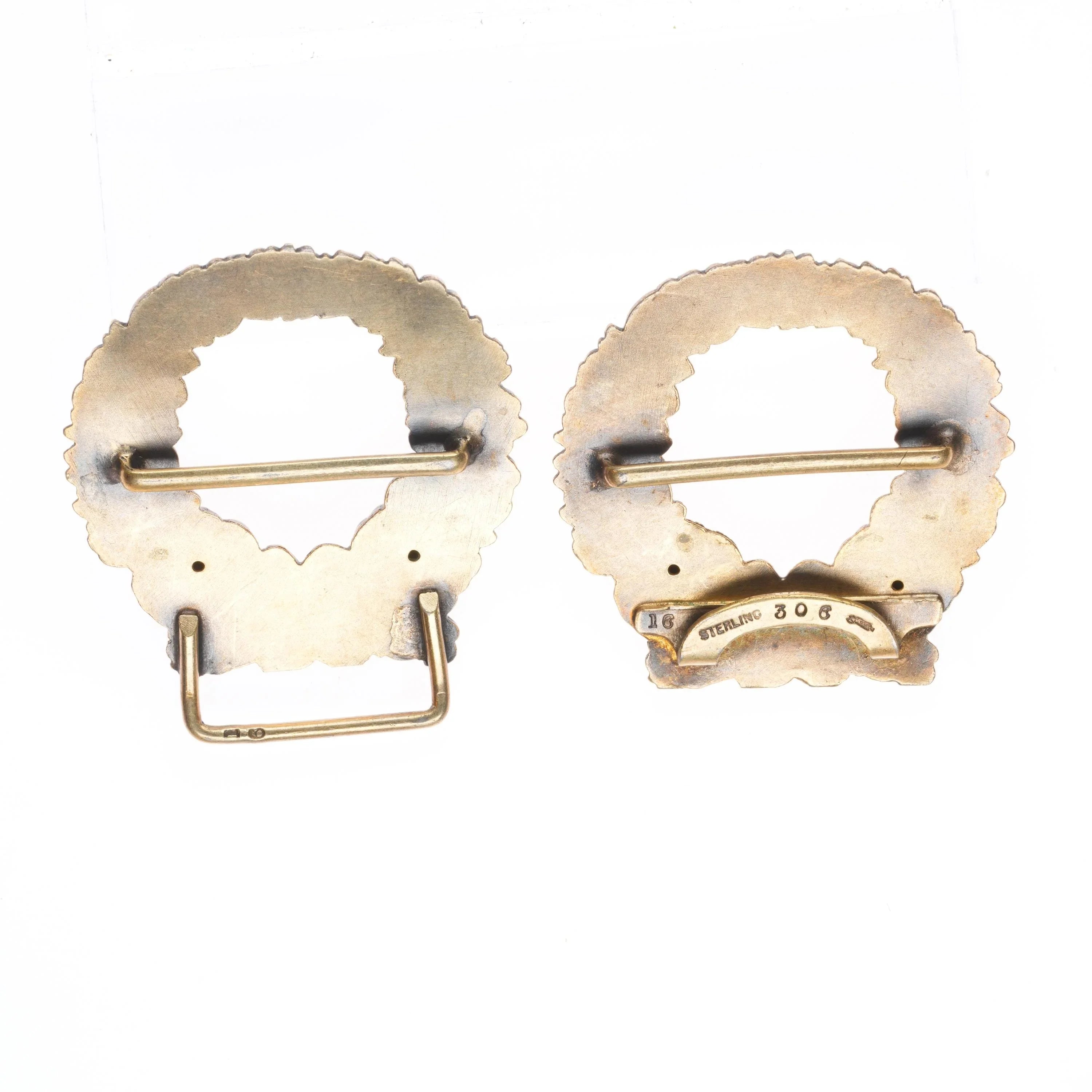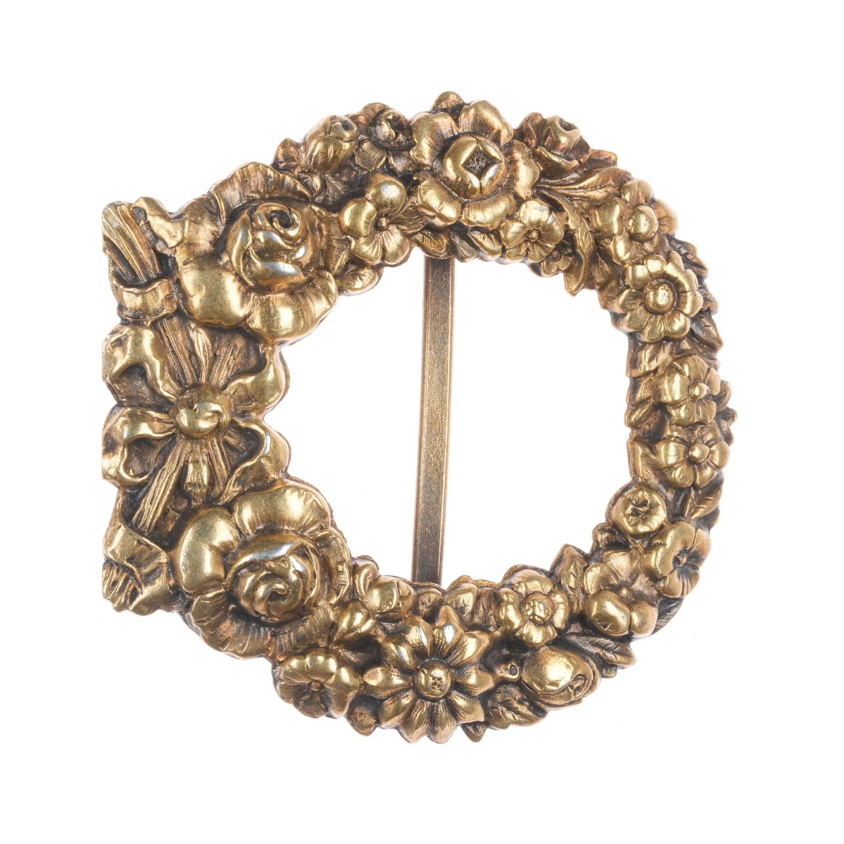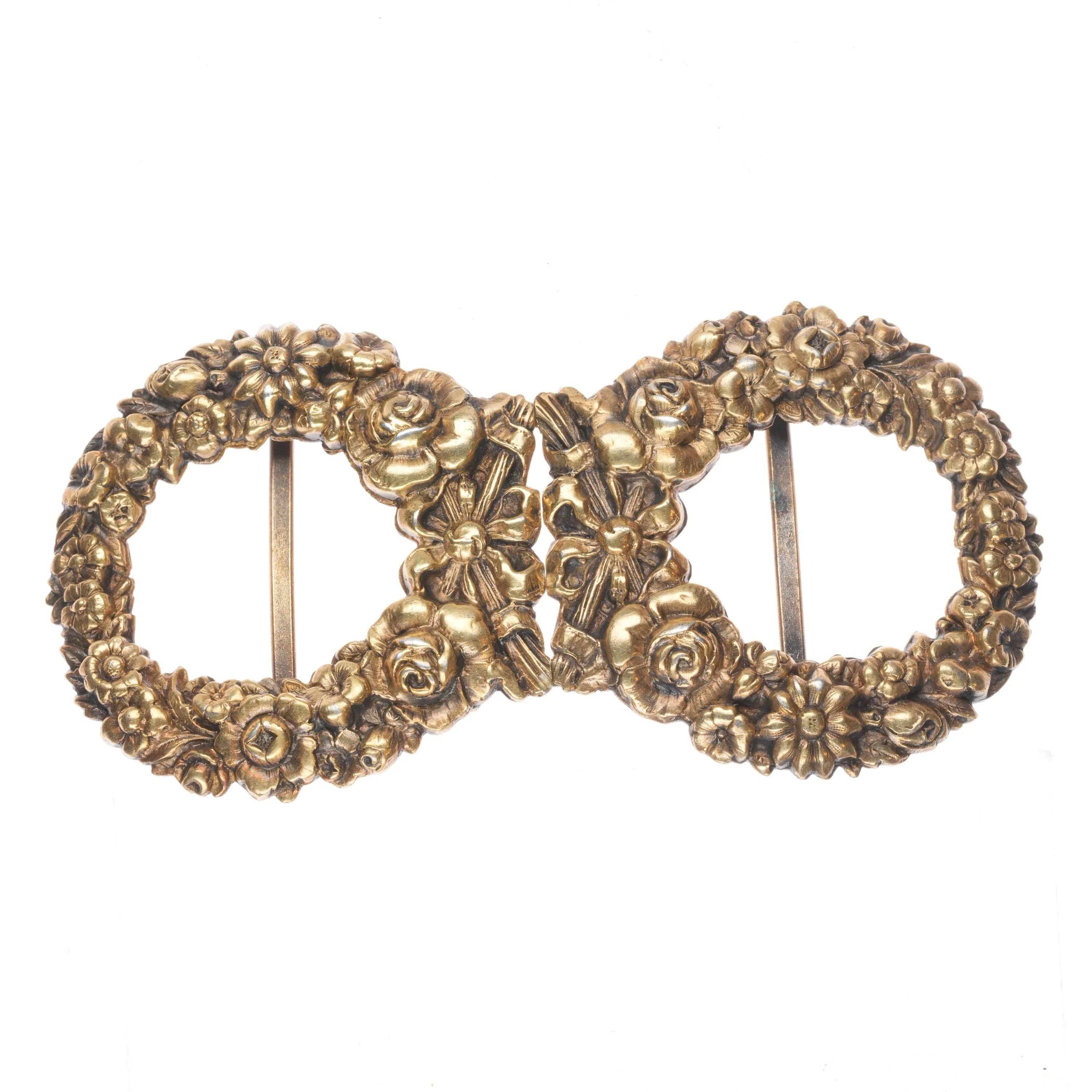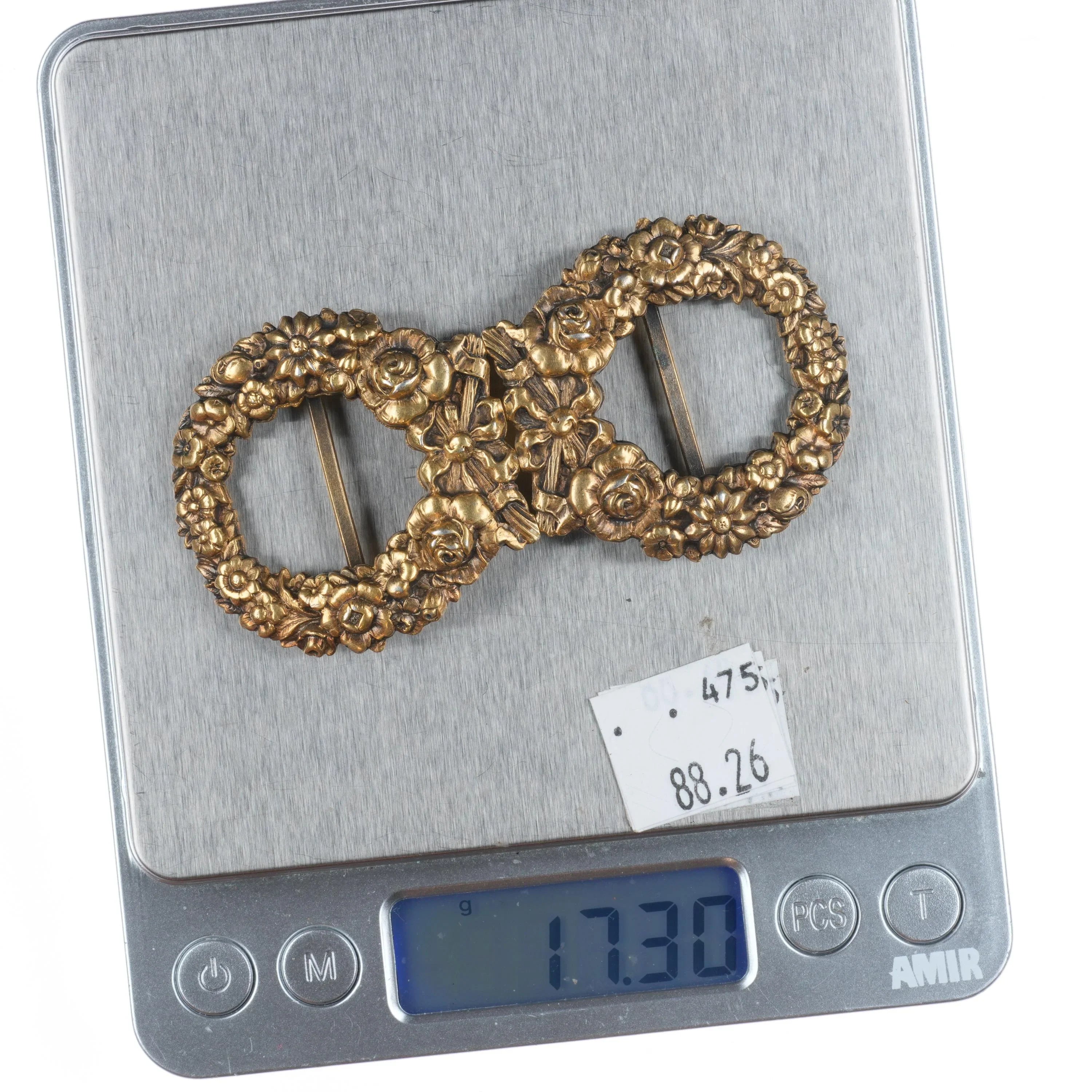 Antique William Kerr gilt sterling silver repousse wreath belt buckle 2 piece