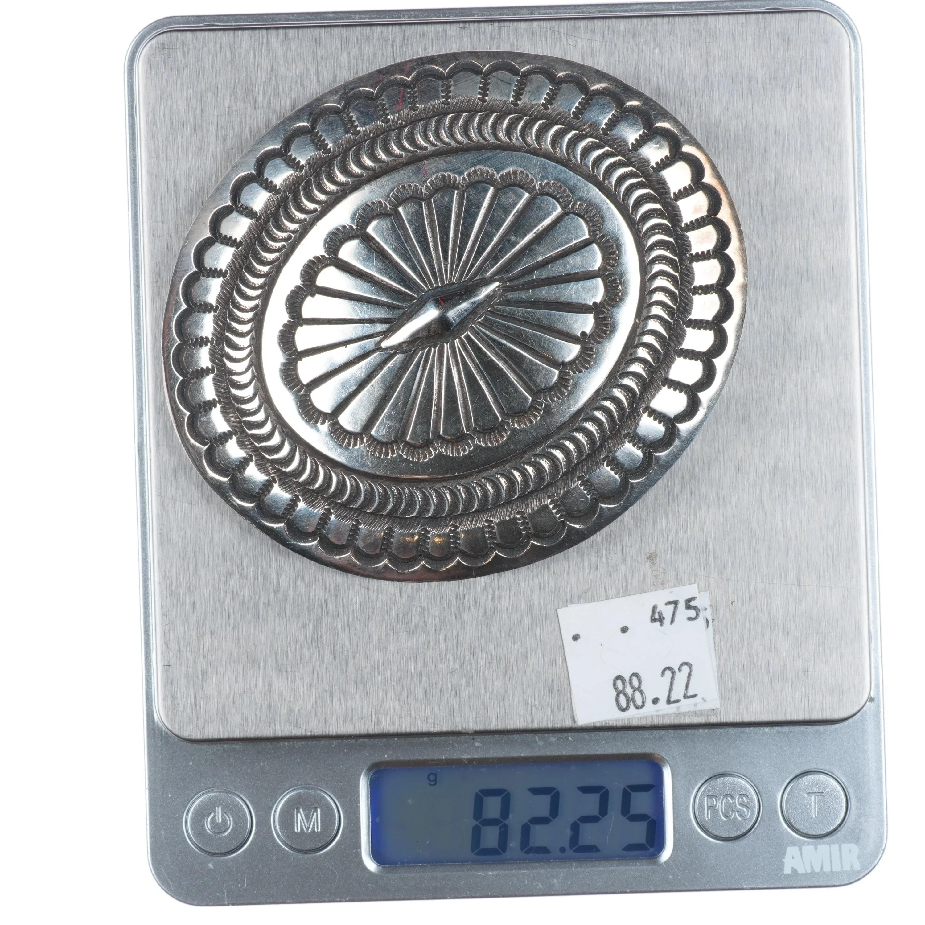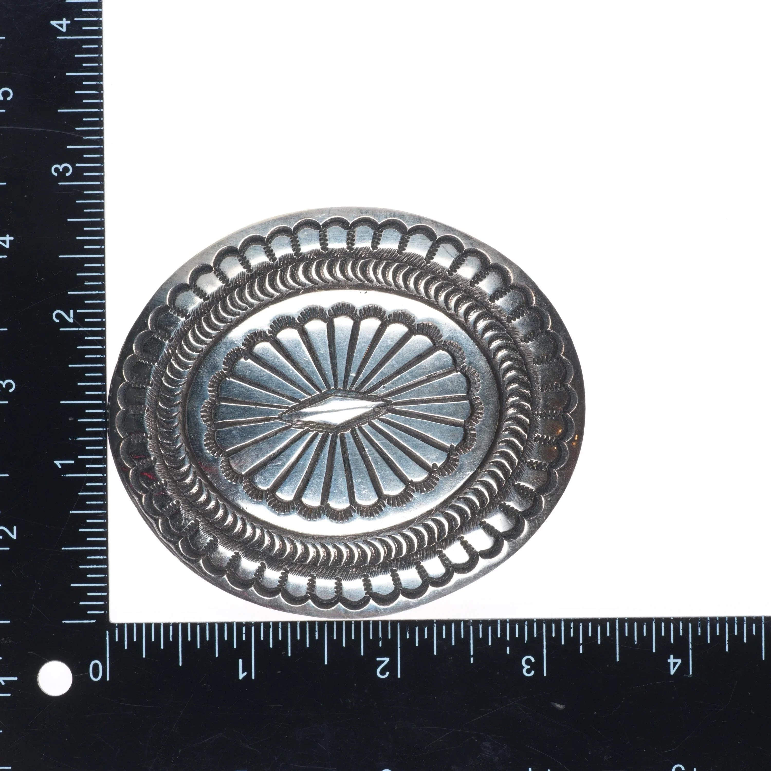 Arnold Maloney Navajo vintage deep stamped sterling silver concho belt buckle