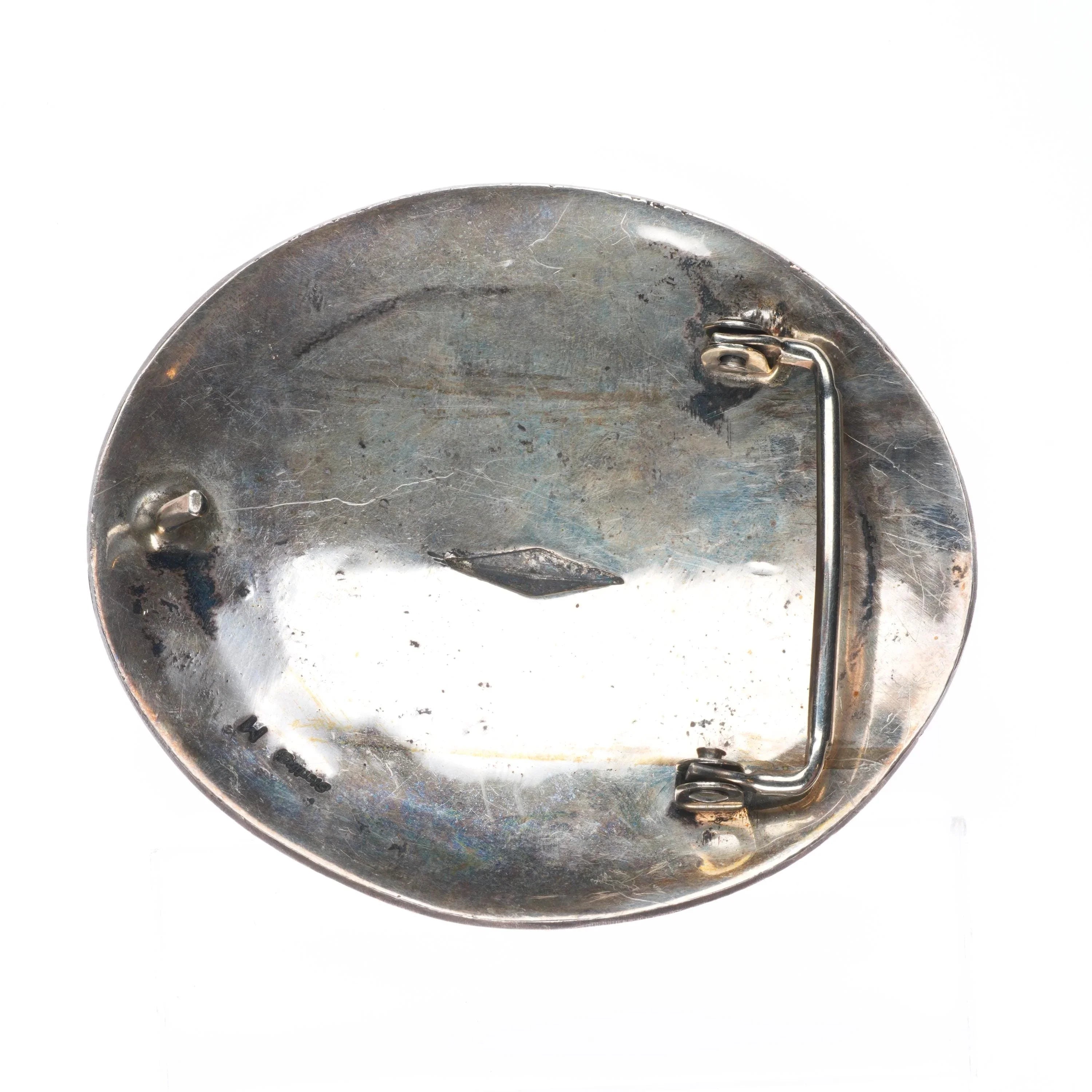 Arnold Maloney Navajo vintage deep stamped sterling silver concho belt buckle. Tested and guaranteed solid sterling silver, fits up to a 1.5" wide belt. Weight and measurements in pictures, circa last quarter of the 20th century.