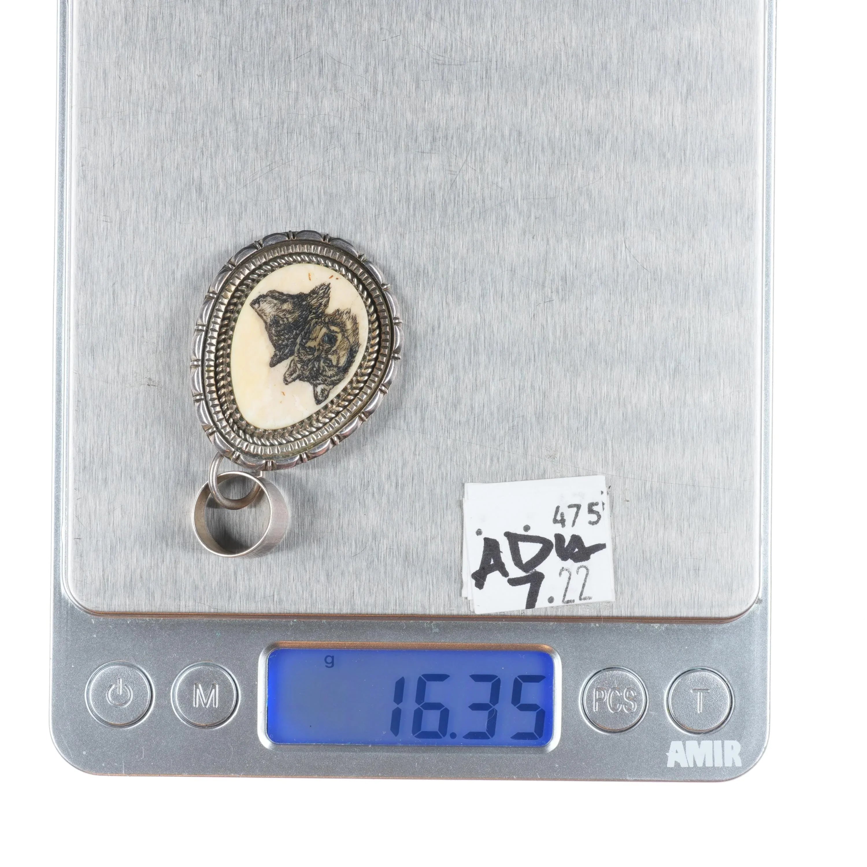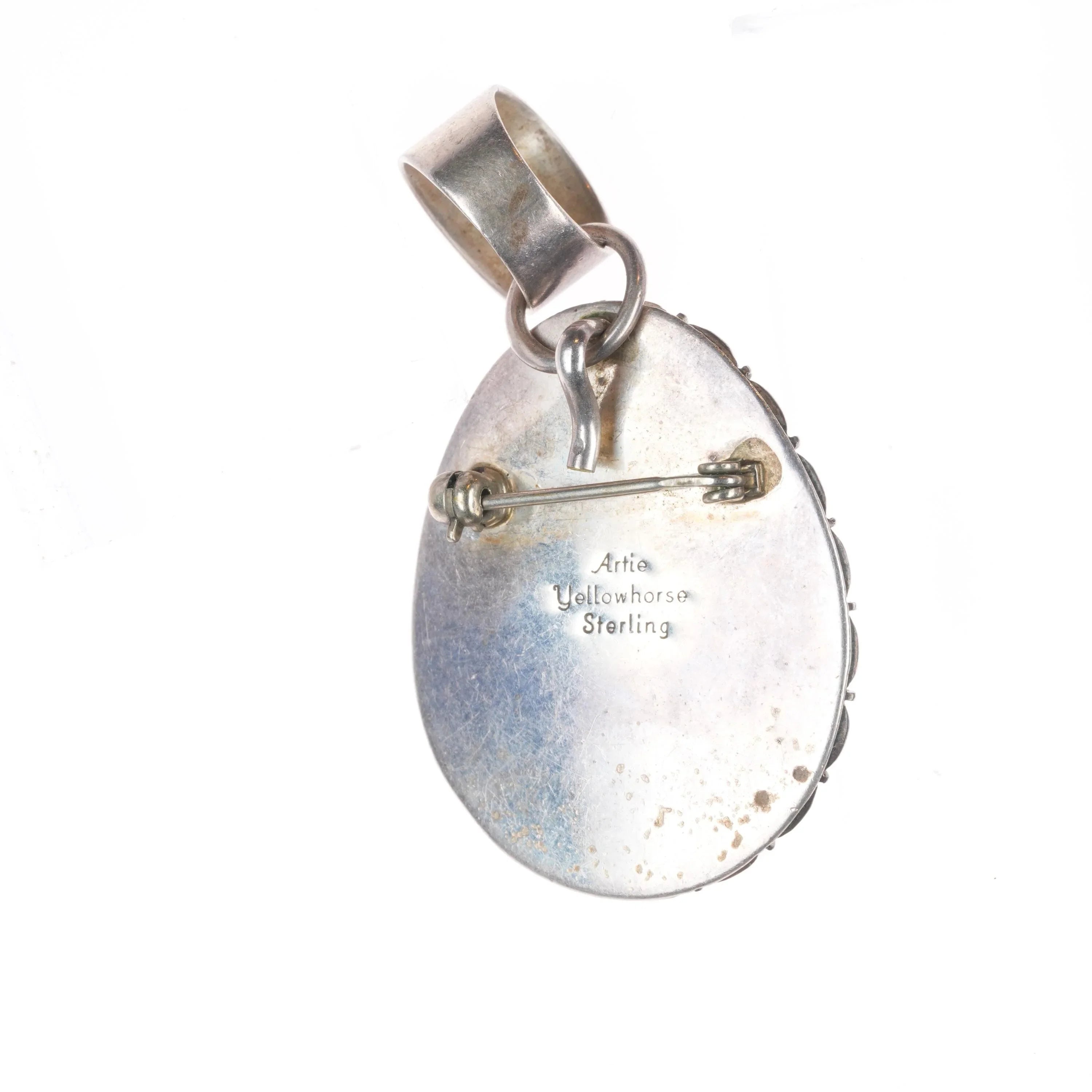 Artie Yellowhorse Navajo sterling silver hand carved wolves pendant/pin