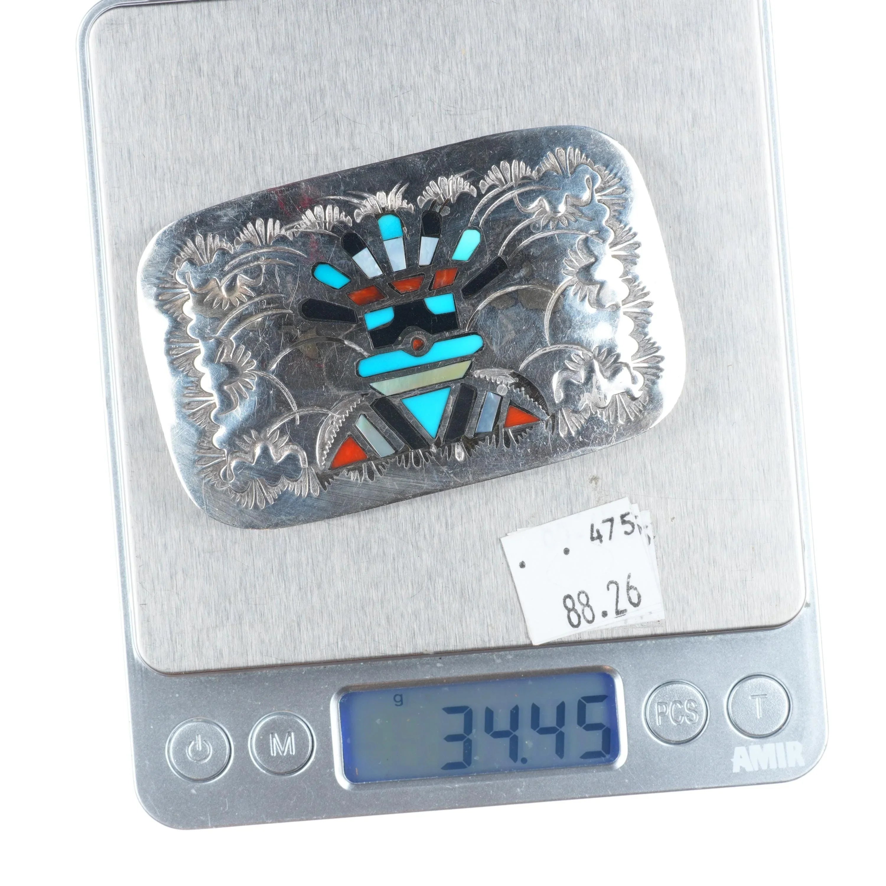 Benjamin Becenti Navajo sterling silver channel inlay Kachina belt buckle