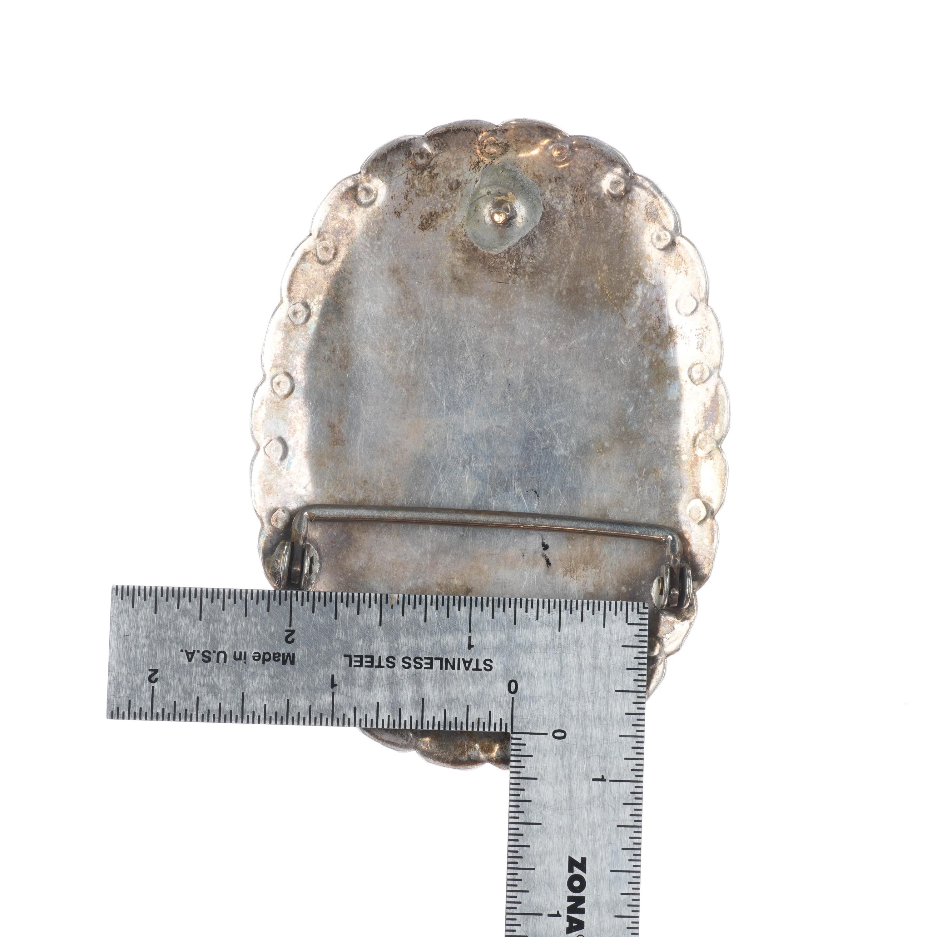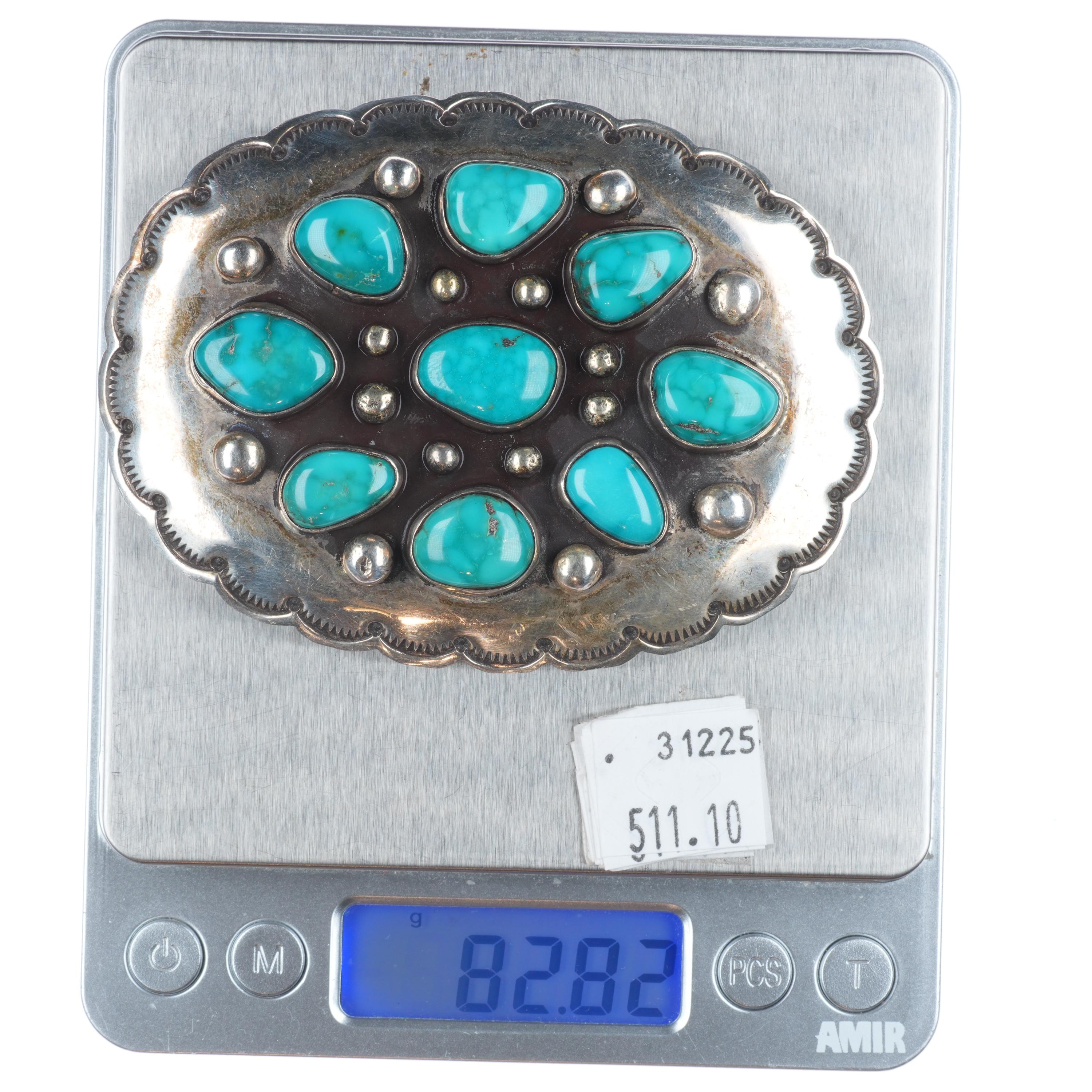 Big Vintage Navajo sterling silver high grade turquoise cluster belt buckle