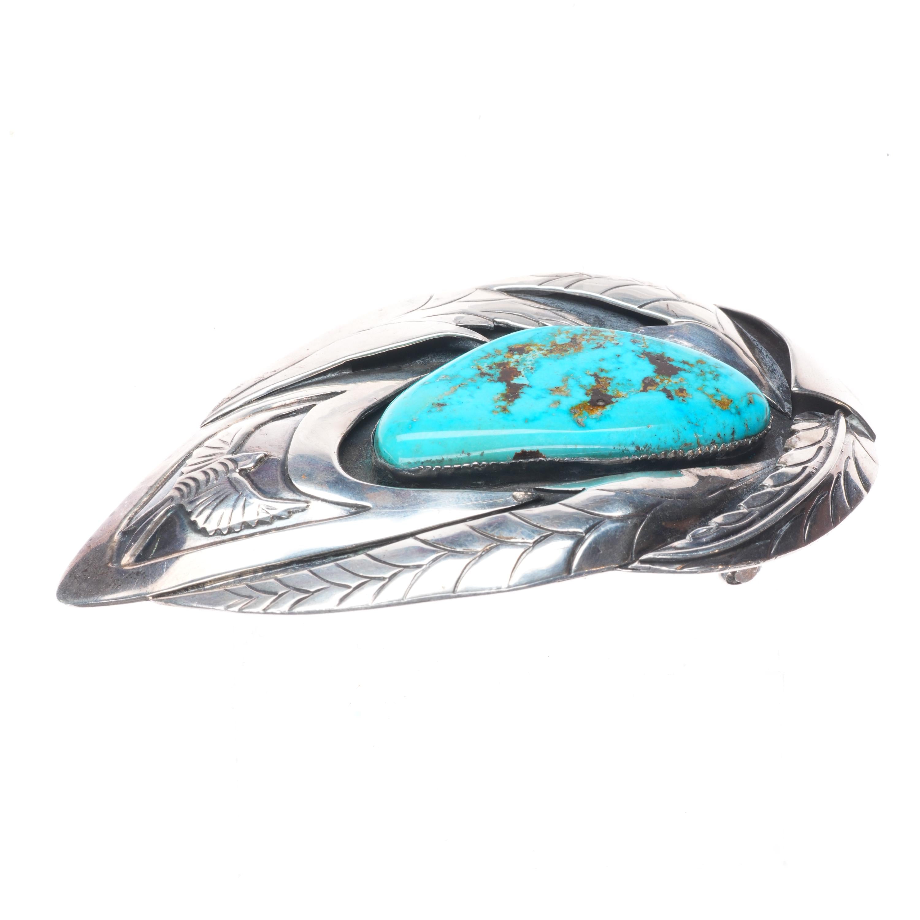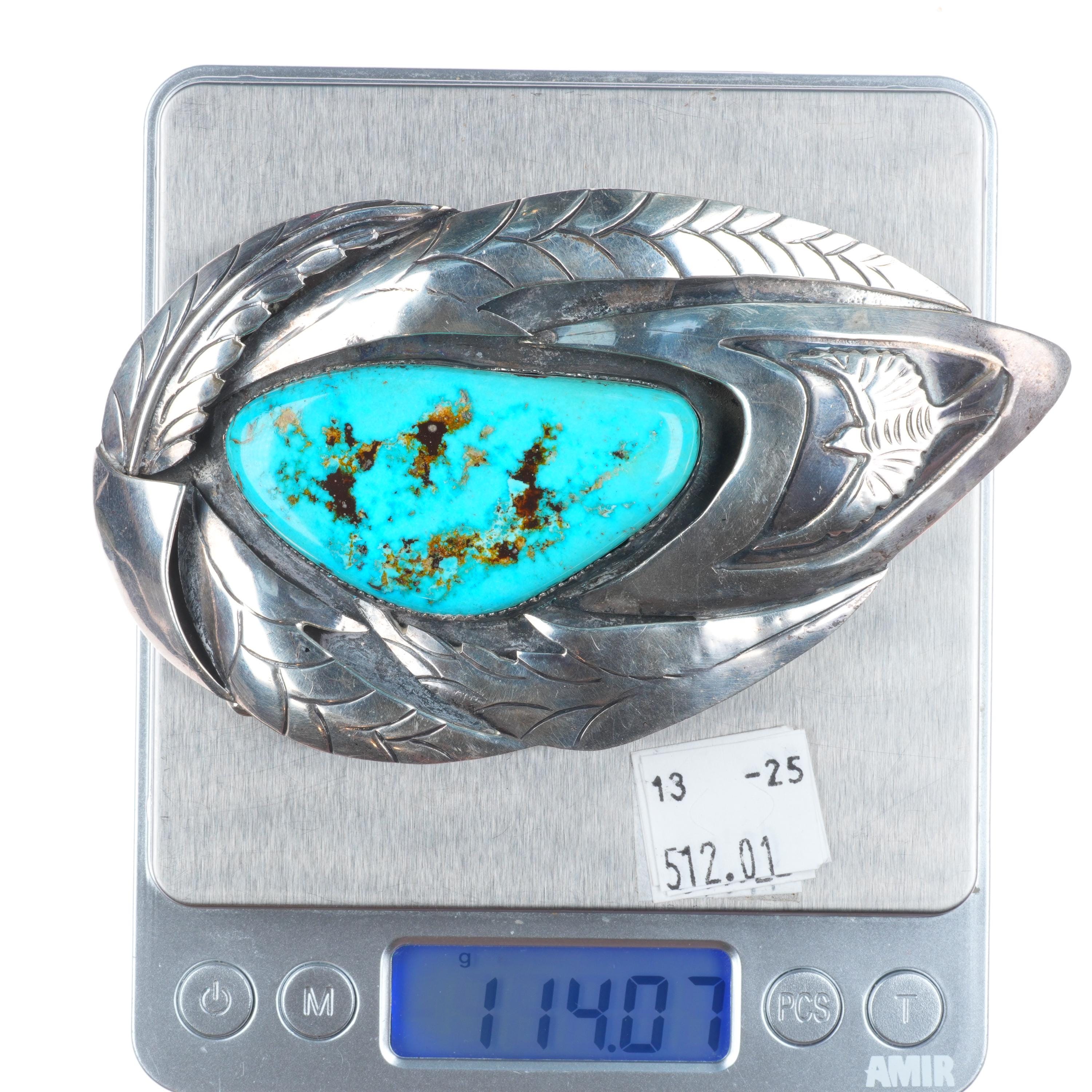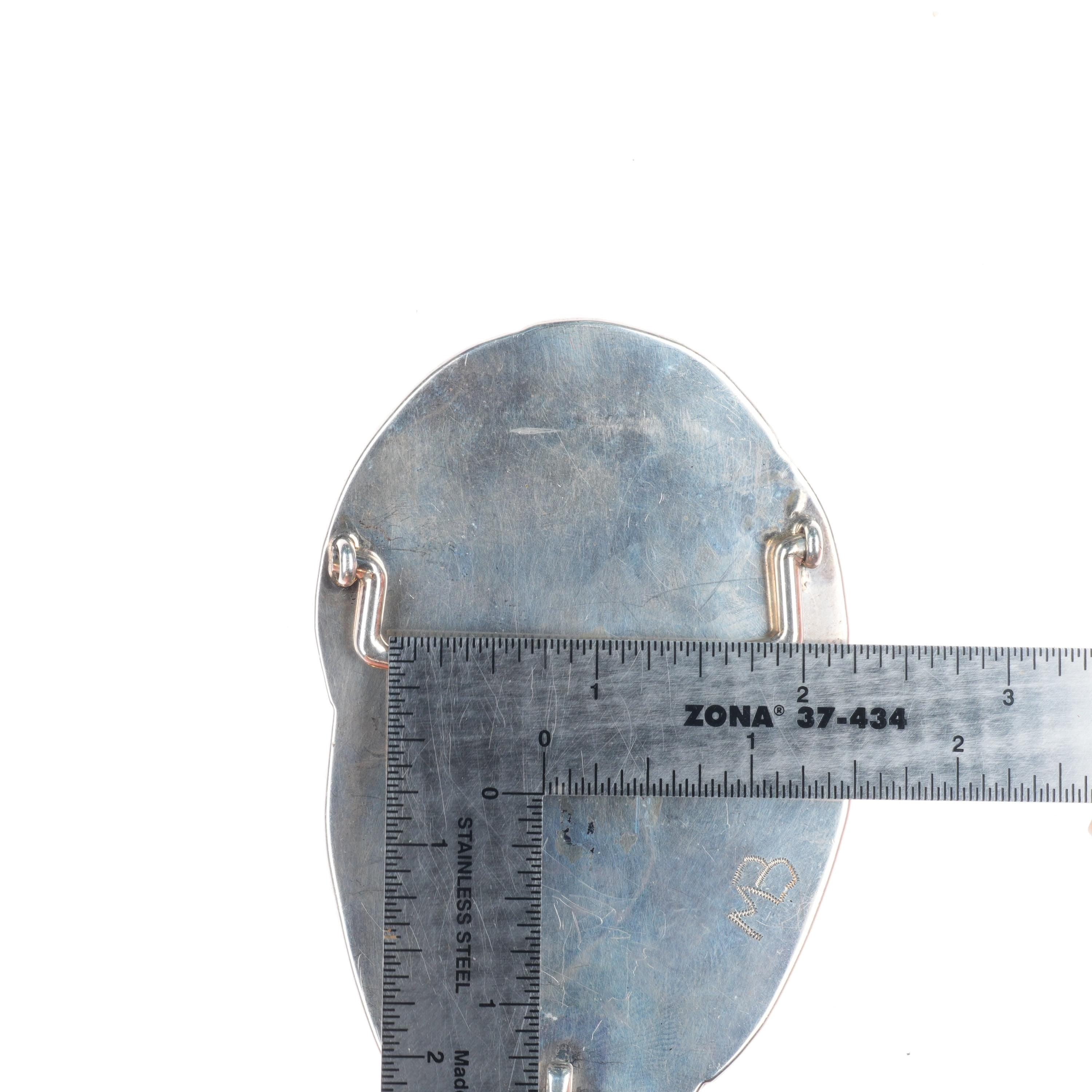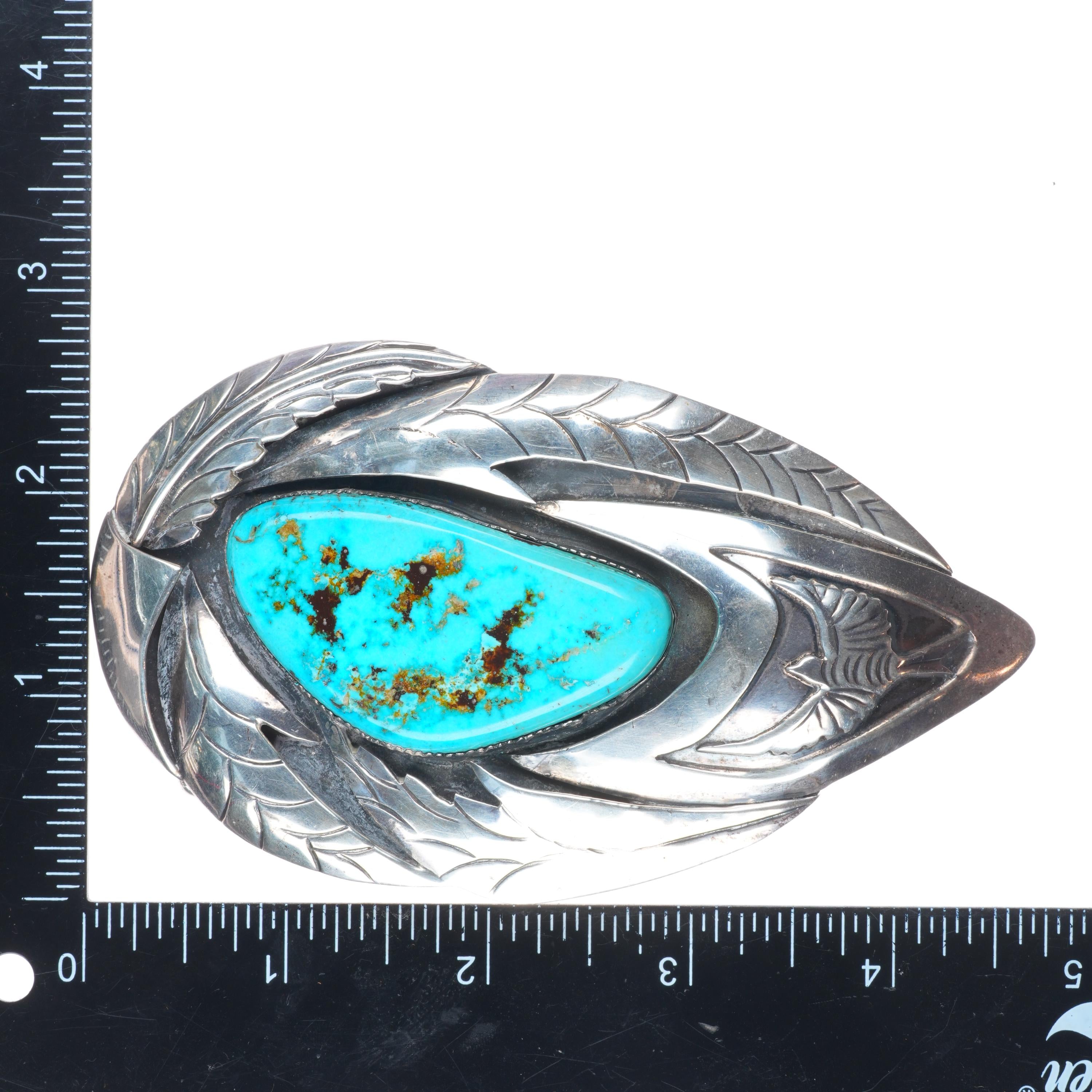 Big Vintage Navajo sterling silver shadowbox belt buckle feather accents. Tested and guaranteed solid sterling silver weight and measurements in pictures, Circa third quarter of the 20th century. Fits a 1.75" belt. Functional with age appropriate wear.