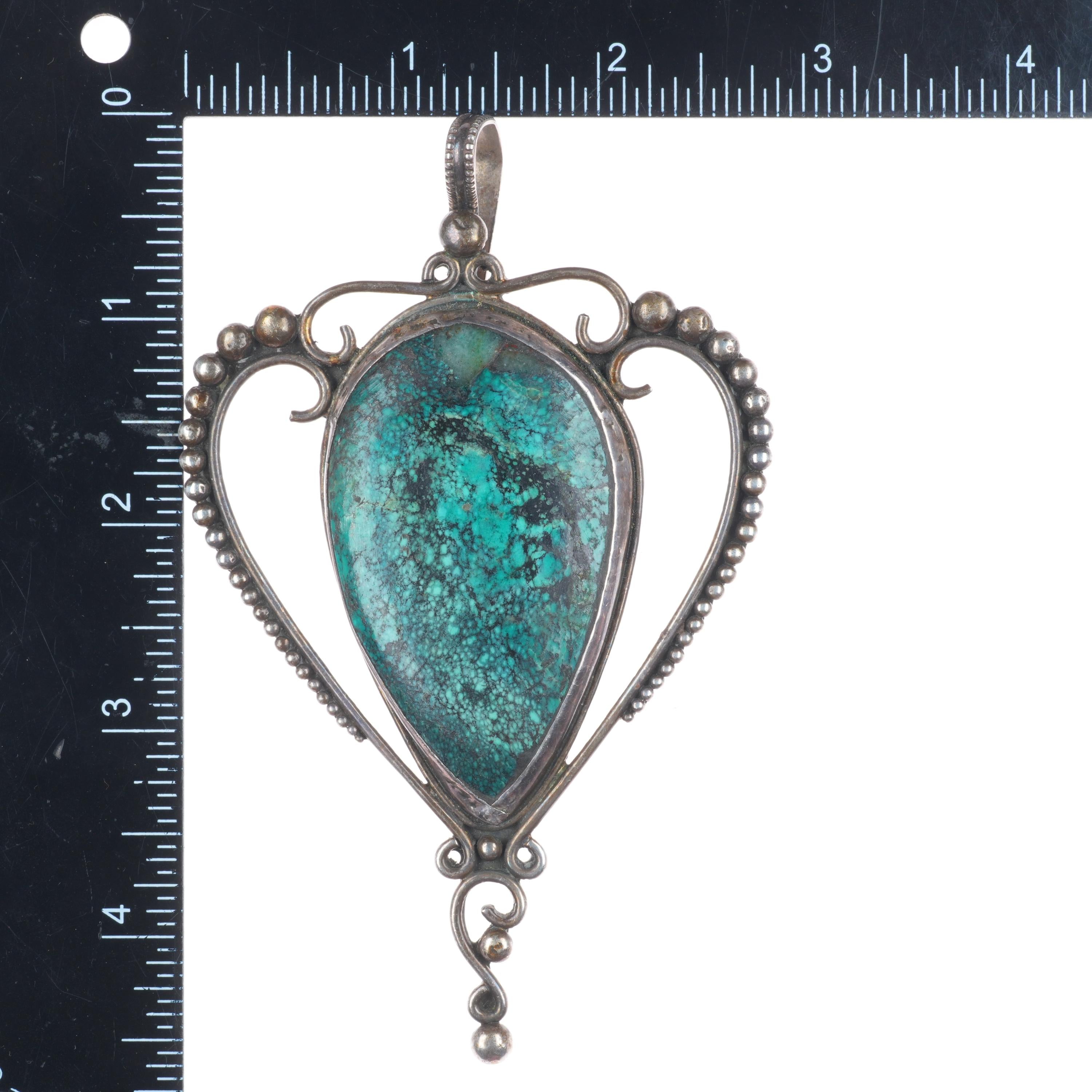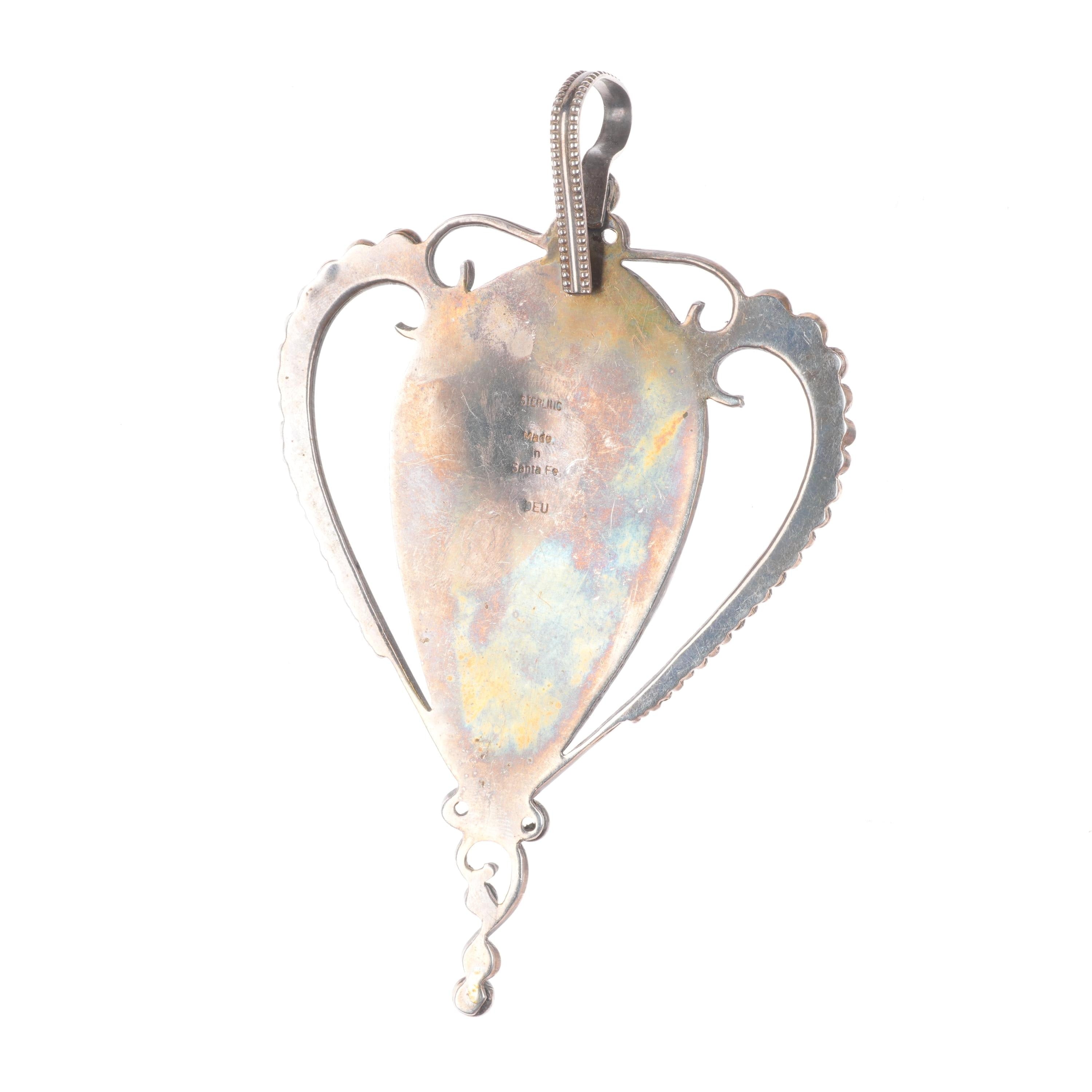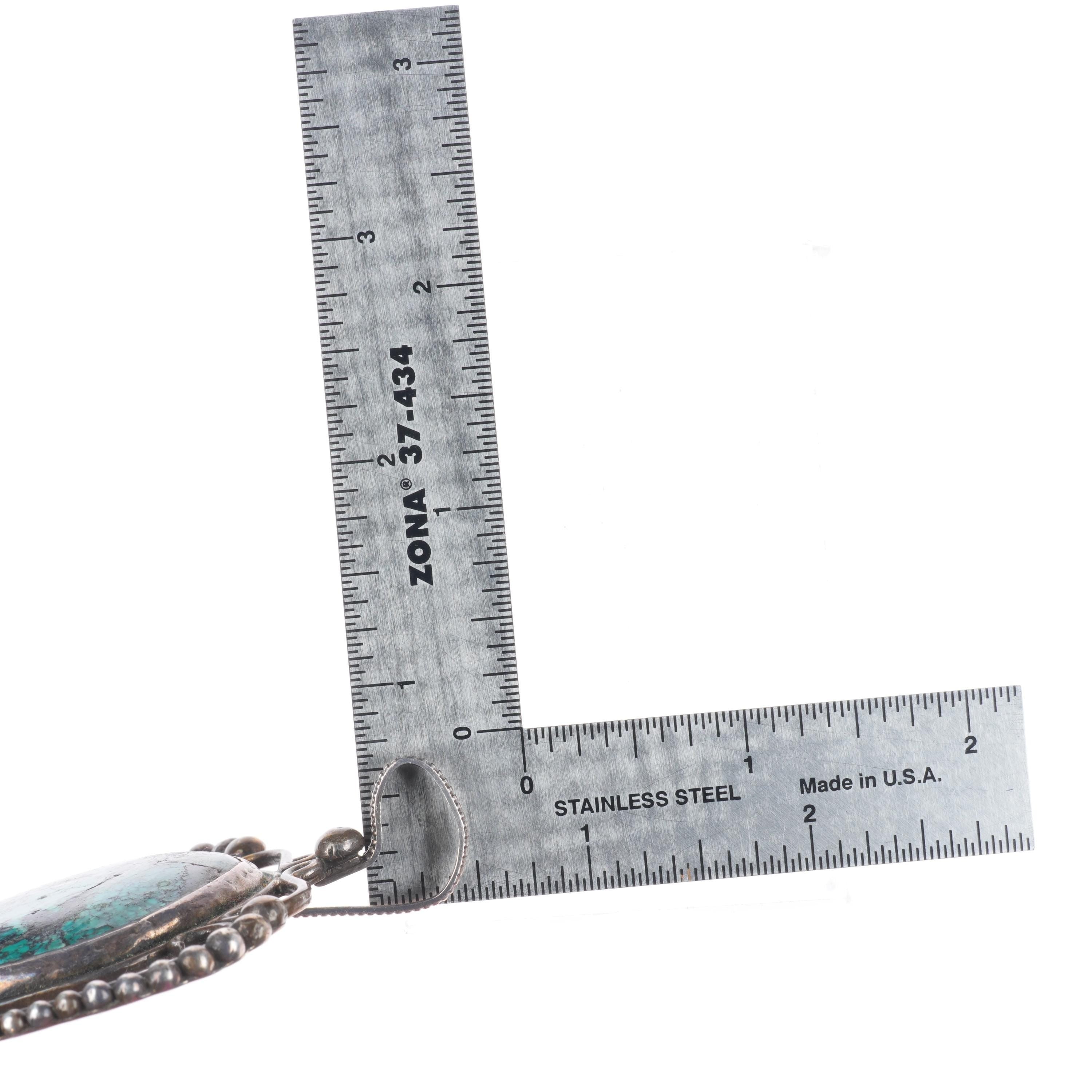 Big vintage Santa Fe southwestern sterling silver turquoise pendant. Selling the pendant shown in good condition with measurements in pictures. Marked as shown, weight and measurements in pictures.
