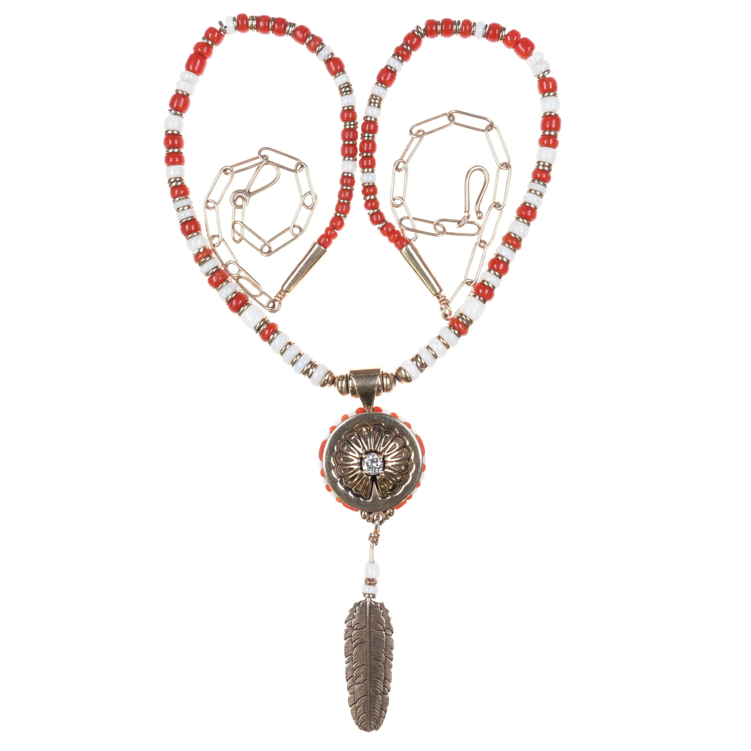 Boyd Tsosie Navajo 14k gold, diamond, opal, and coral beaded necklace