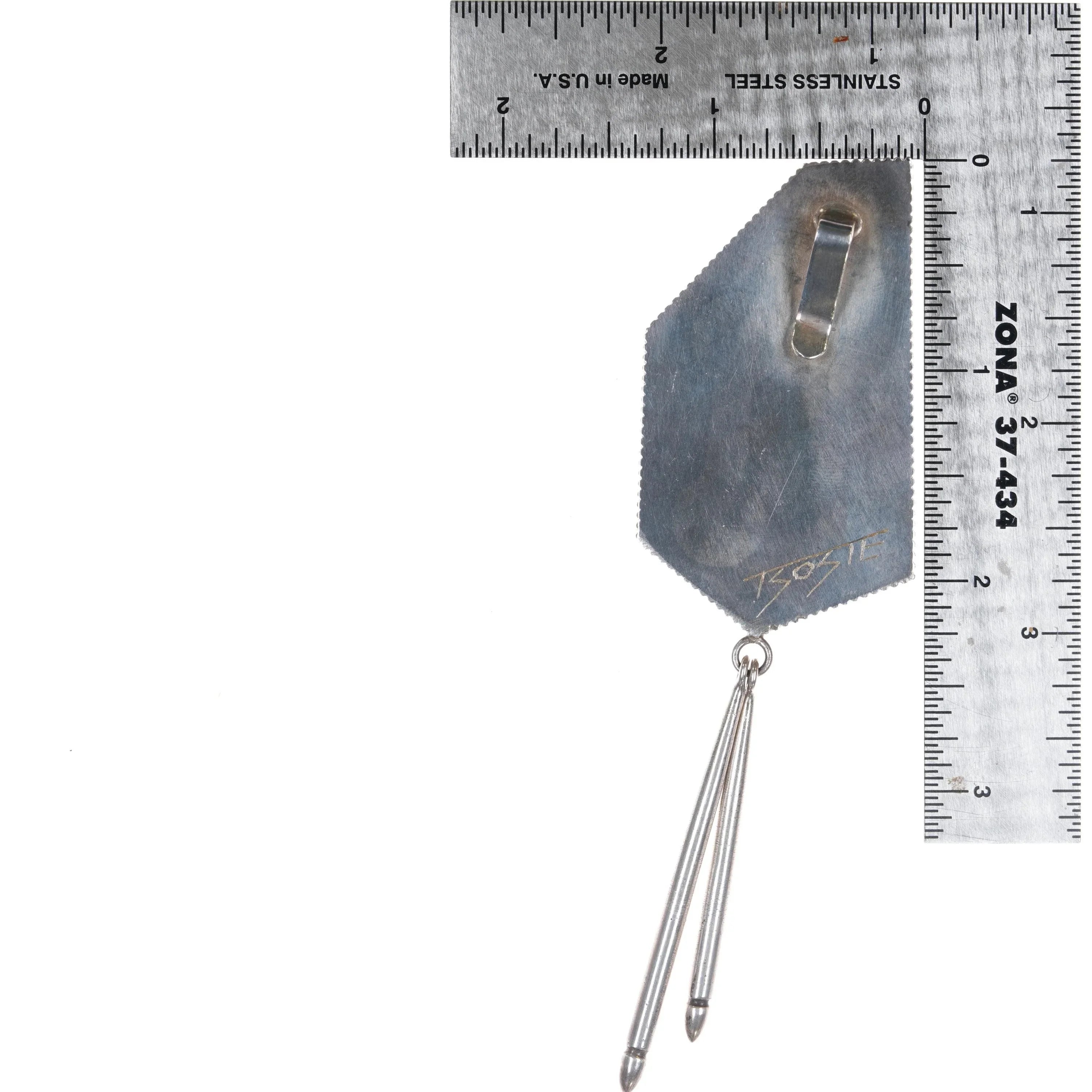 Boyd Tsosie Navajo silver smoky Bisbee turquoise modernist pendant. Weight and measurements in pictures. Very attractive stone in this pendant that I believe to be Bisbee.